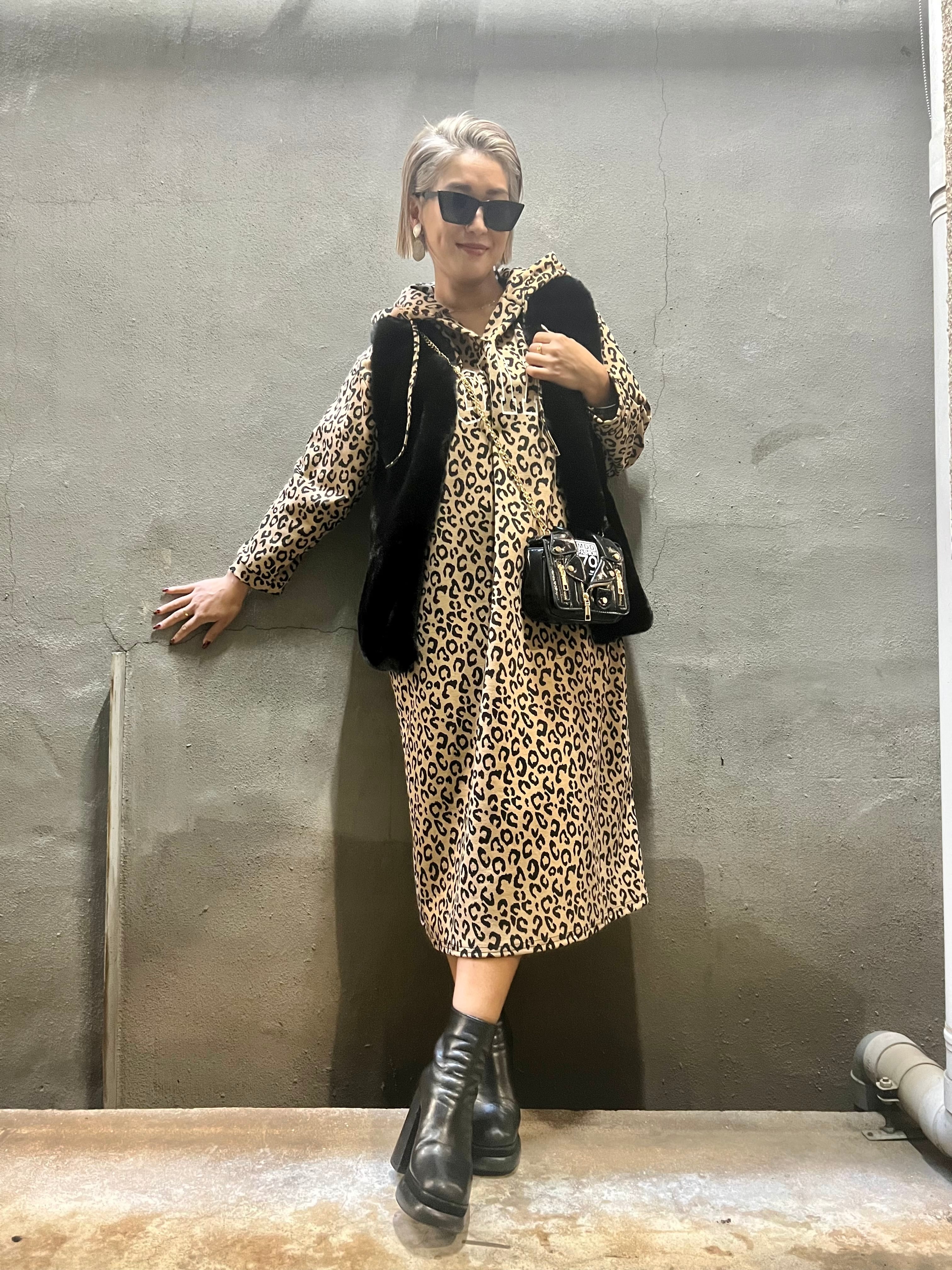 leopard jacquard hoodie long one-piece ワンピース ワンピ フーディー フード ロング丈 レオパード 豹柄 ヒョウ