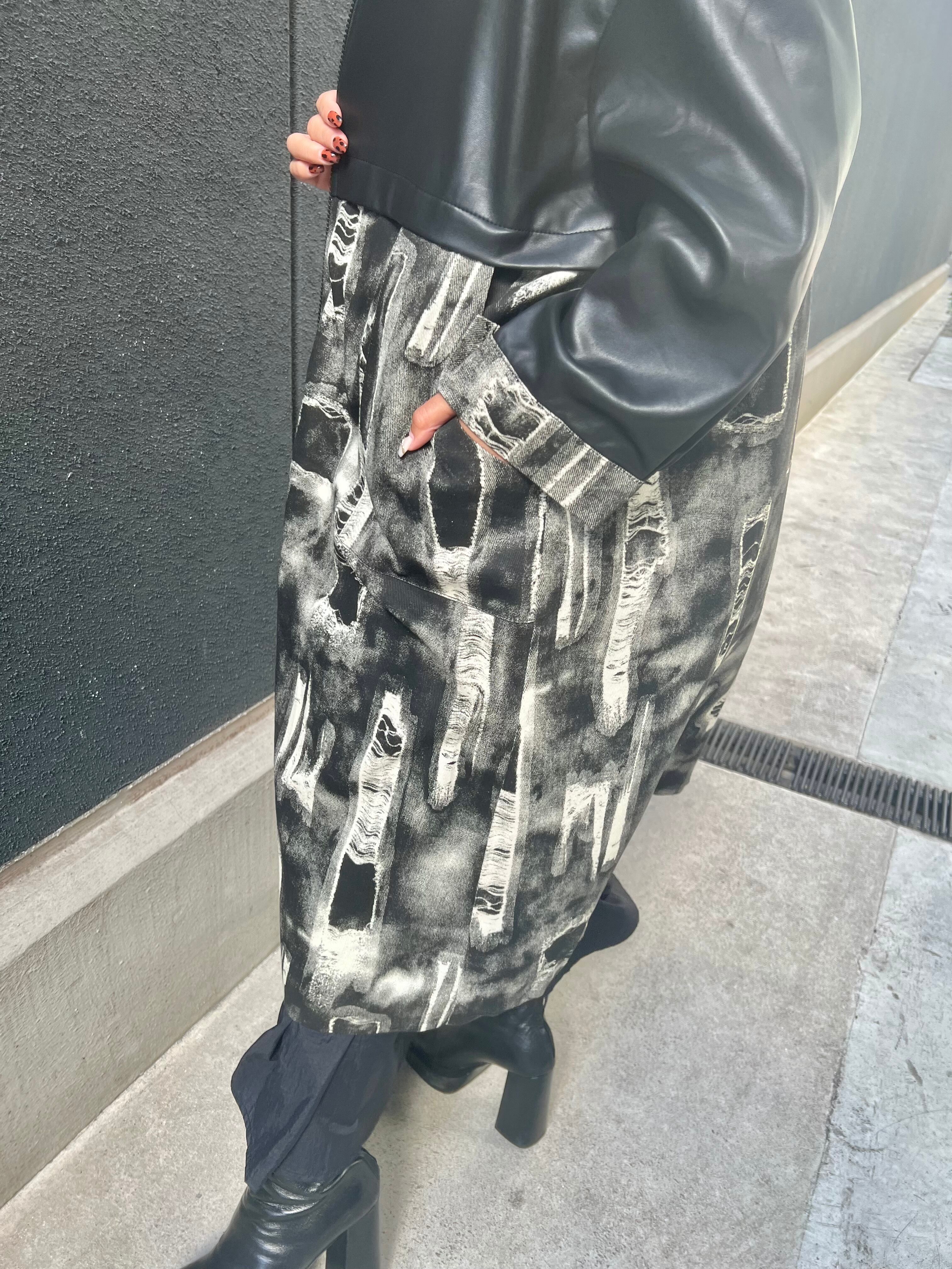 damage print × eco leather change design coat コート デザインコート モード ダメージ プリント 合皮 フェイクレザー アウター モノトーン