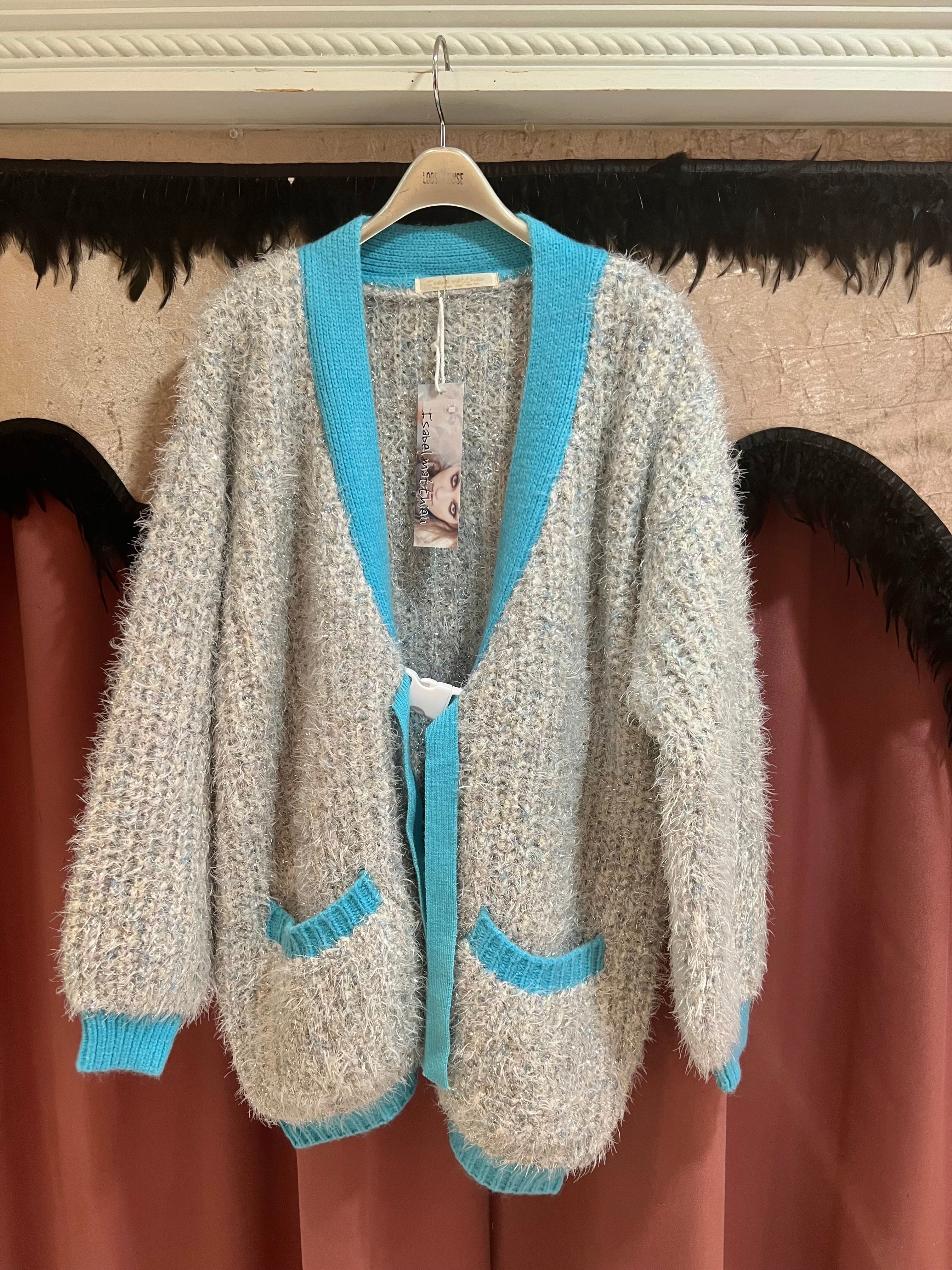 color trimming fancy shaggy knit cardigan ニット カーディガン シャギー キラキラ 羽織り アウター