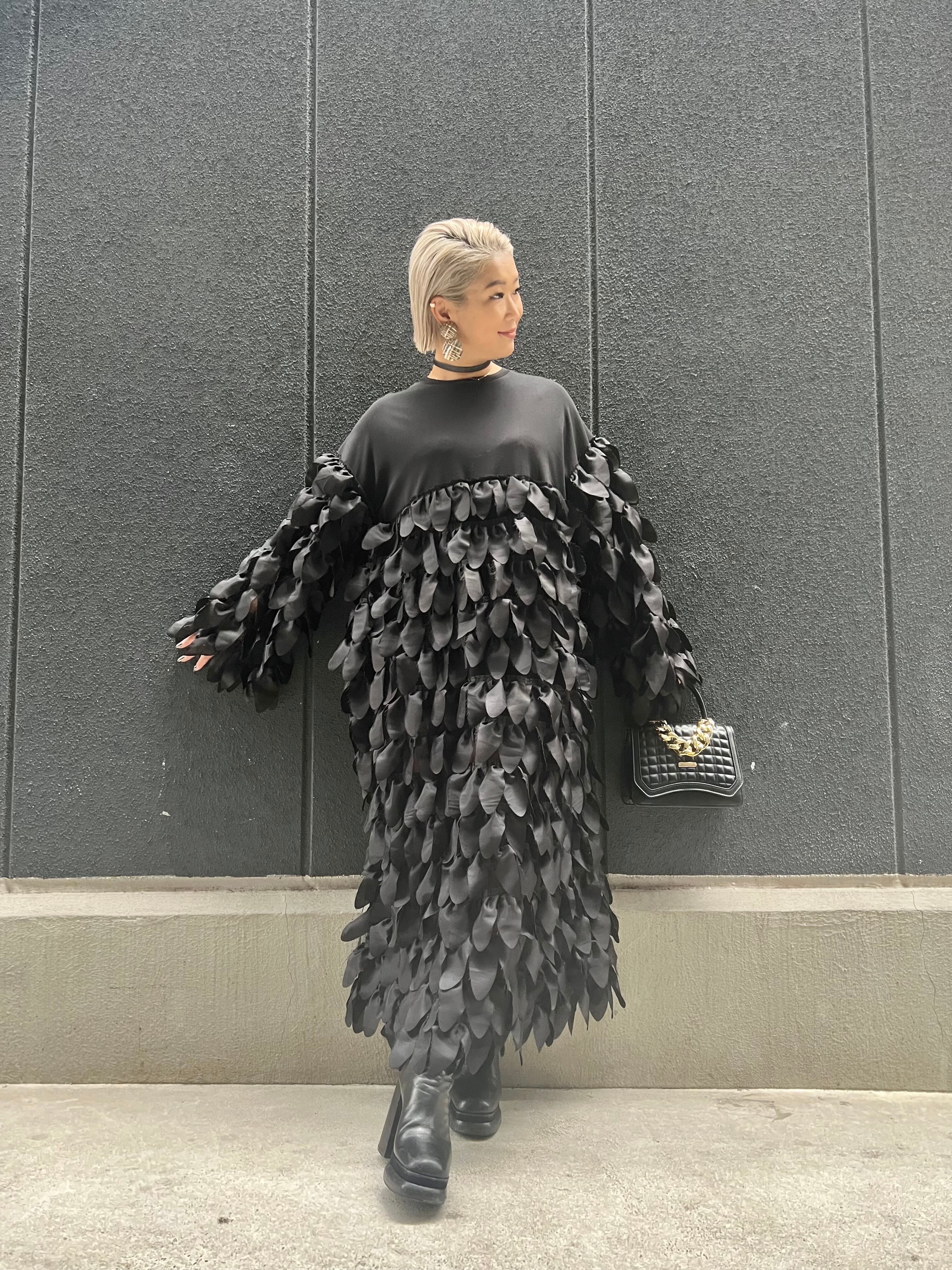 leaf fringe change design one-piece ワンピース ワンピ リーフ ブラック ロングワンピ