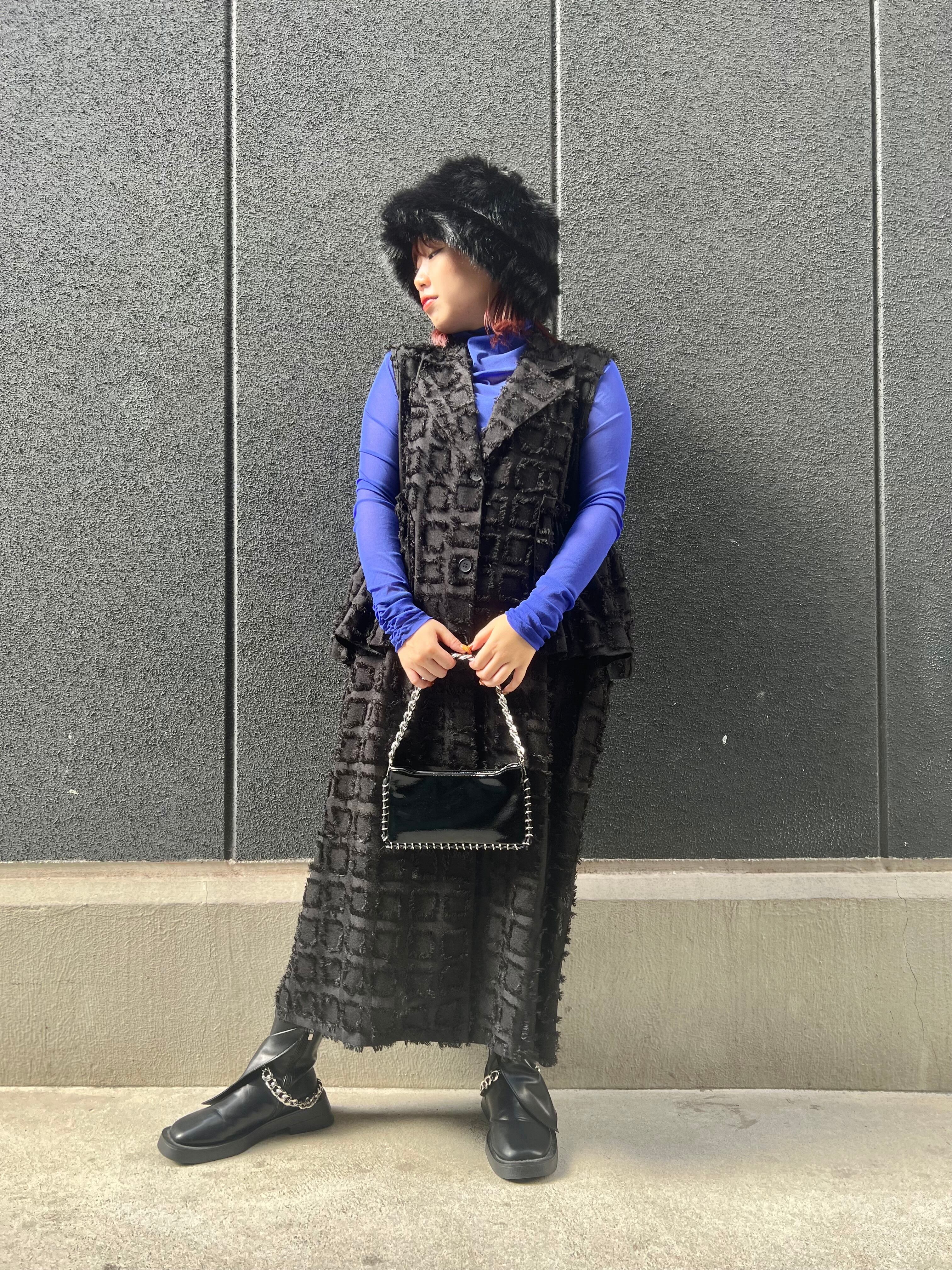 bumpy fabric design long vest ベスト ジレ ロング丈 バンピー 重ね着 ブラック