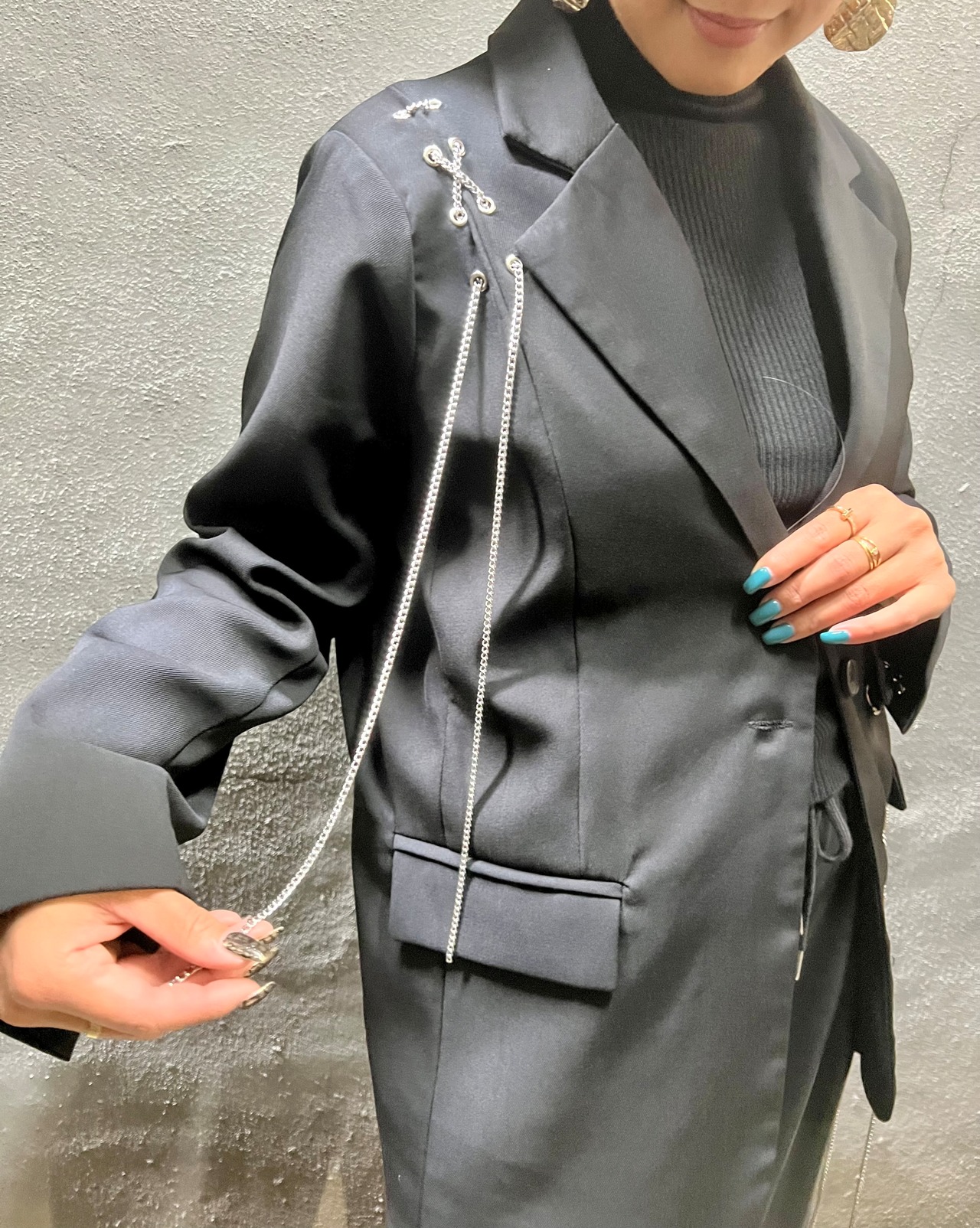 silver eyelet × chain design jacket ジャケット テーラード シルバー アイレット チェーン