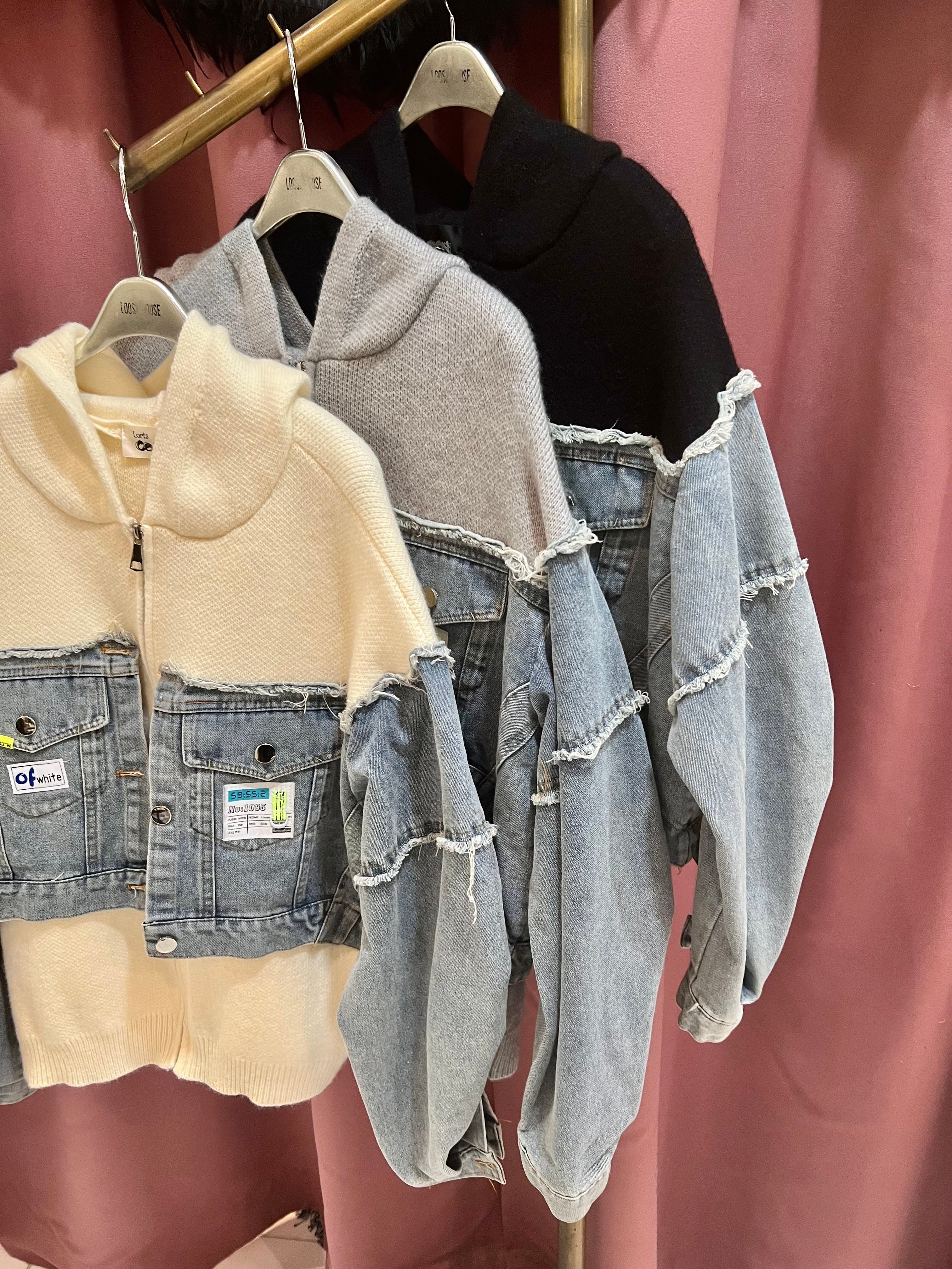 デニムとニットの切り替えデザインがオシャレなジャケットです。