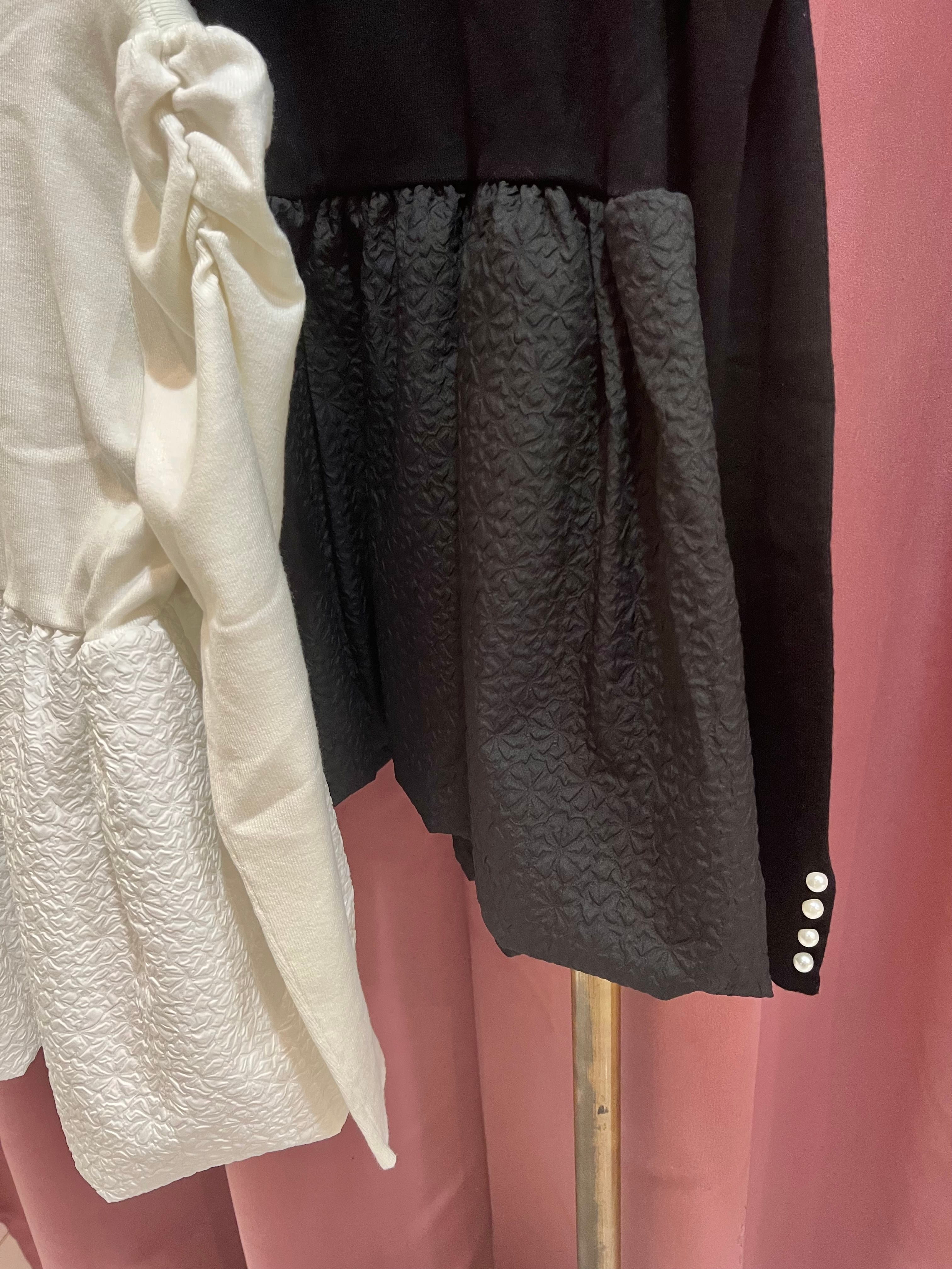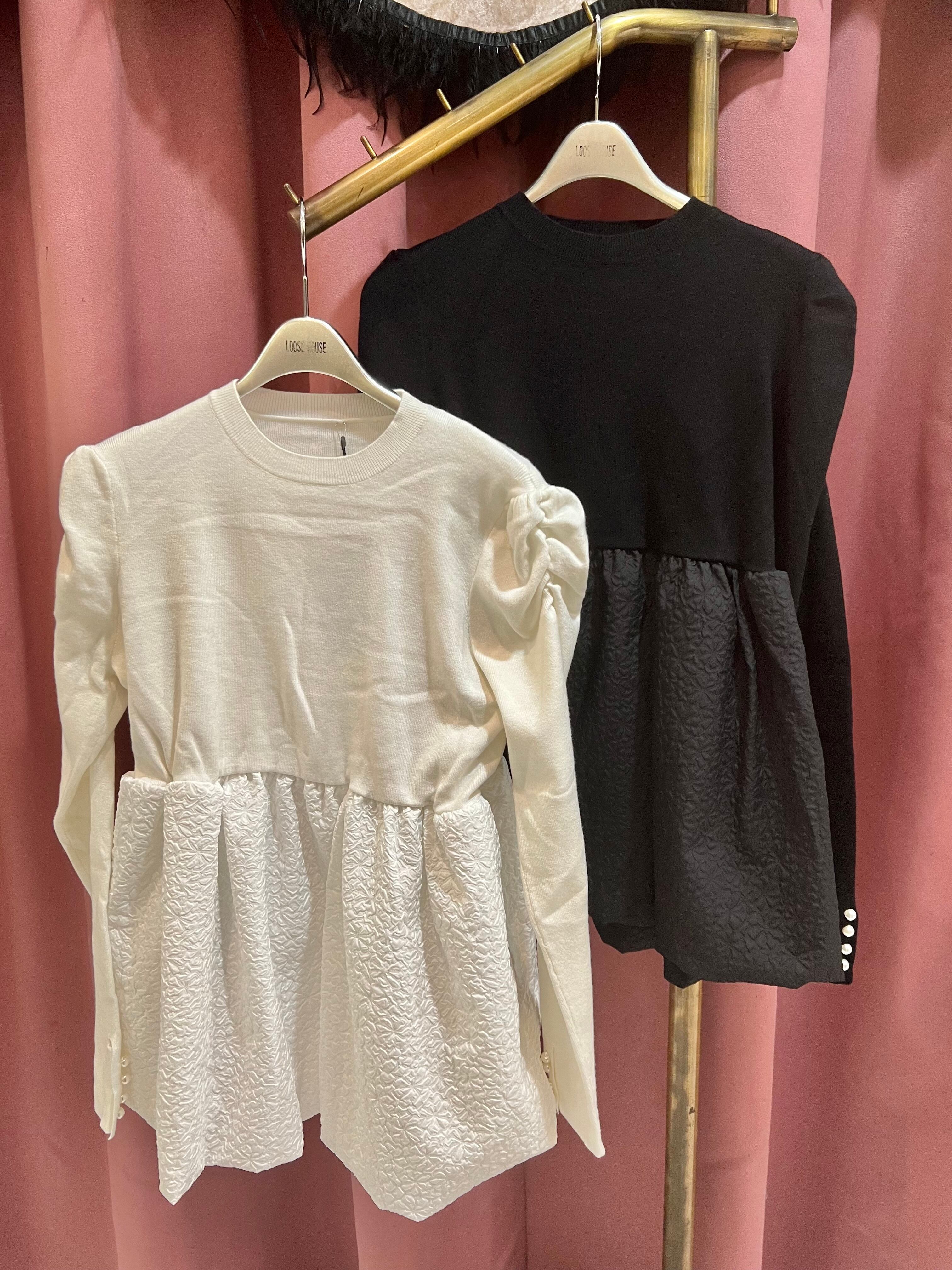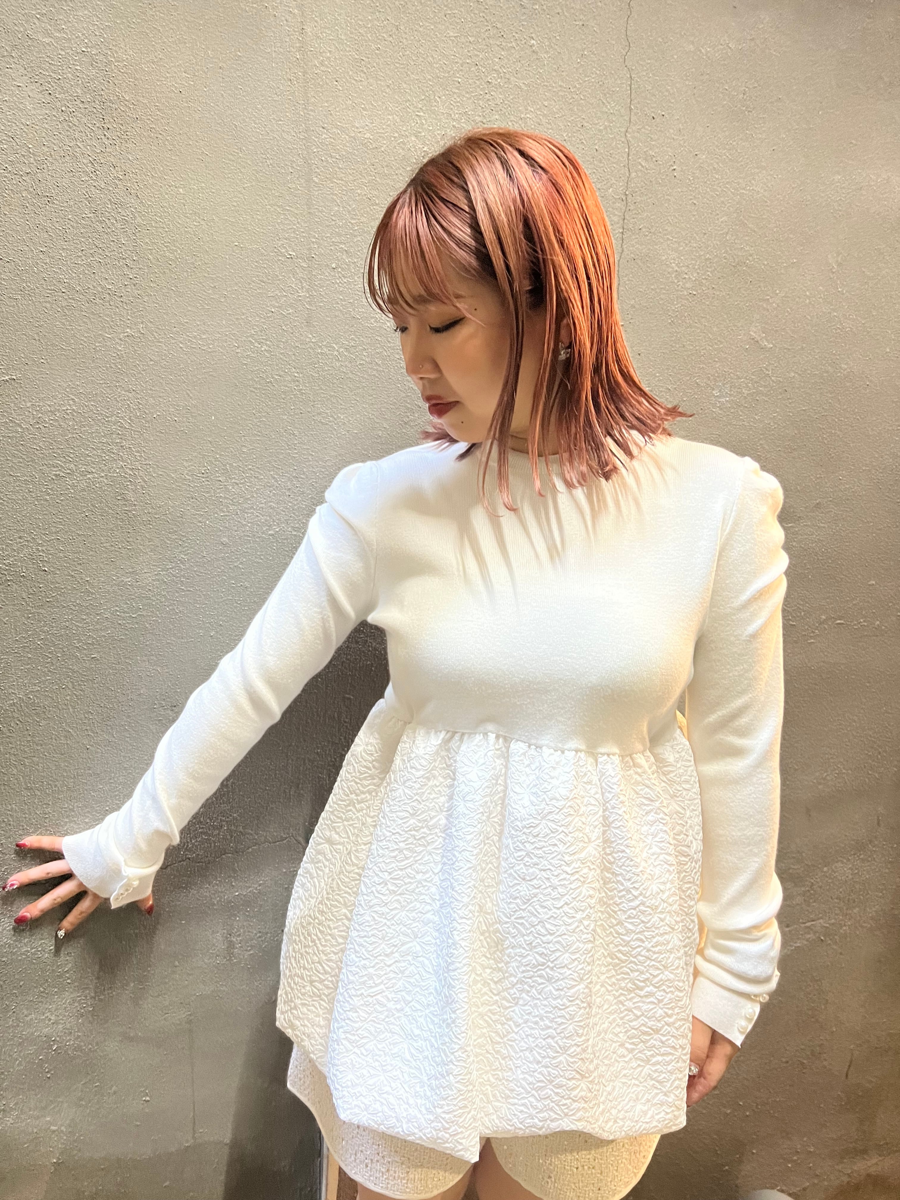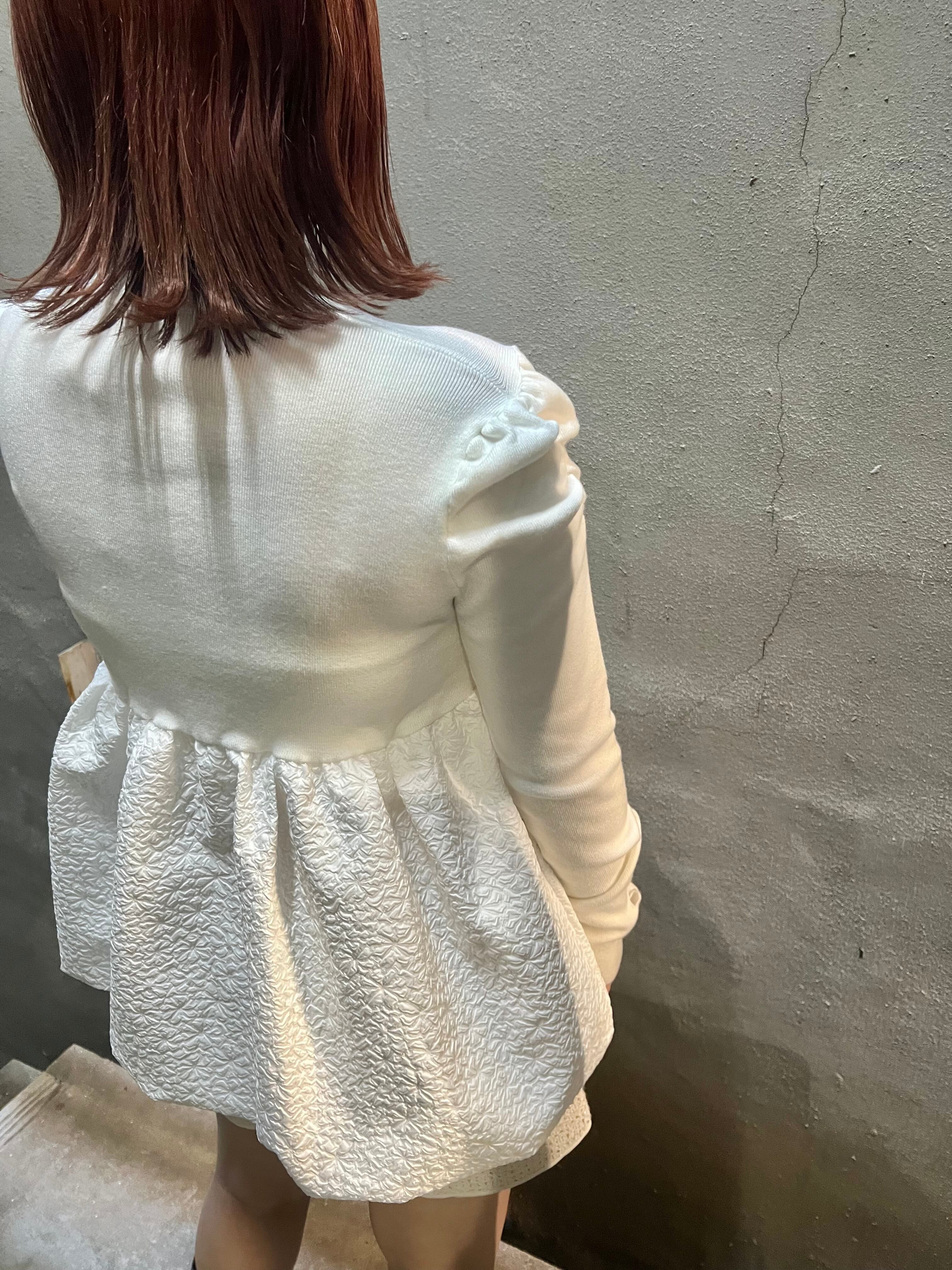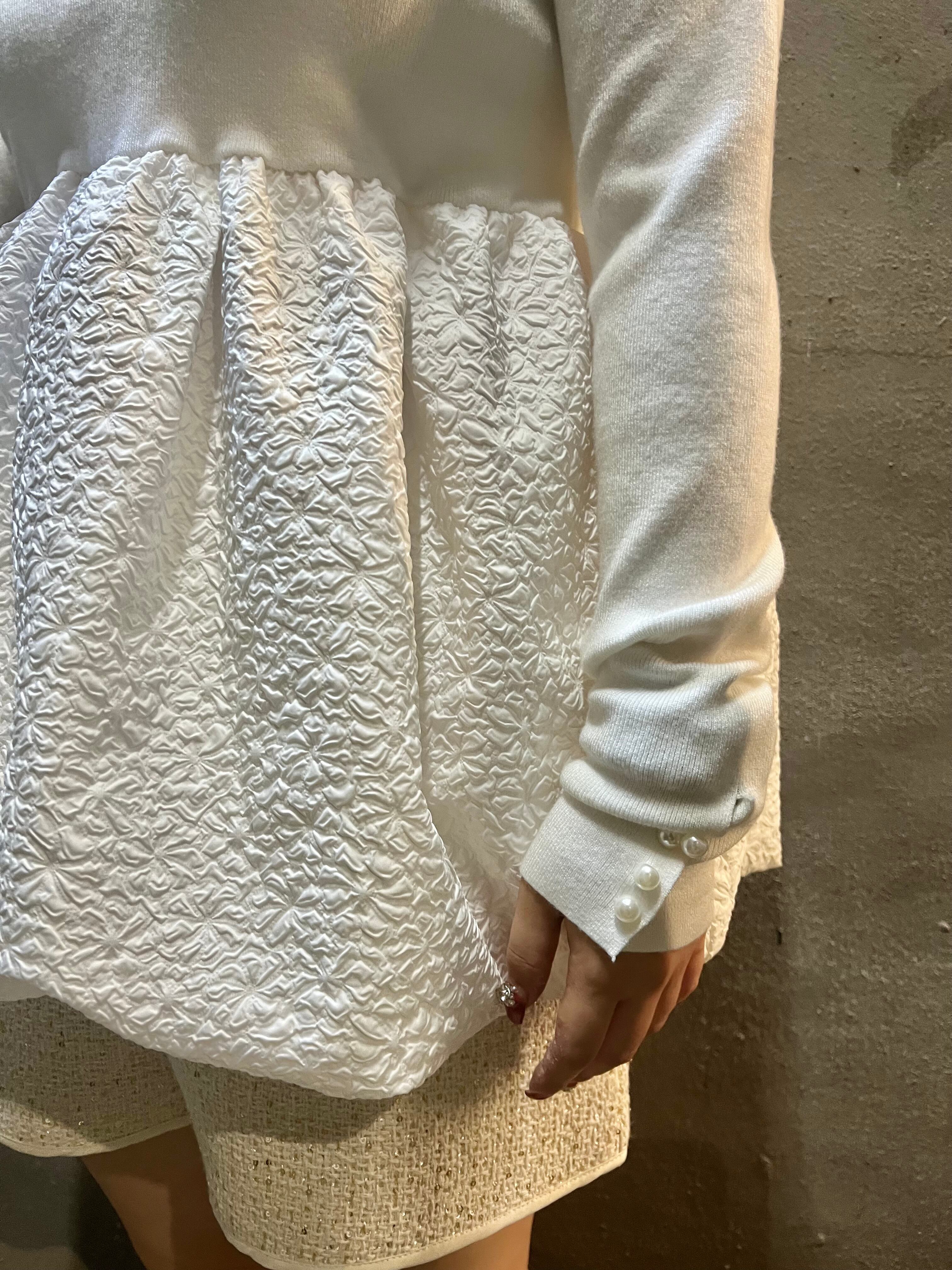 knit × emboss balloon design tunic トップス チュニック ニット 切替デザイン バルーン パール エンボス