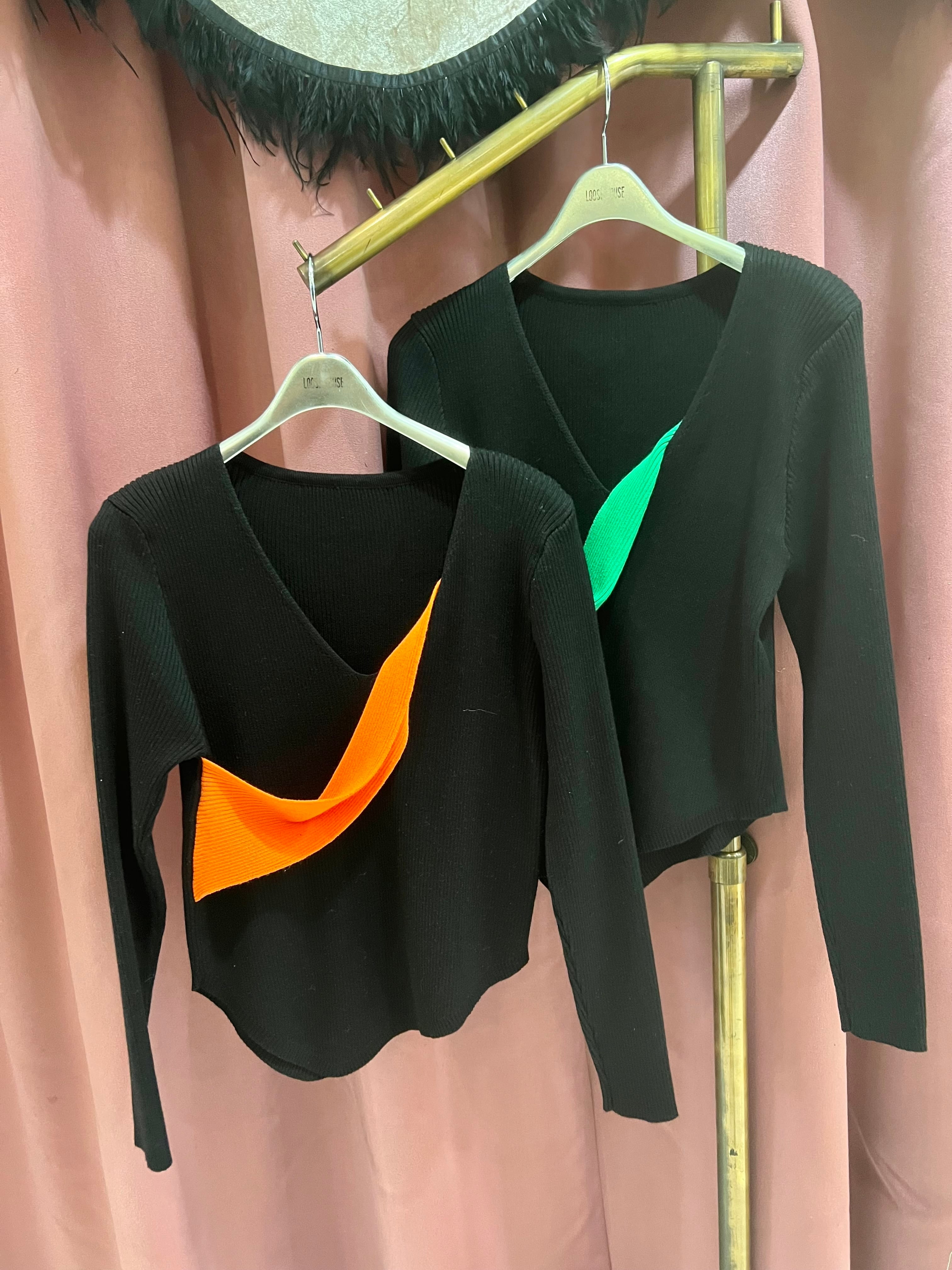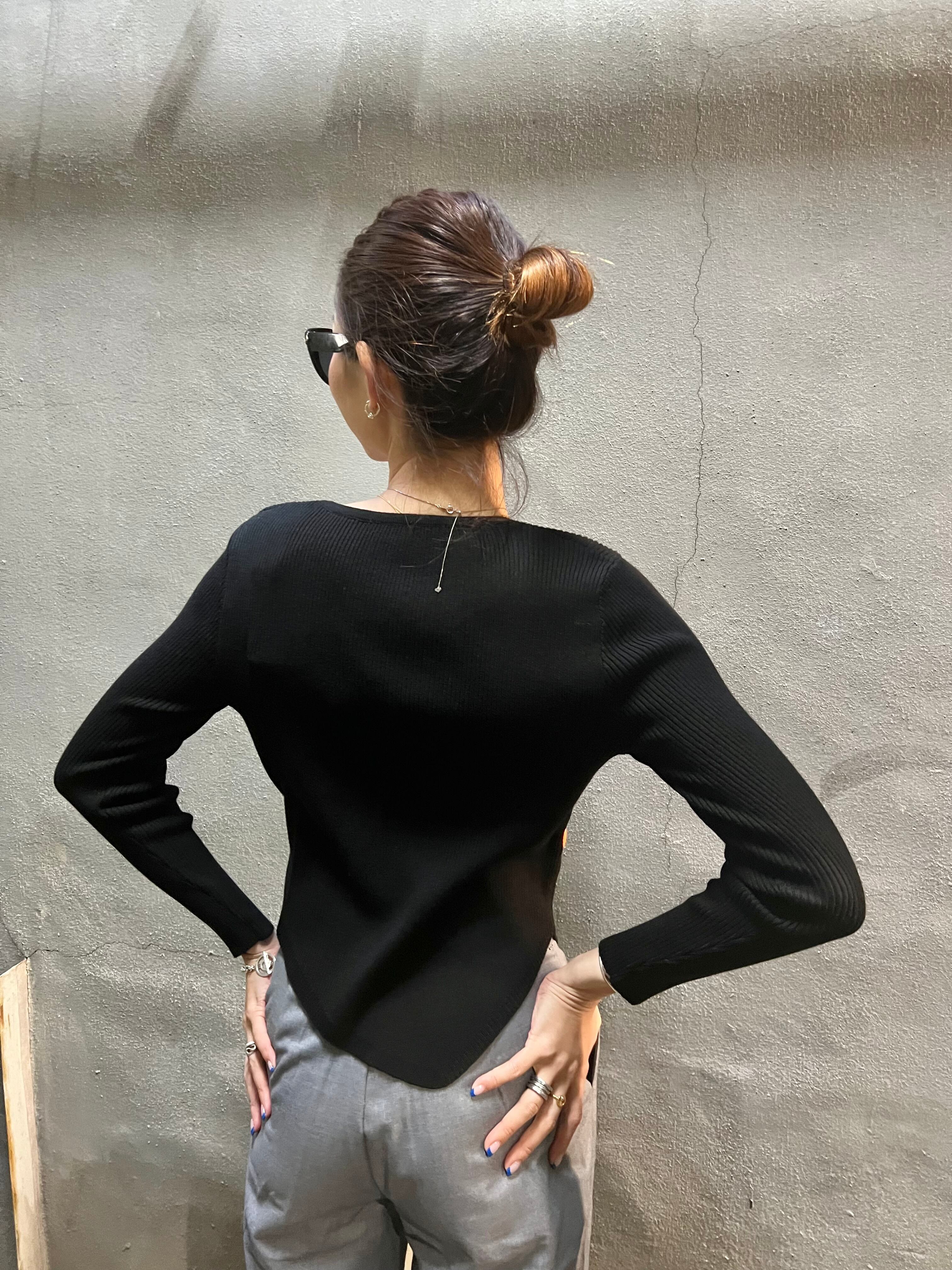 bi-color change design rib knit tops ニット トップス リブニット 差し色 タイト アシンメトリー