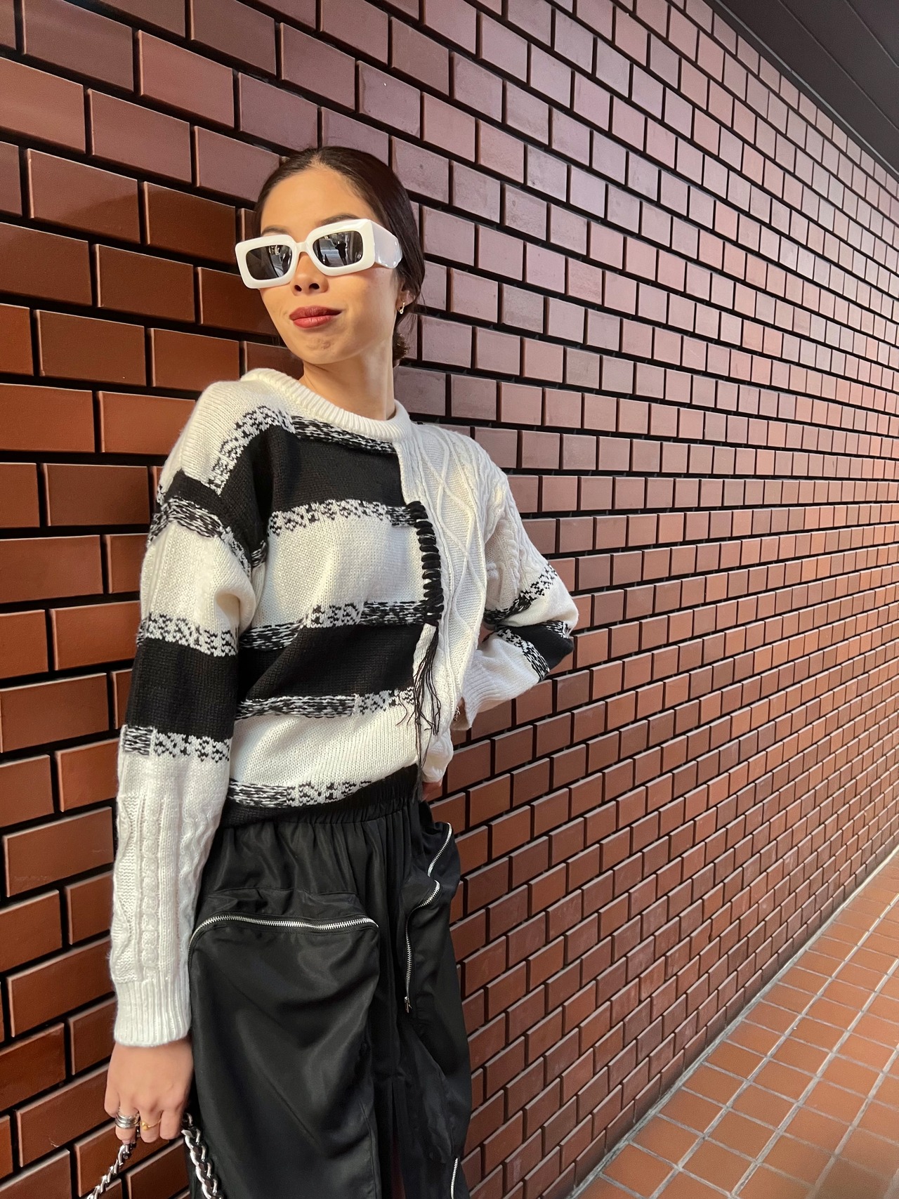 bi-color change design knit tops トップス ニット バイカラー 白黒 ボーダー