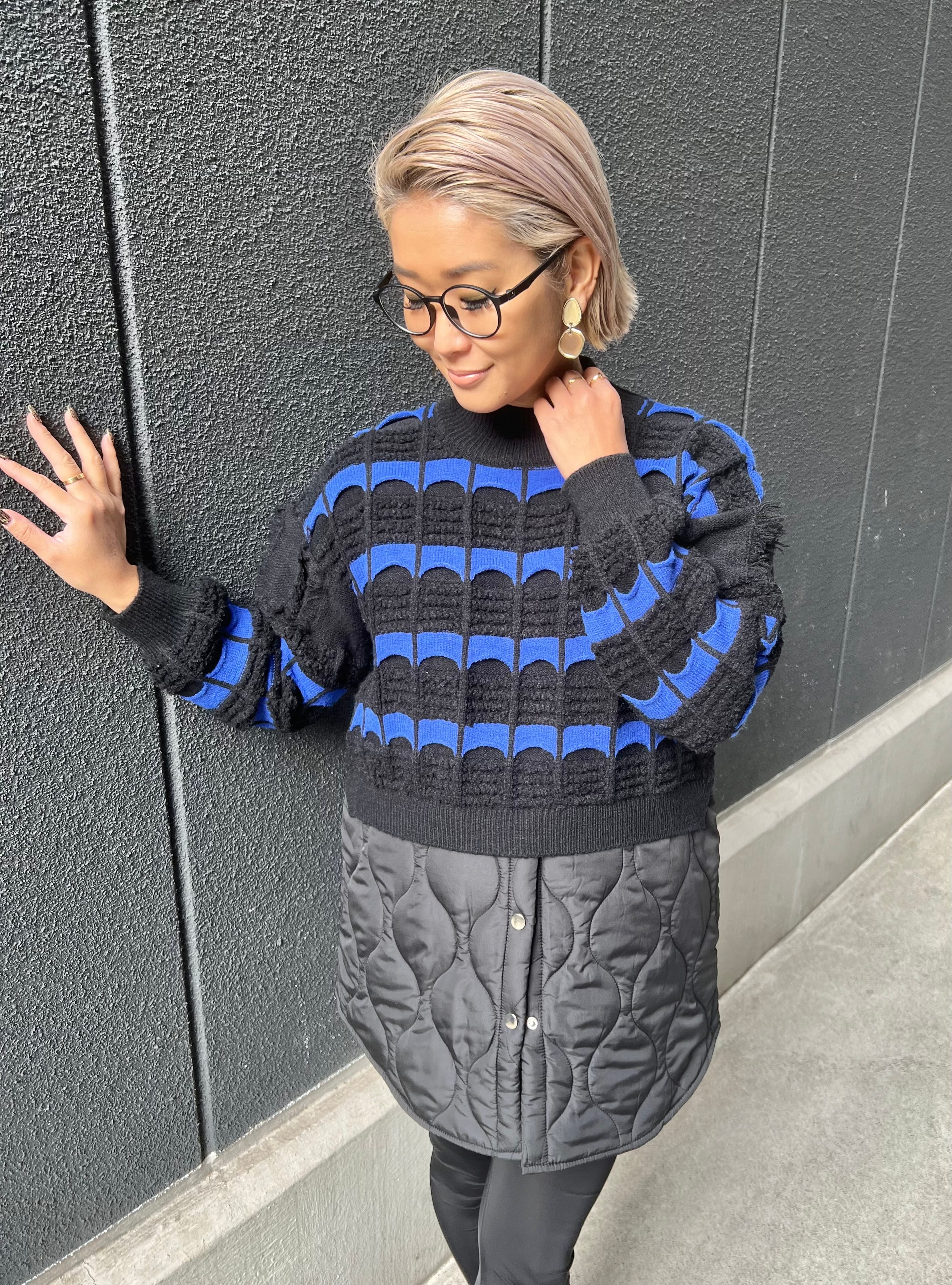 上品なニット素材とカジュアルなキルティング素材がユニークな見た目を作り出し、おしゃれさと遊び心を兼ね備えた一枚となっています♡