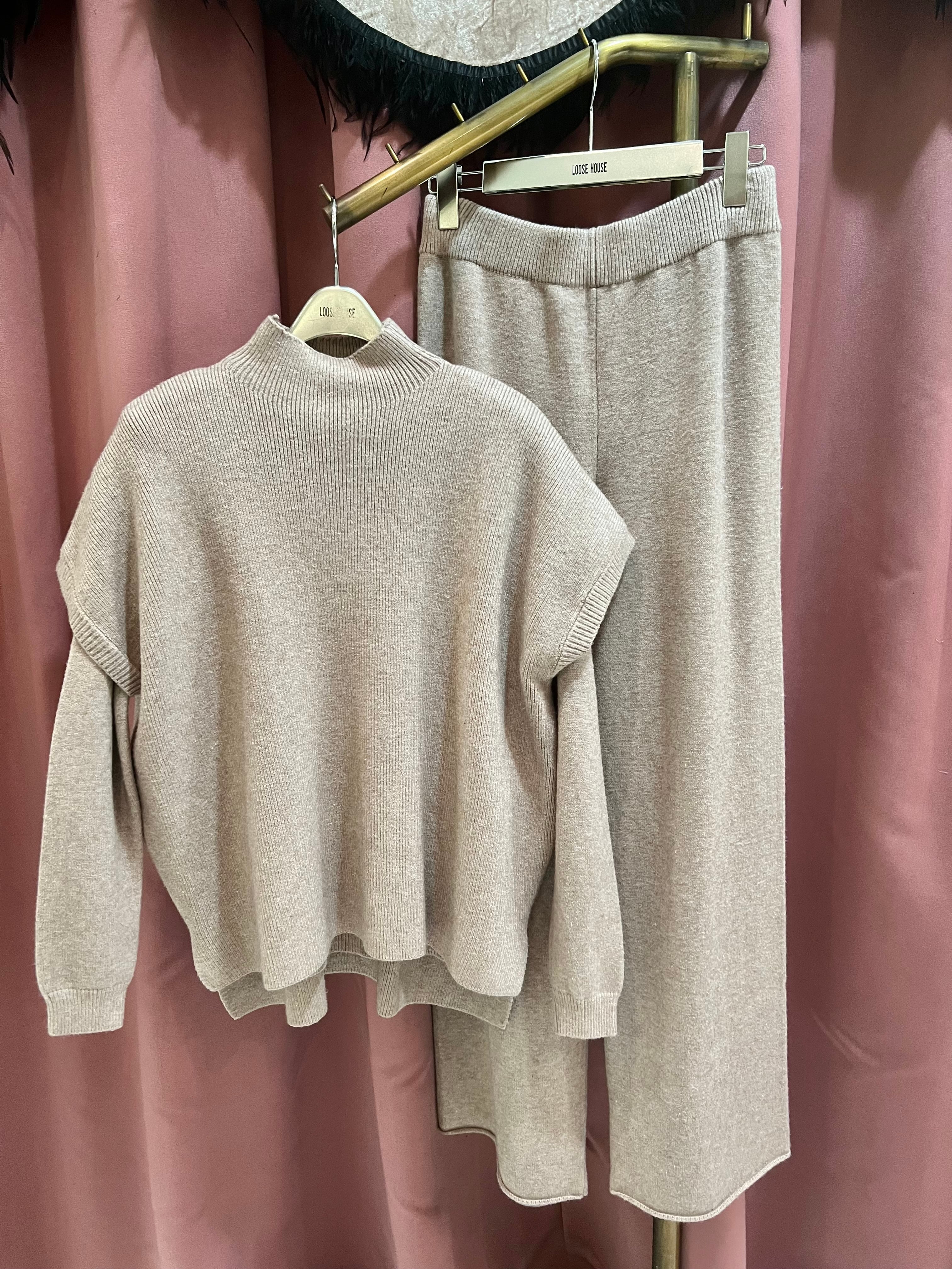 ensemble high gauge knit 3P set ニット セットアップ 3点セット アンサンブル 半袖 ロングスリーブ パンツ ワイドパンツ