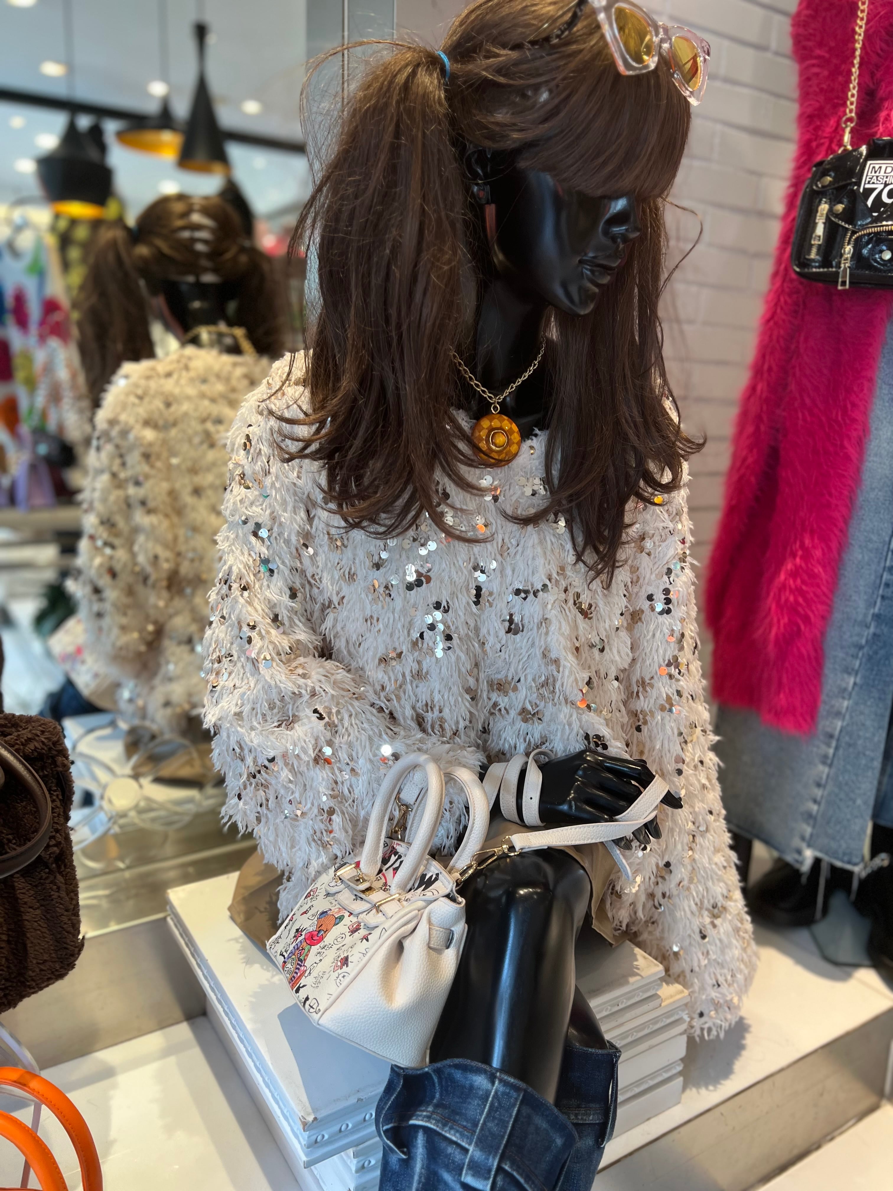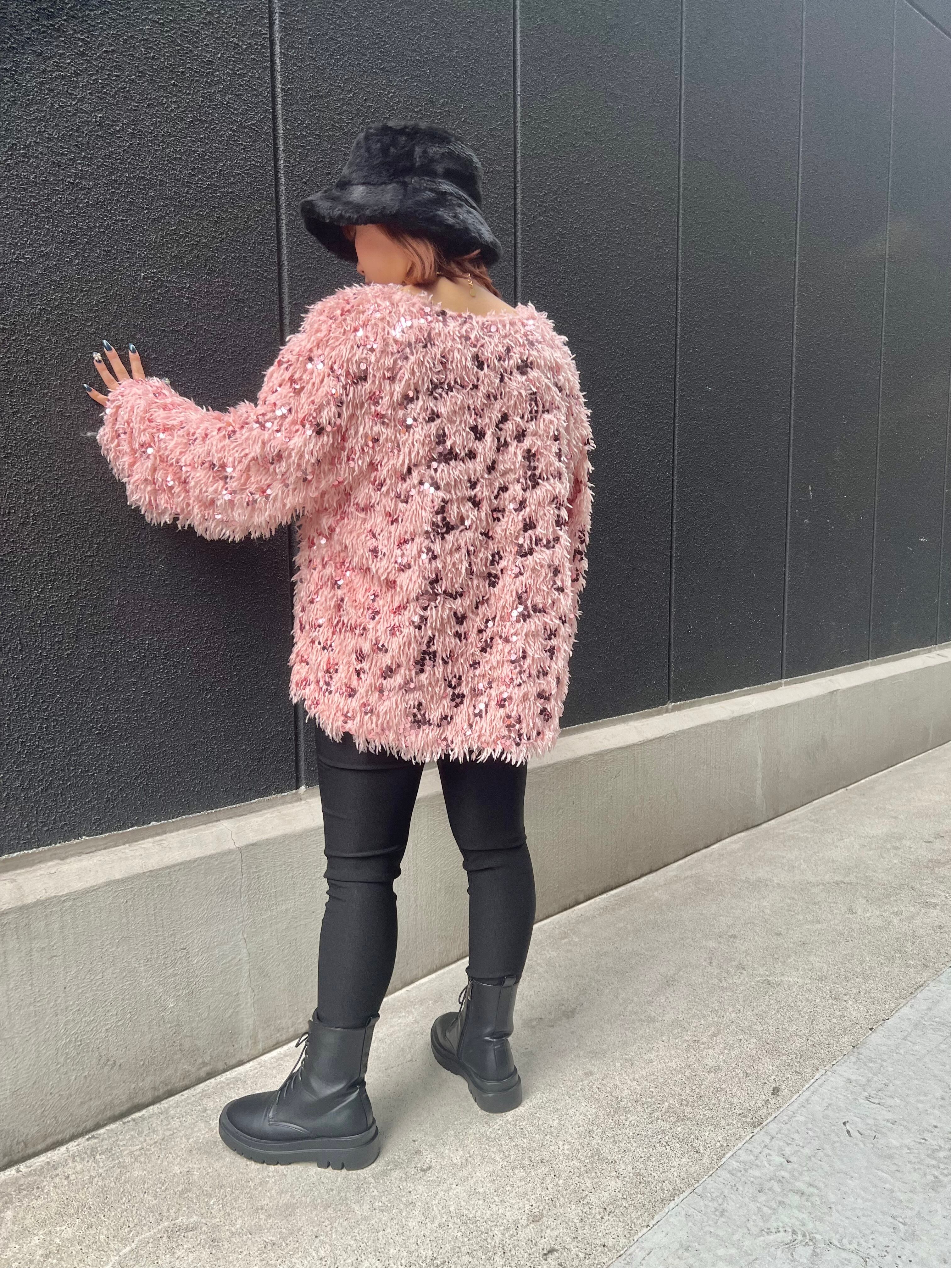 ふわふわのシャギーニットにキラキラのスパンコールが散りばめられた、可愛さ満点のトップスです♡