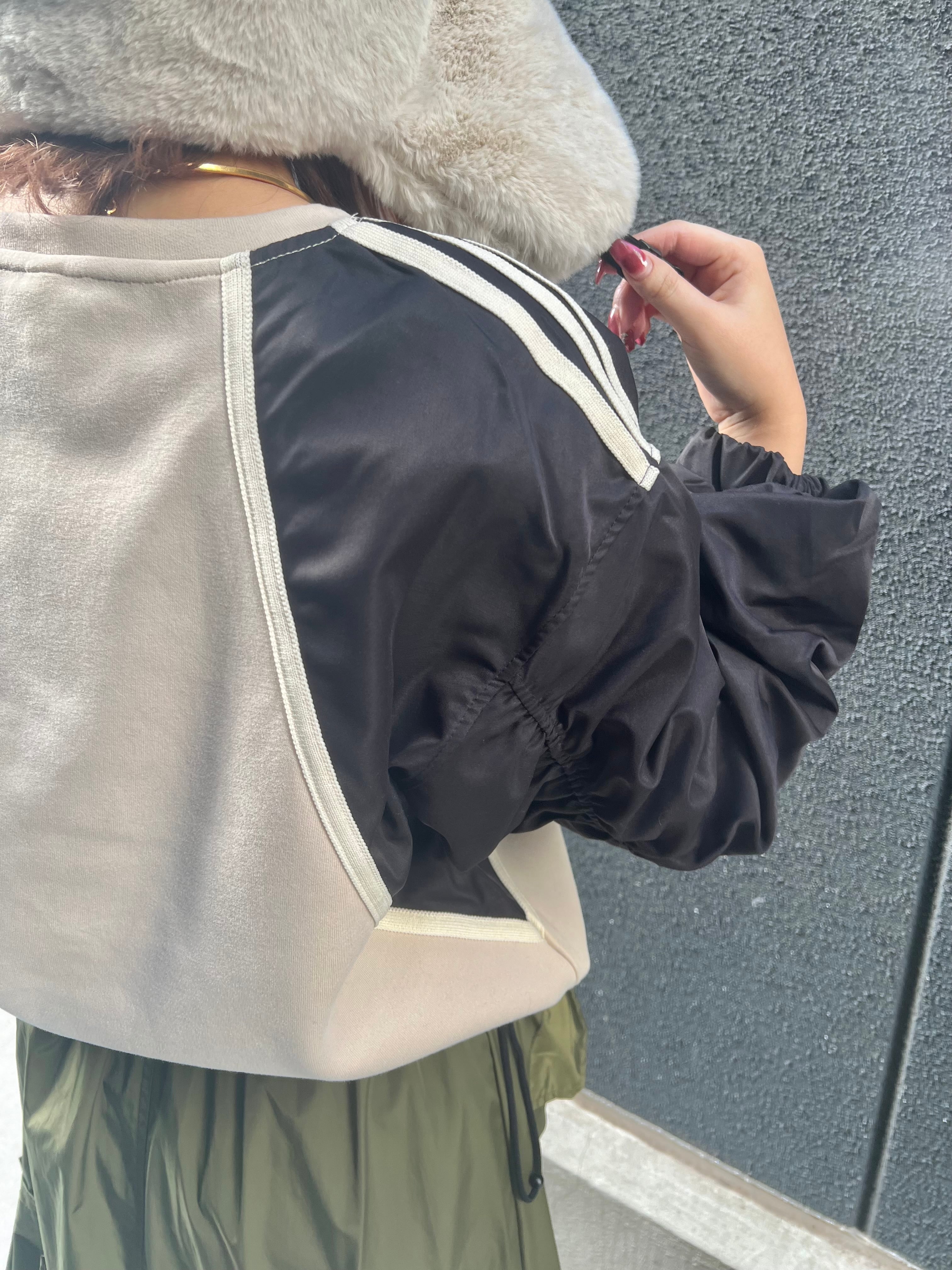 bi-color gather sleeve change design tops トップス デザイントップス ギャザー バイカラー 配色 ドローコード