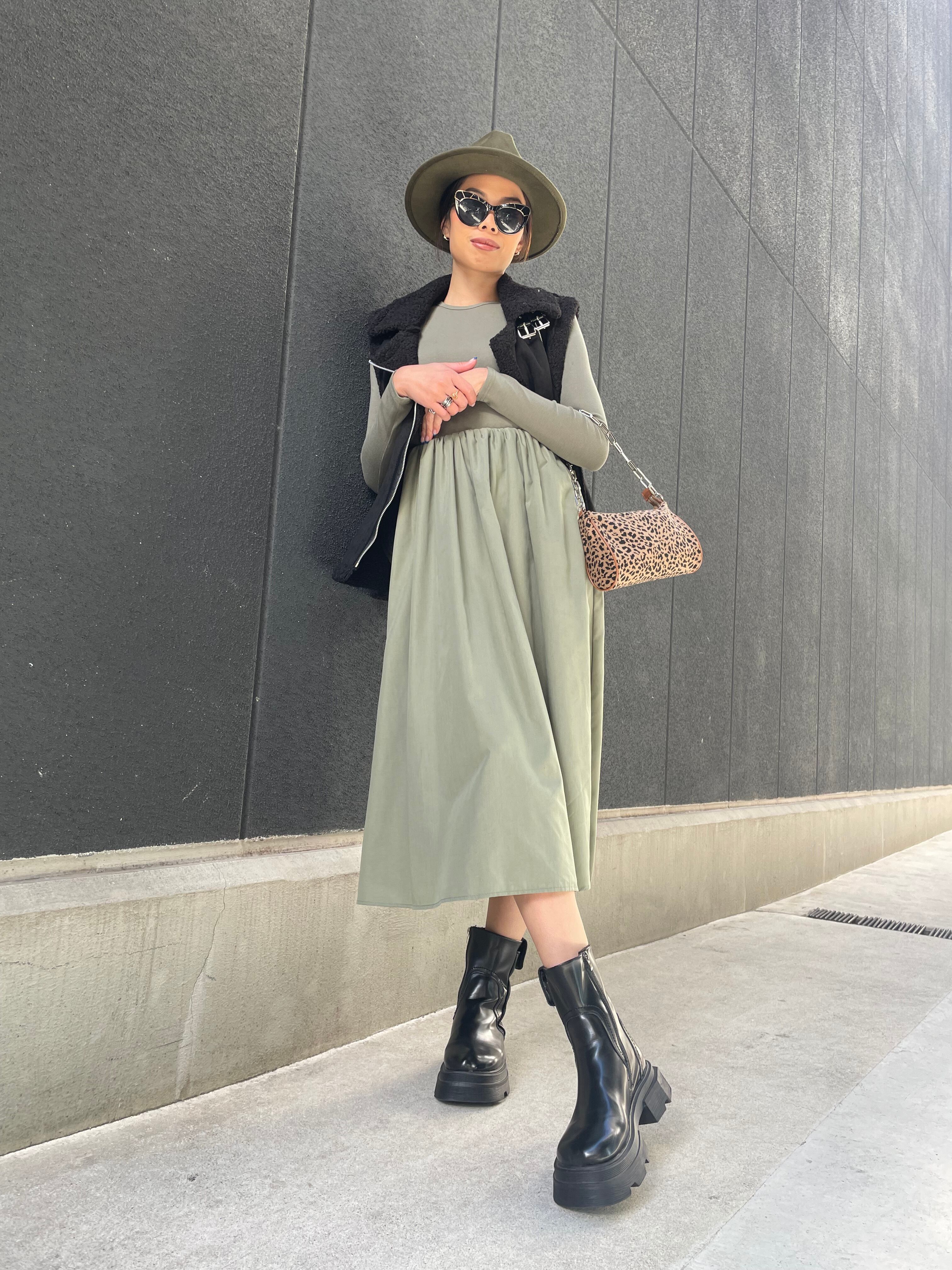 美しいシルエットと切り替えデザインが魅力のワンピース。
