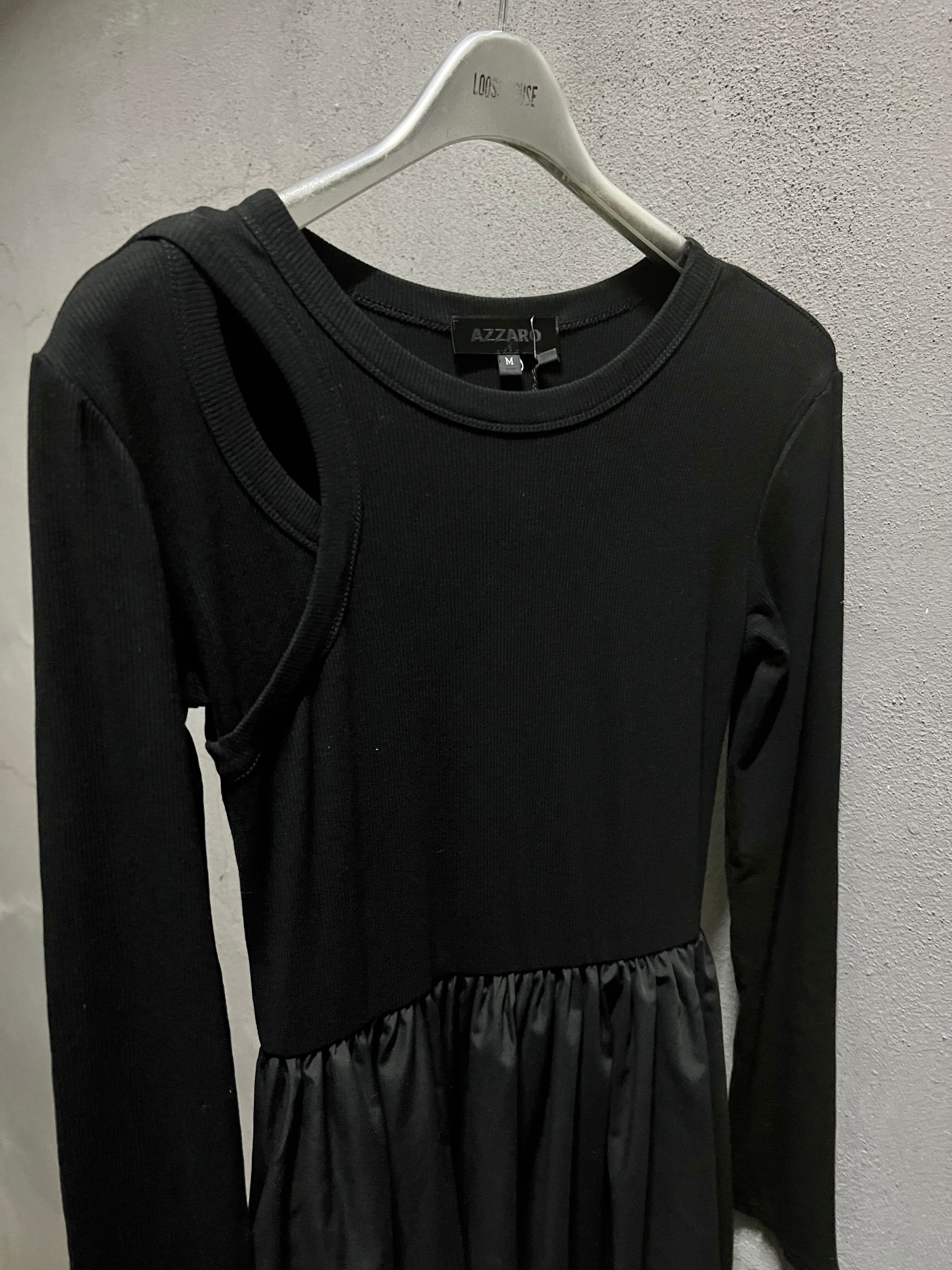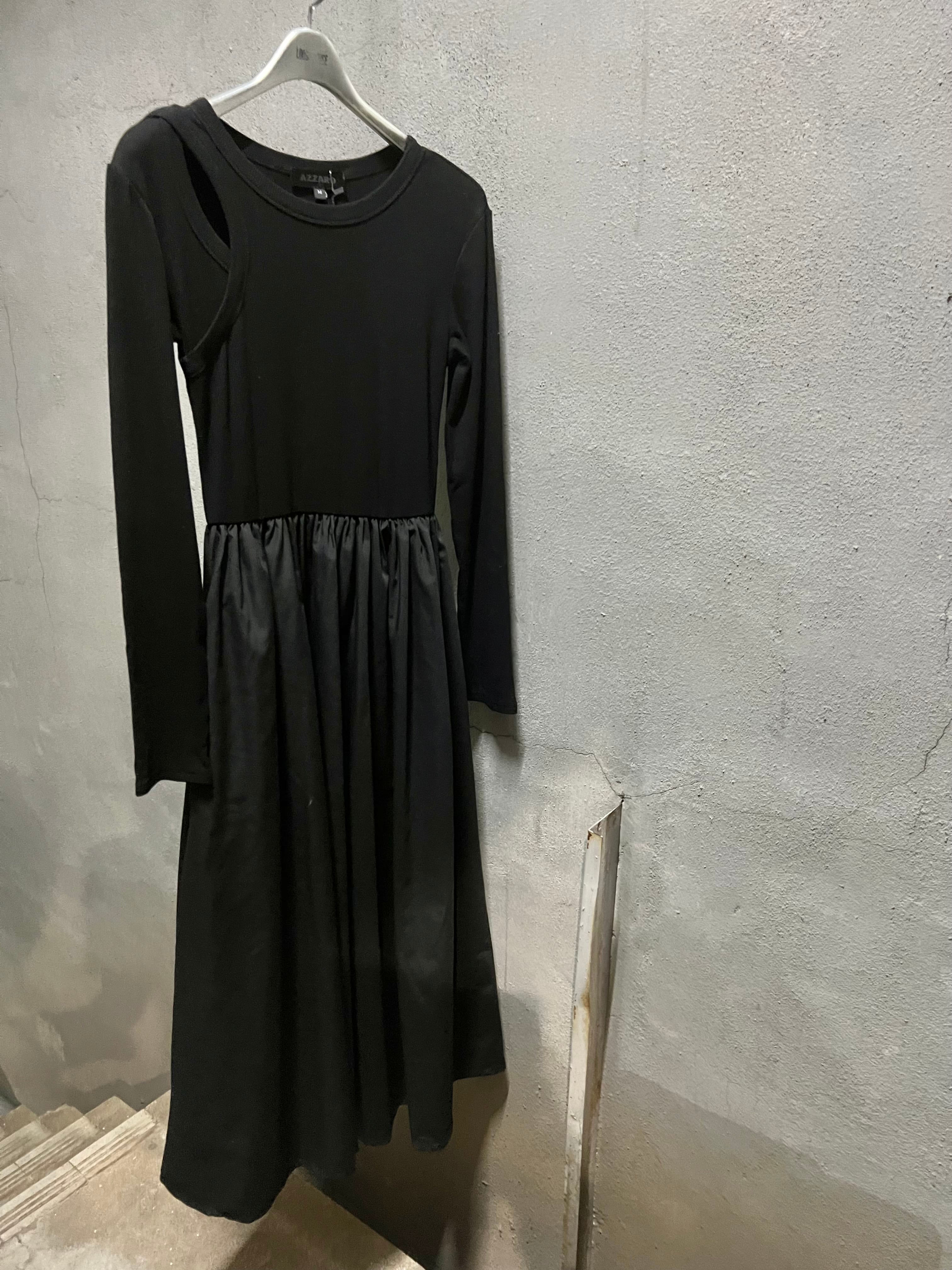 fit & gather design one-piece ワンピース ワンピ ギャザー フィット クルーネック