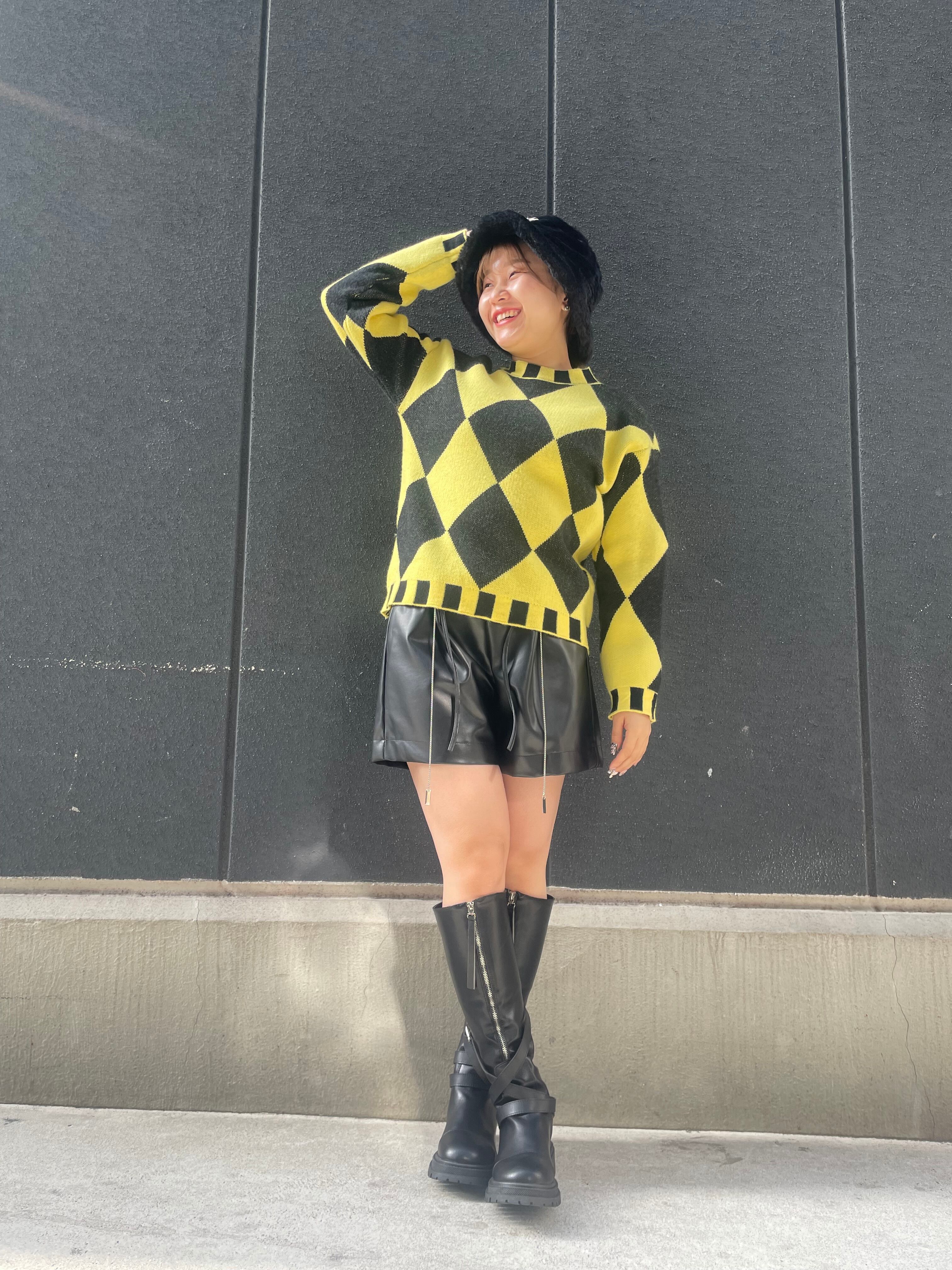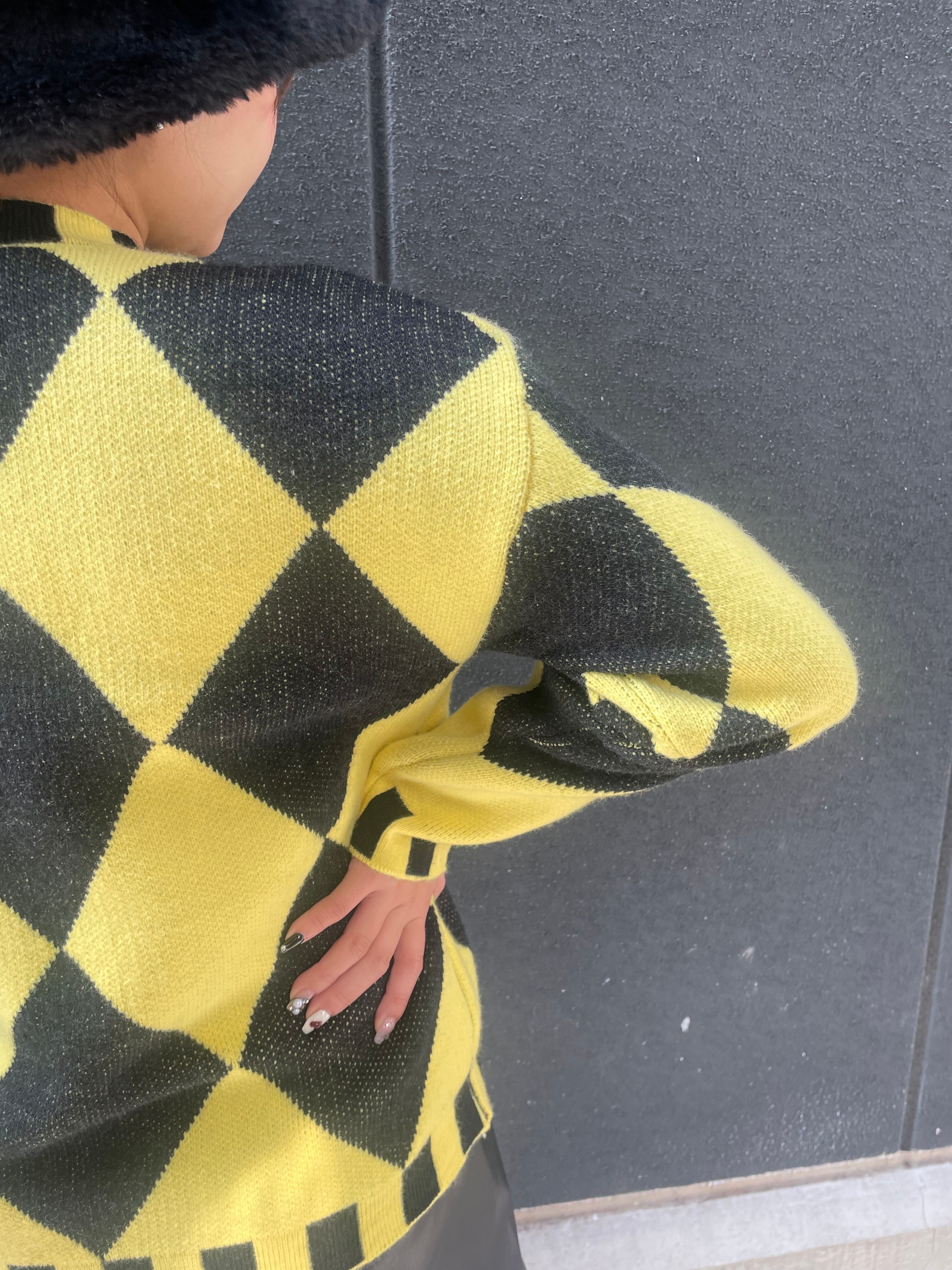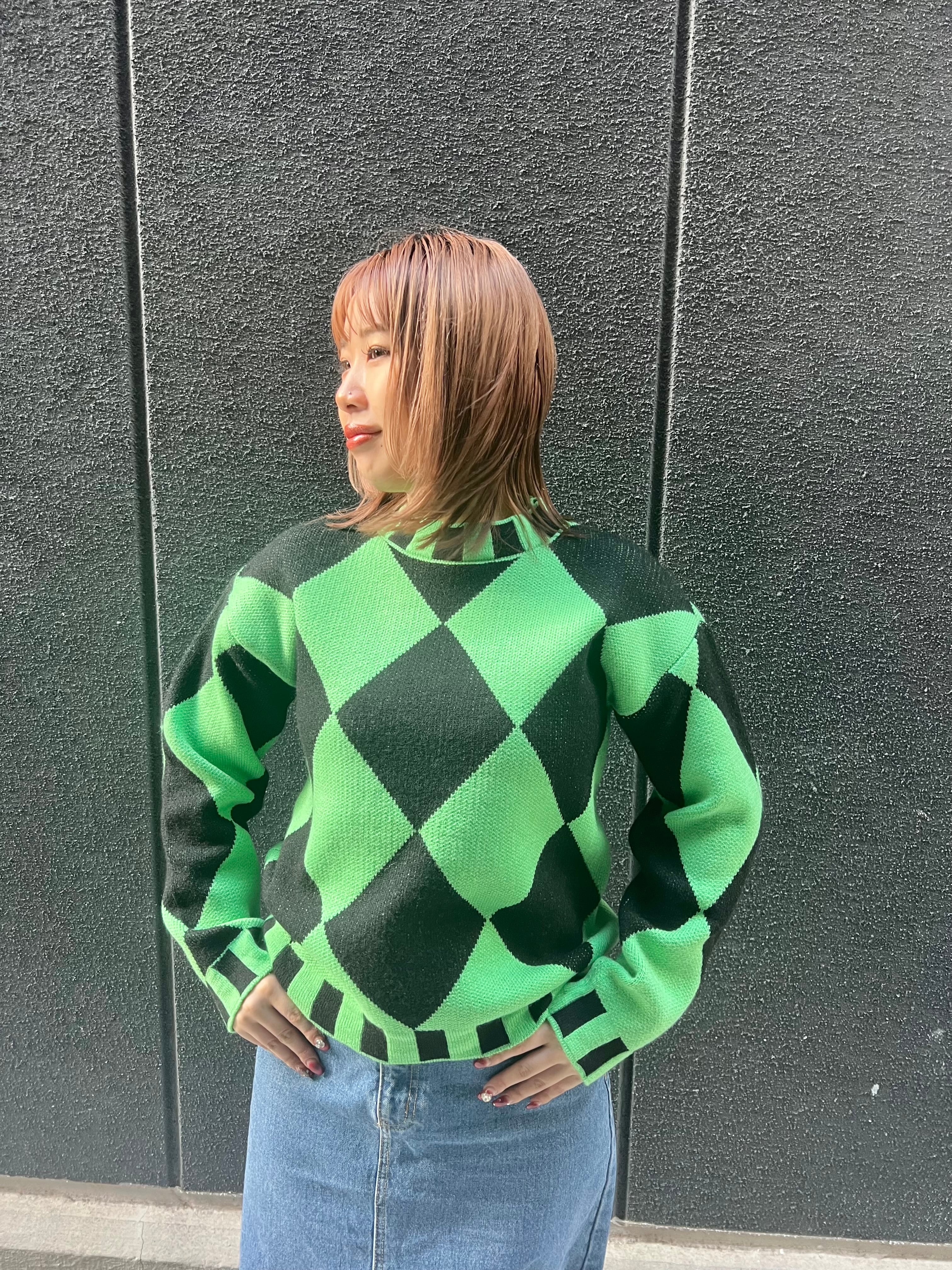 bi-color dia pattern jacquard knit tops sweater ニット トップス セーター ジャガード バイカラー ダイア柄