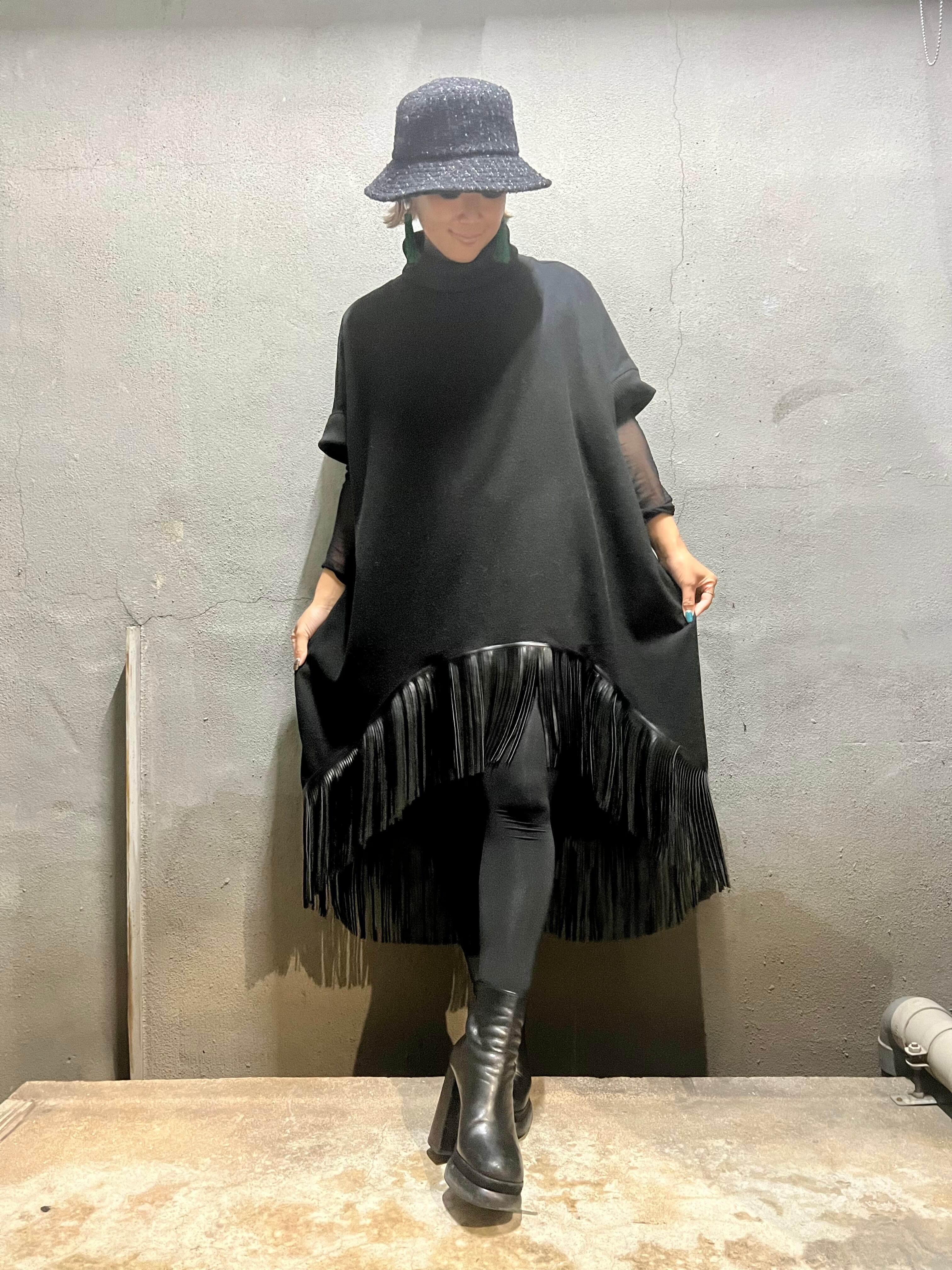 fringe trimming high neck high &low design one-piece ワンピース ワンピ ハイネック フリンジ ハイアンドロー ブラック 黒