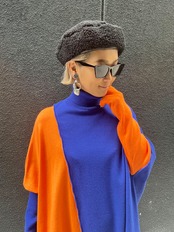 irregular design bi-color high neck knit one-piece ニット ワンピース ニットワンピ バイカラー ハイネック タートル イレギュラー アシンメトリー