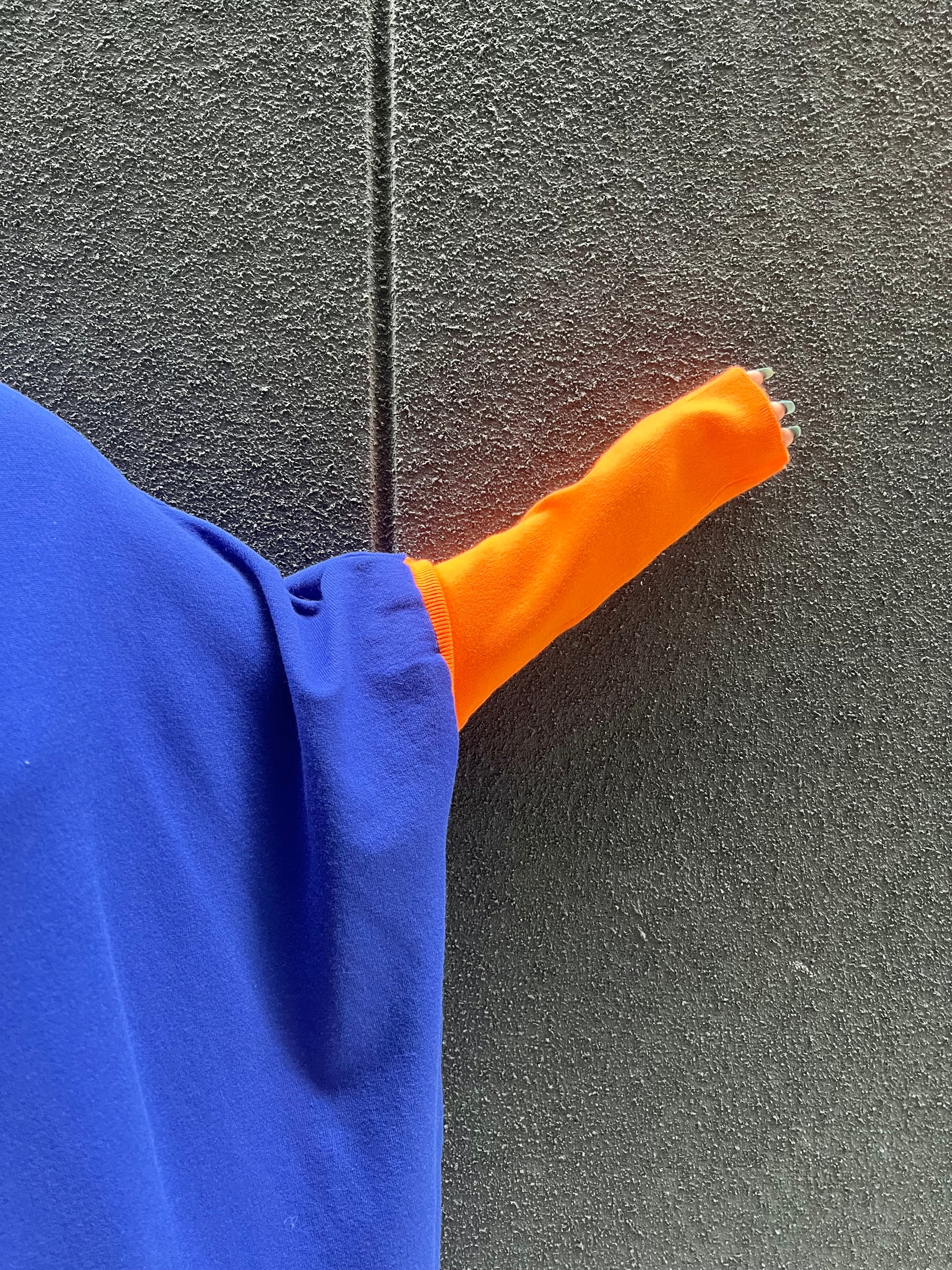 斬新なアシンメトリーデザインとバイカラーを組み合わせたニットワンピースです。