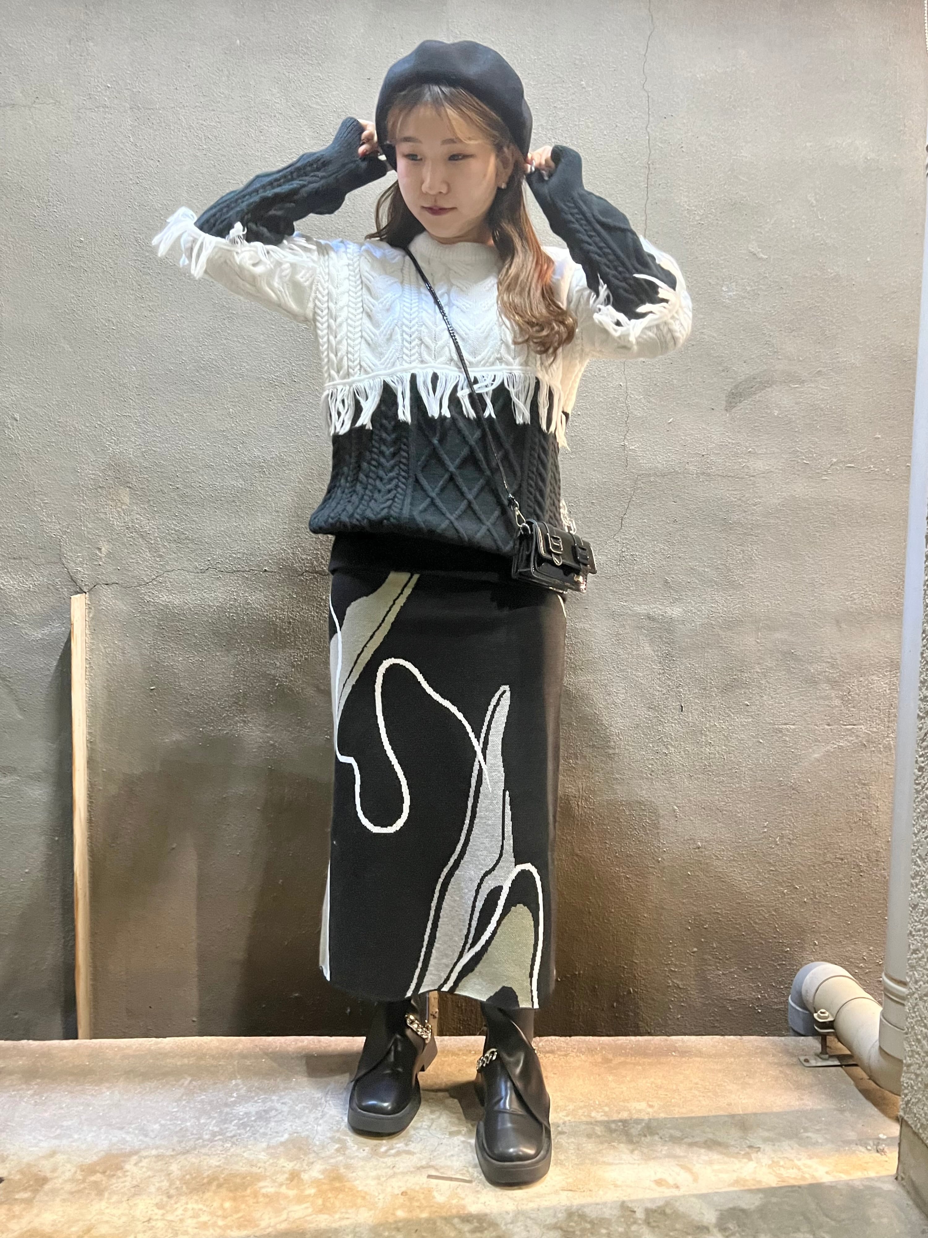 このケーブルニットは白黒バイカラーで、どんなスタイルにも合わせやすいアイテムです♡