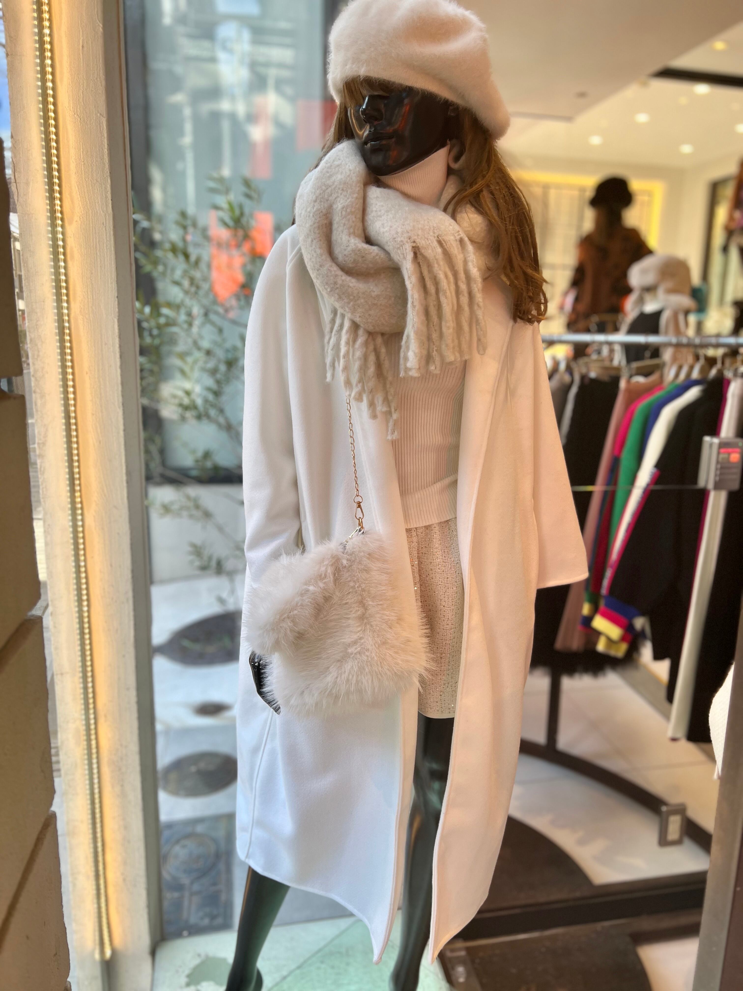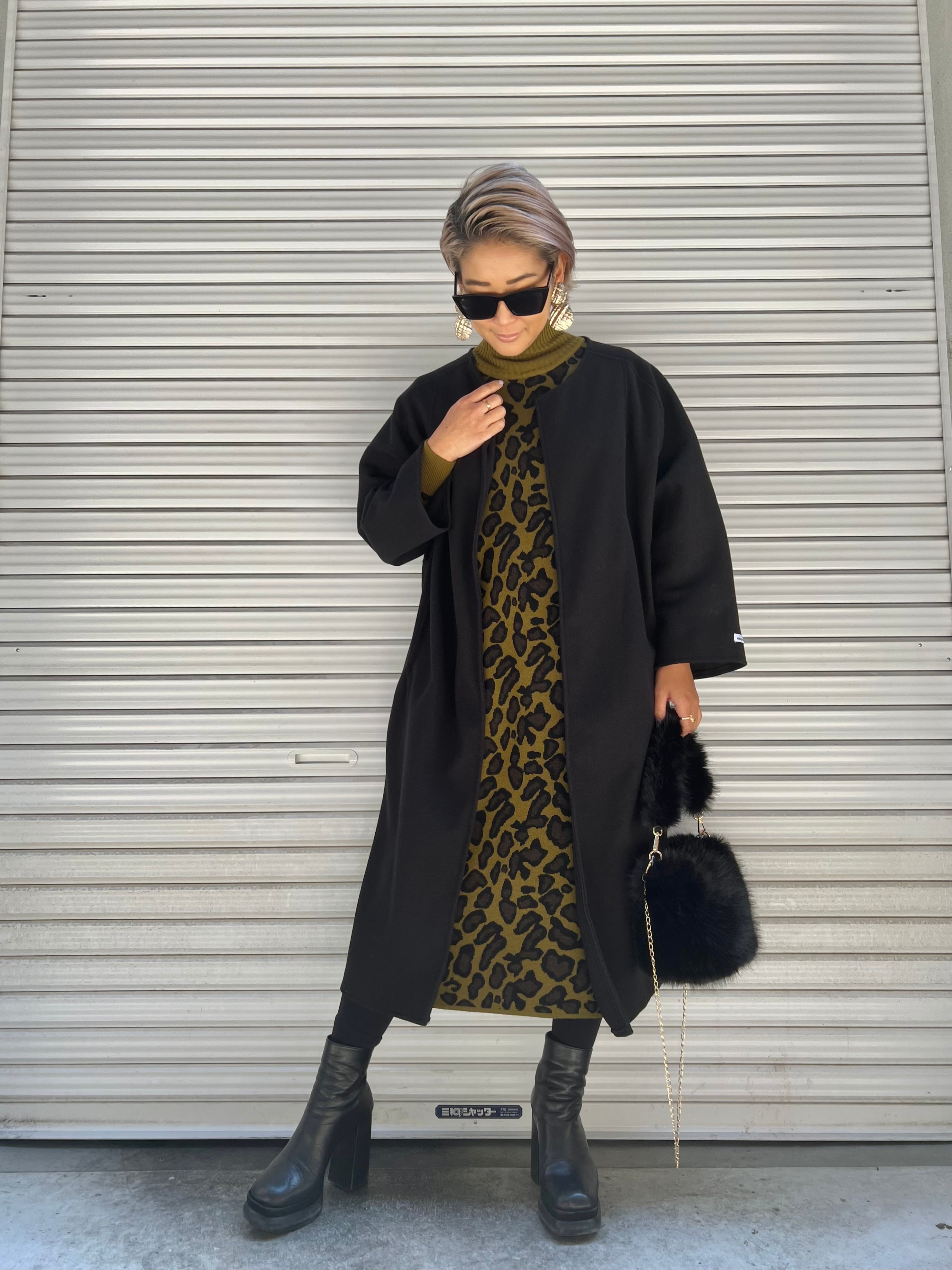 ノーカラーのデザインが全体をすっきりとまとめ、ビックシルエットで存在感抜群◎