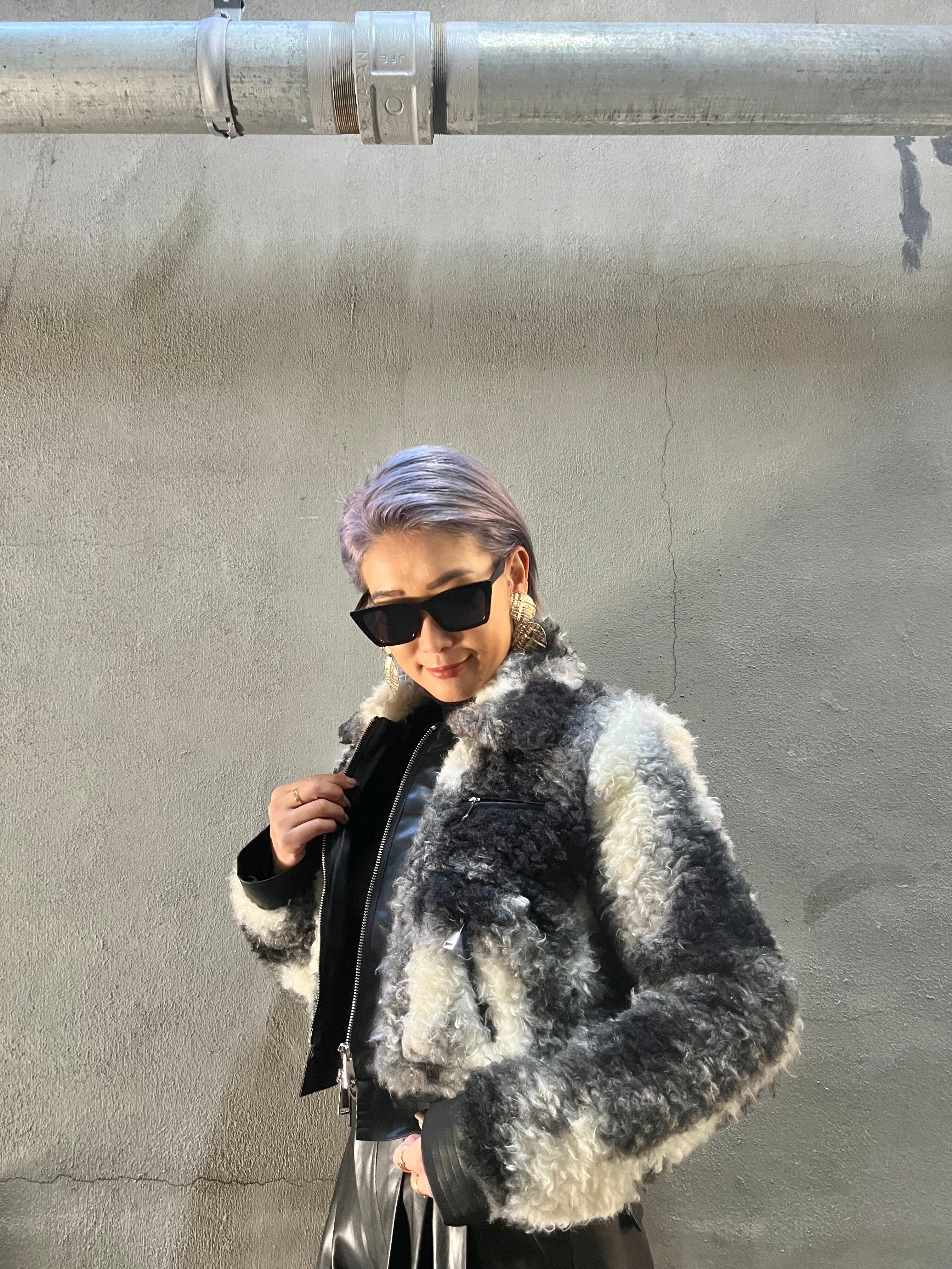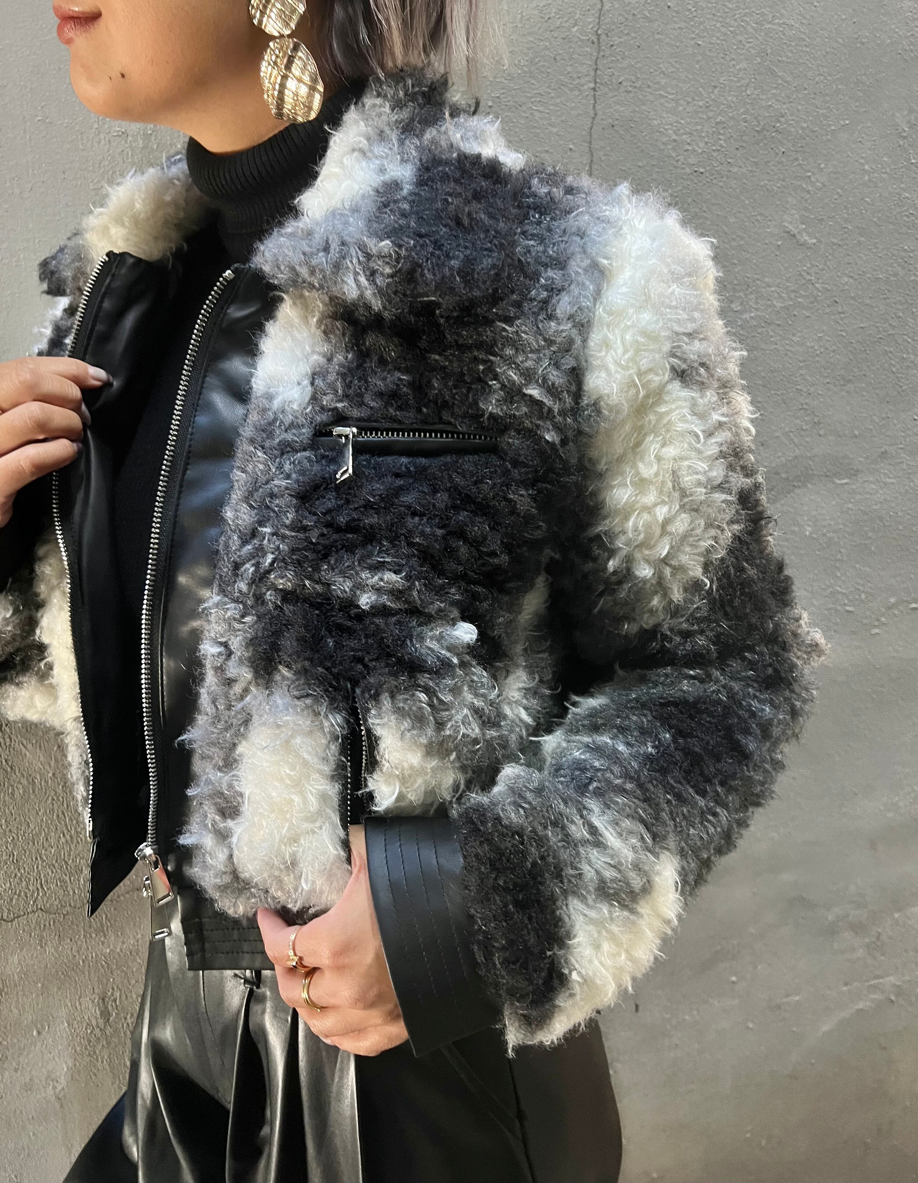 eco fur gradation curl short jacket ジャケット ショート丈 エコファー フェイクファー カール 合皮