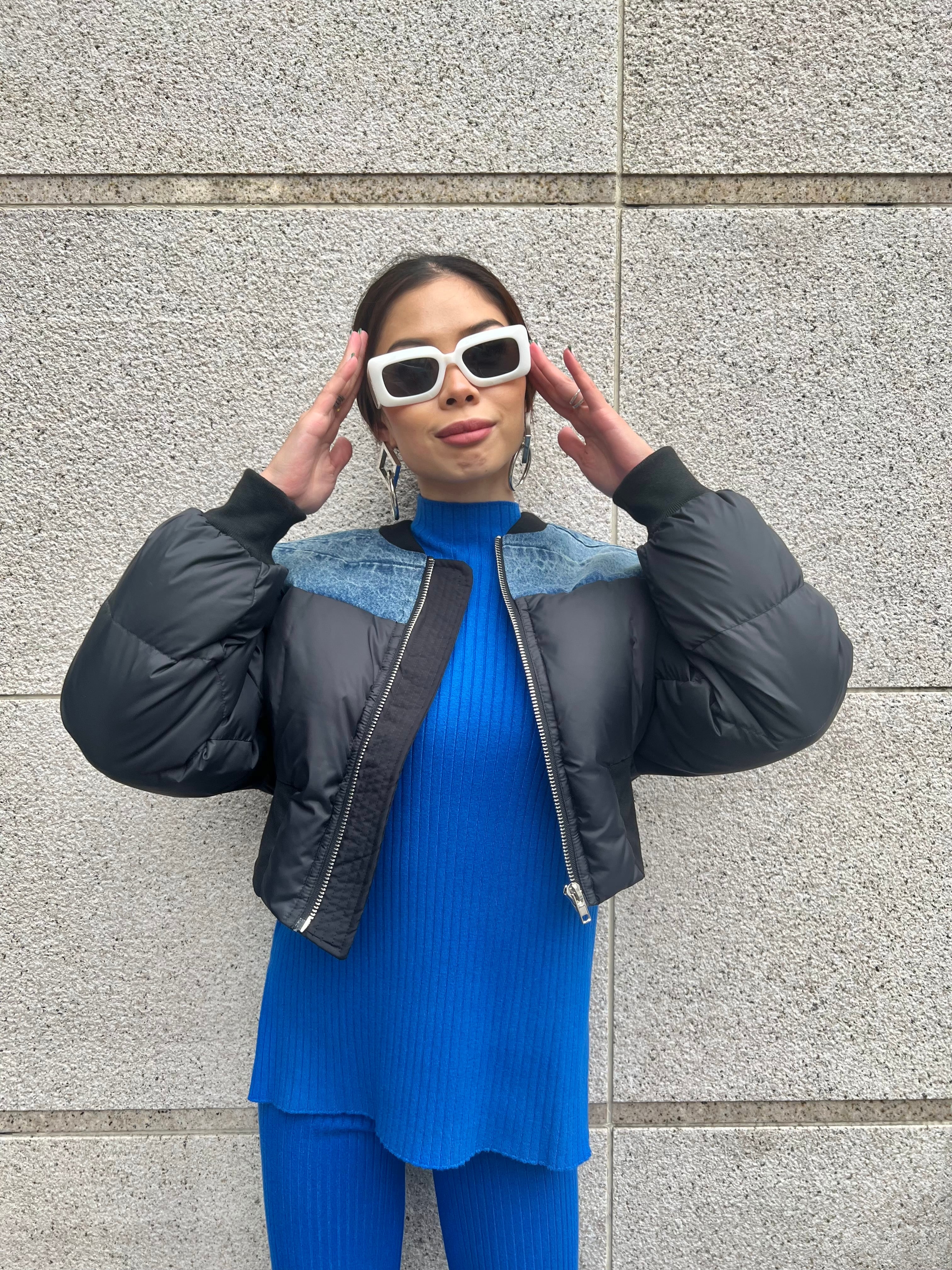 denim change short down jacket ジャケット ダウン 切替デザイン デニム ショート丈 ジップ カジュアル