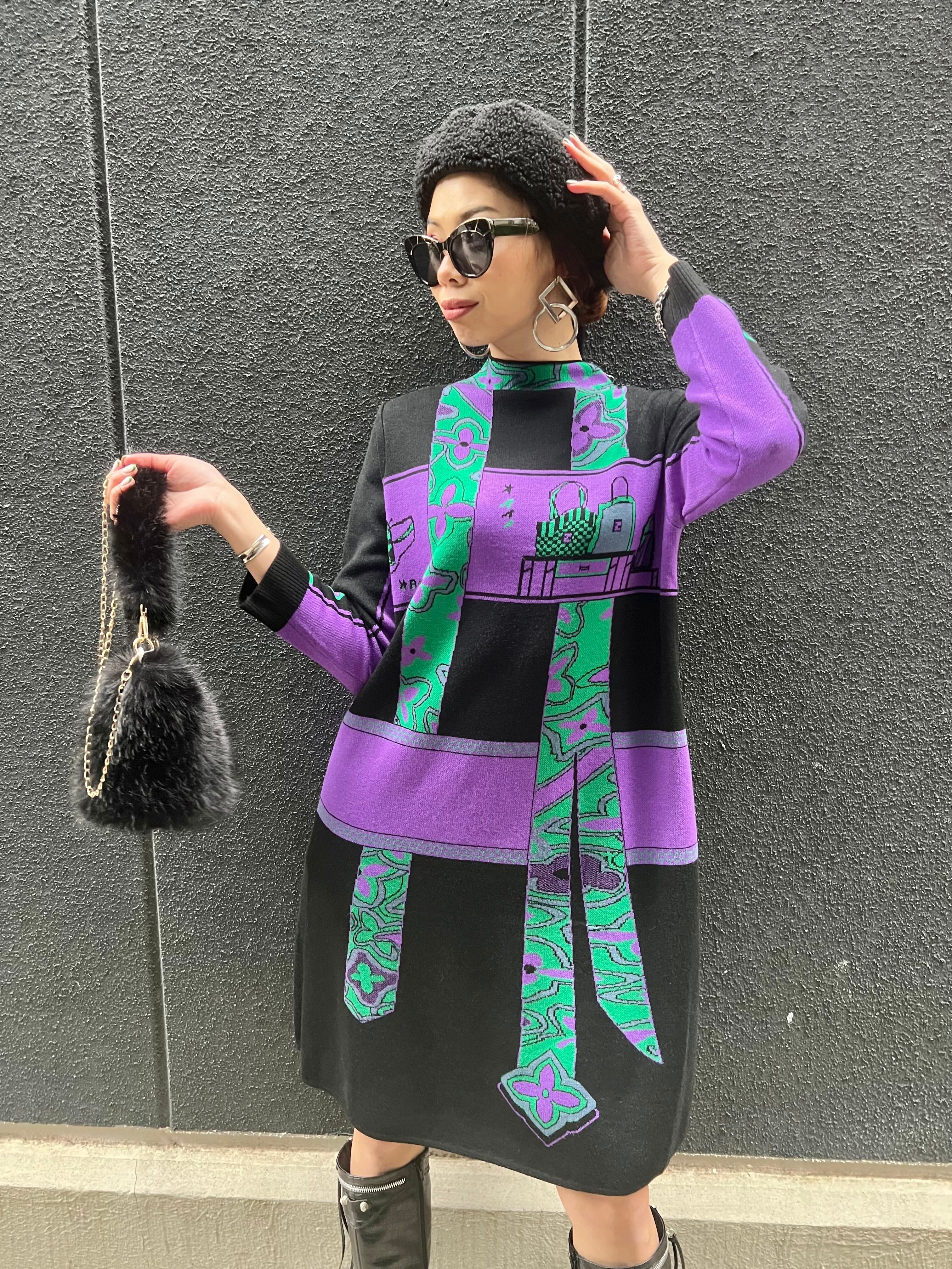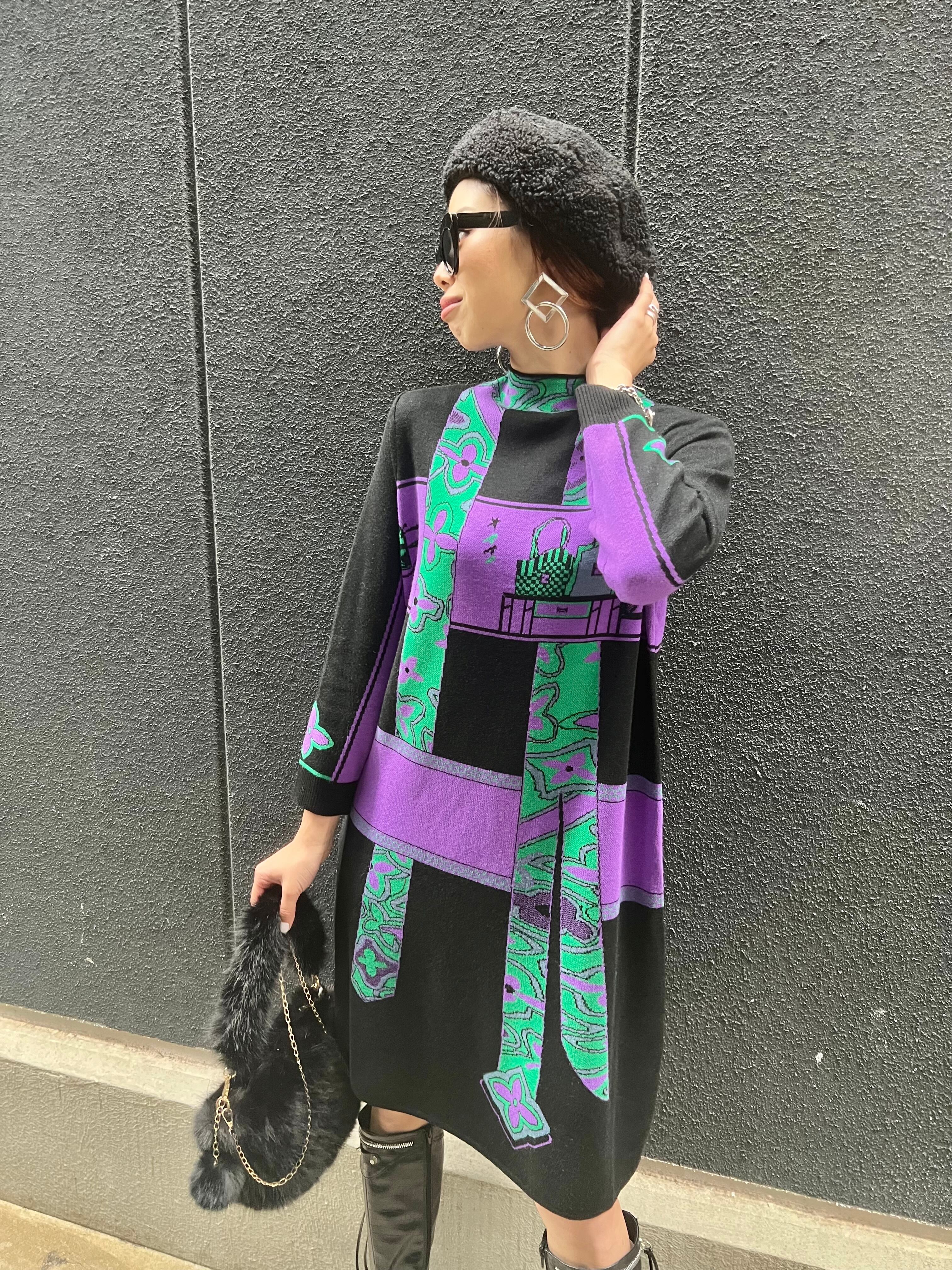 stole design knit one-piece ニット ワンピース ニットワンピ 柄ワンピ