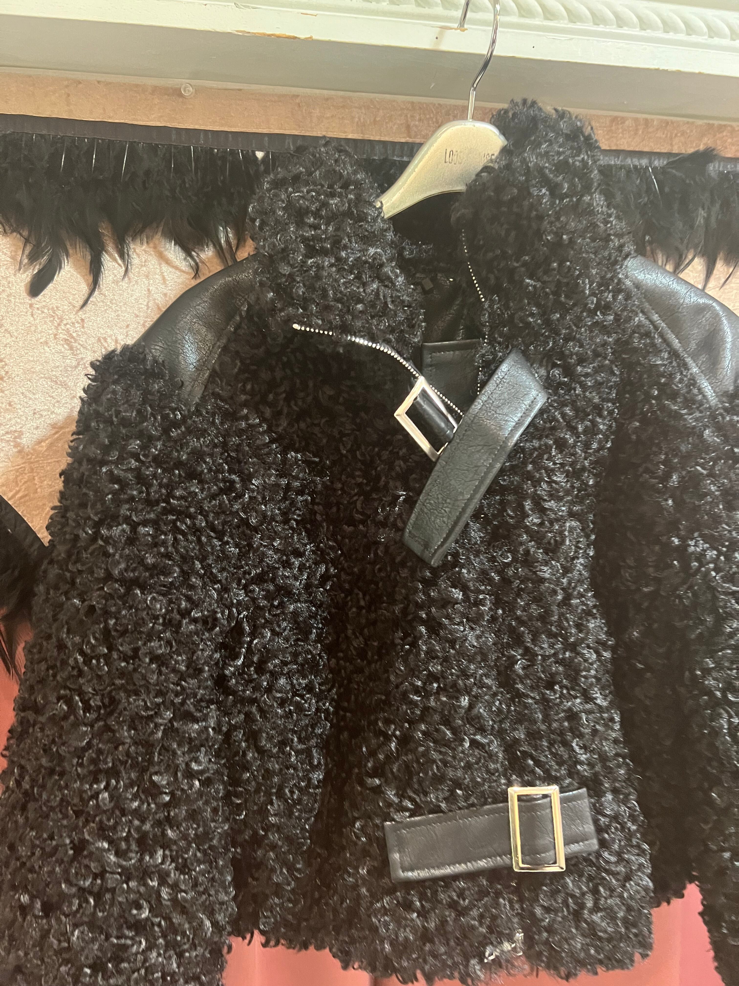 華やかでスタイリッシュなジャケット、カールエコファーベルト×ジップデザインジャケット!エコファーの豪華な装飾とカールファーの華やかさ、そしてウエストを引き締めるベルトとジップのデザインが特徴です。