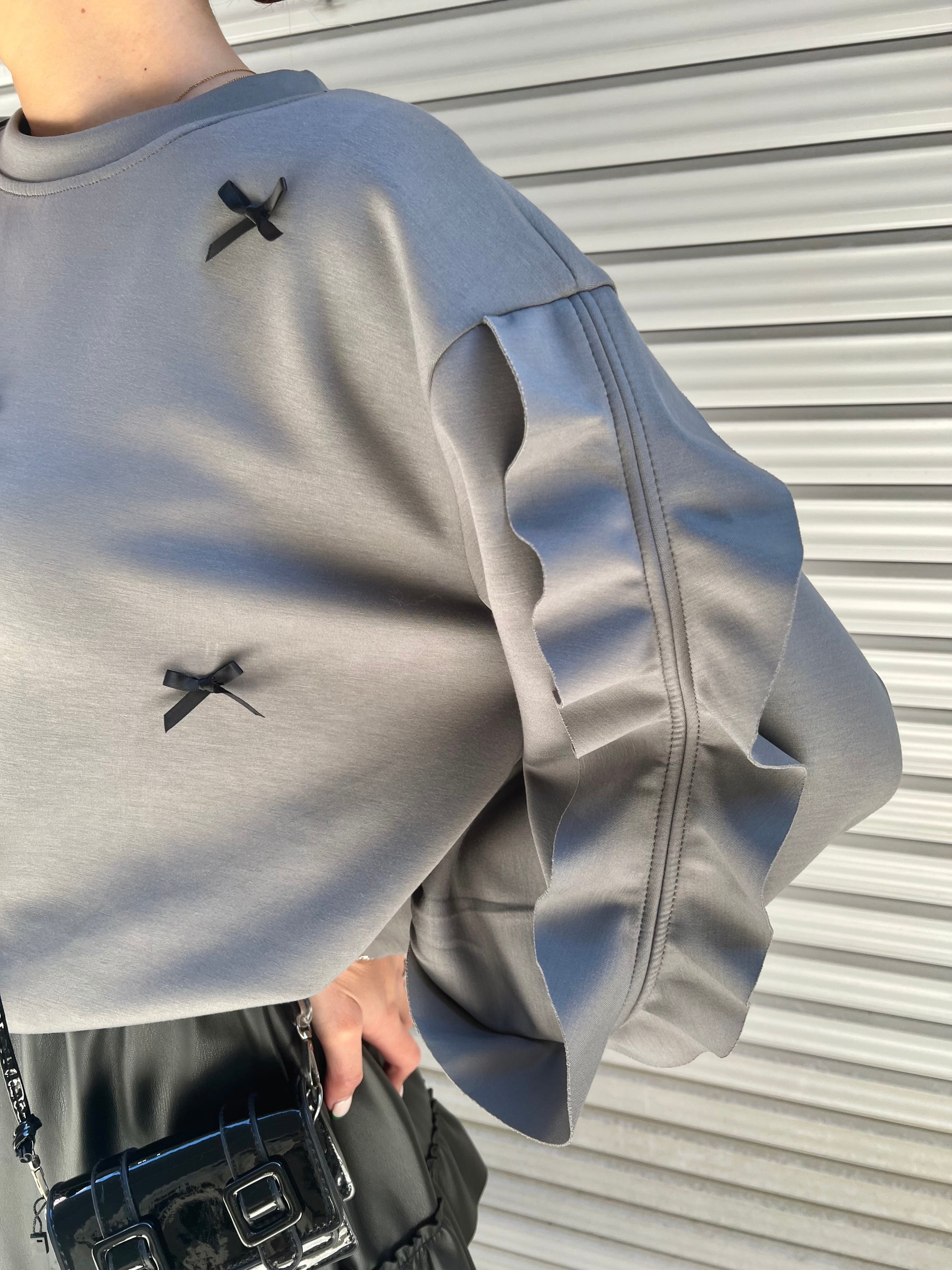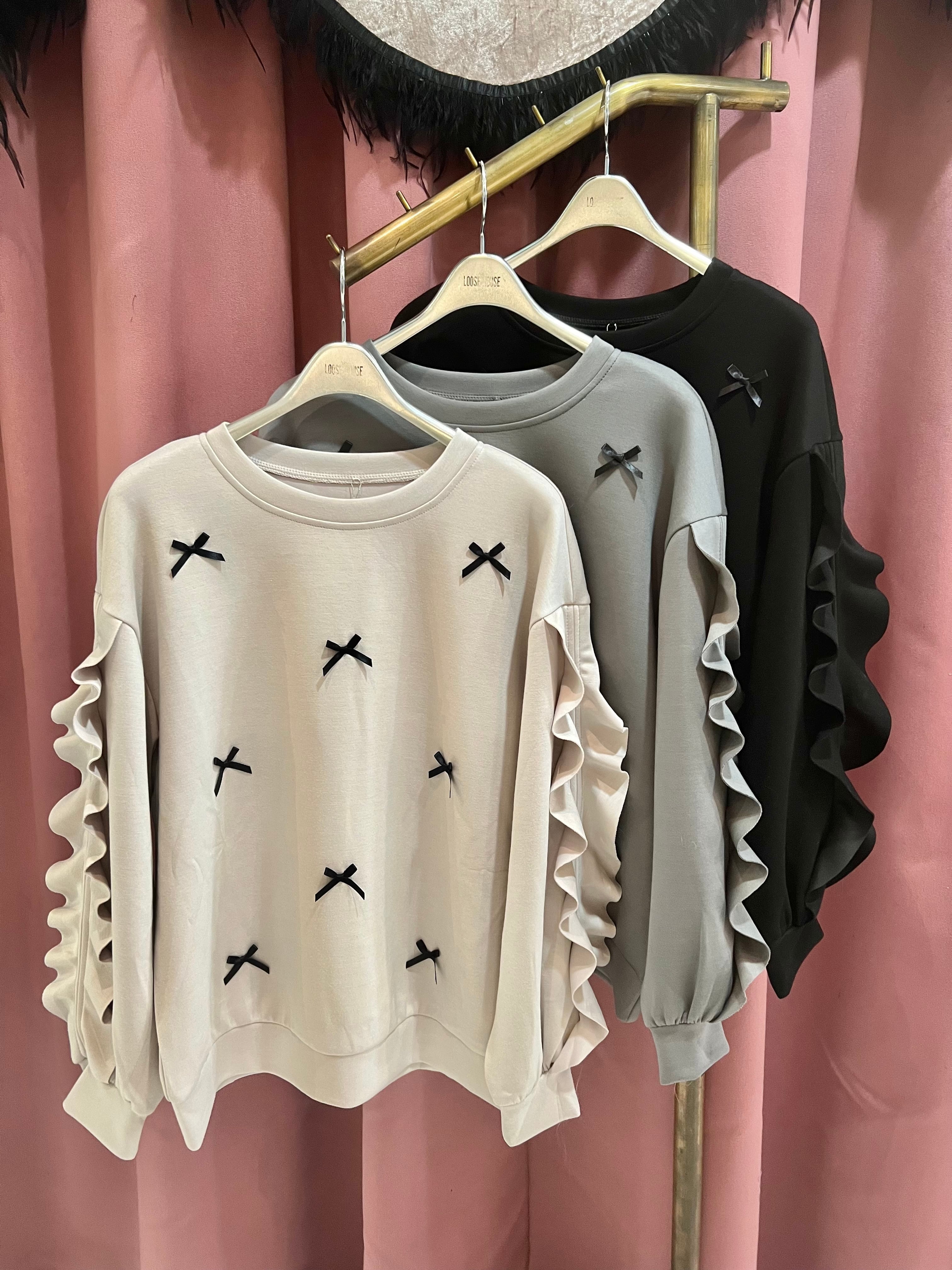 mini ribbon frill sleeve design tops pullover トップス プルオーバー デザイントップス リボン フリル デザインスリーブ