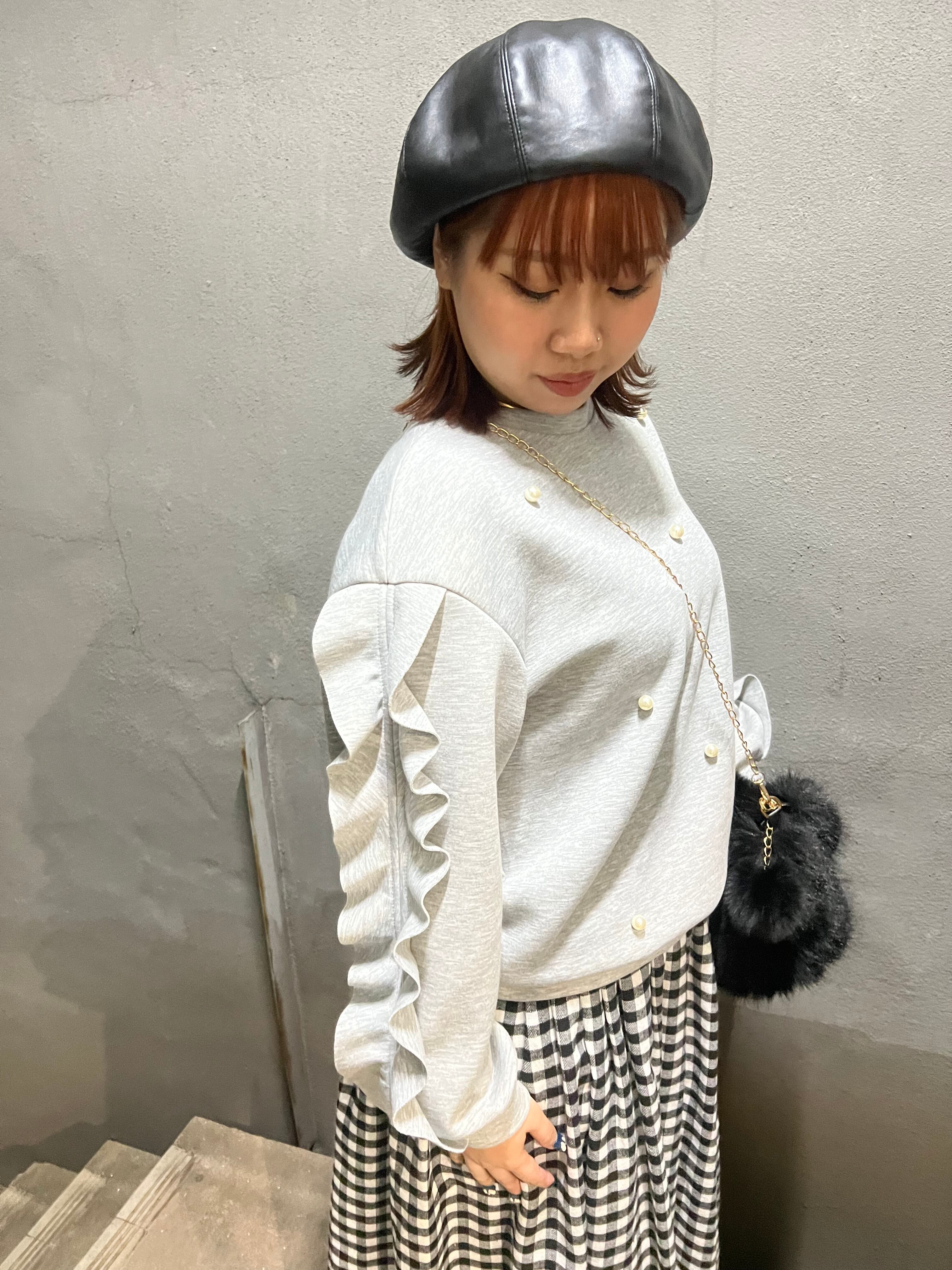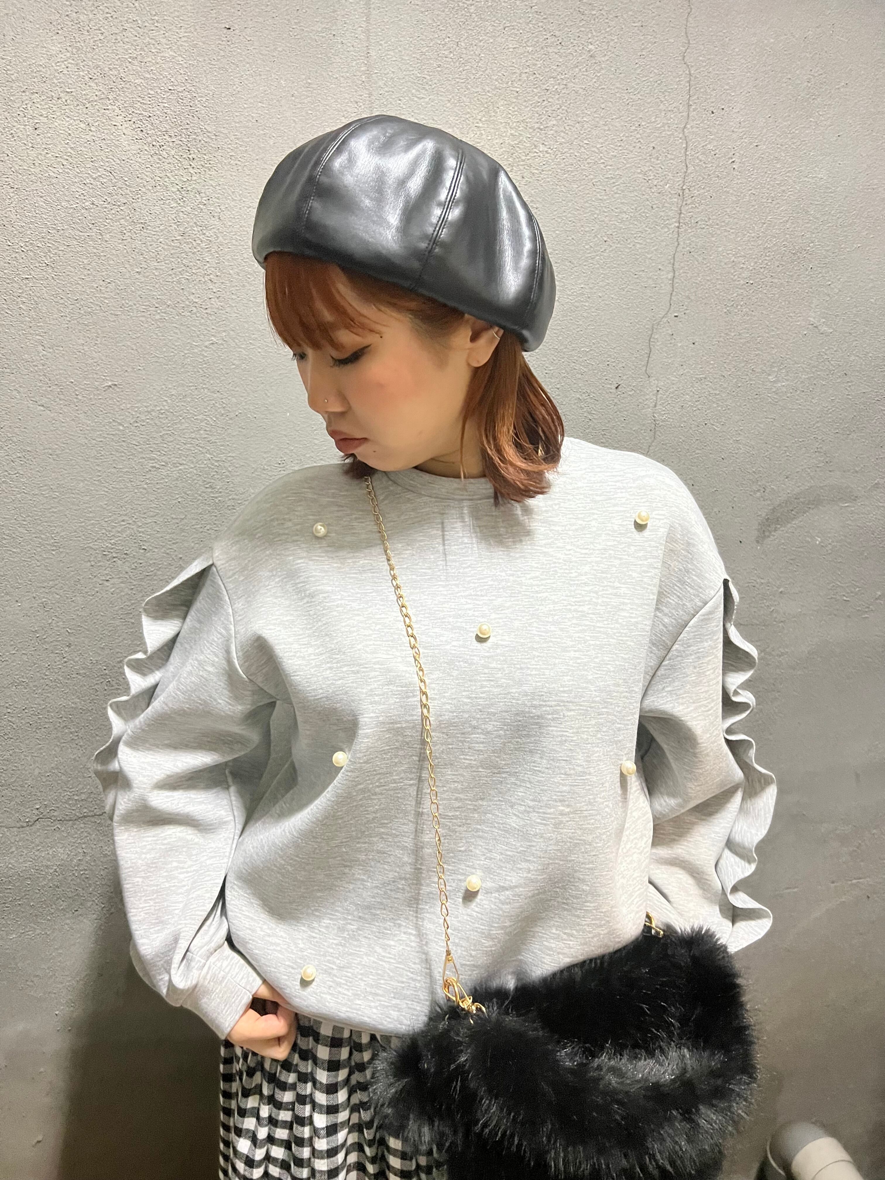 pearl × frill sleeve design tops pullover トップス プルオーバー デザイントップス フリル パール デザインスリーブ