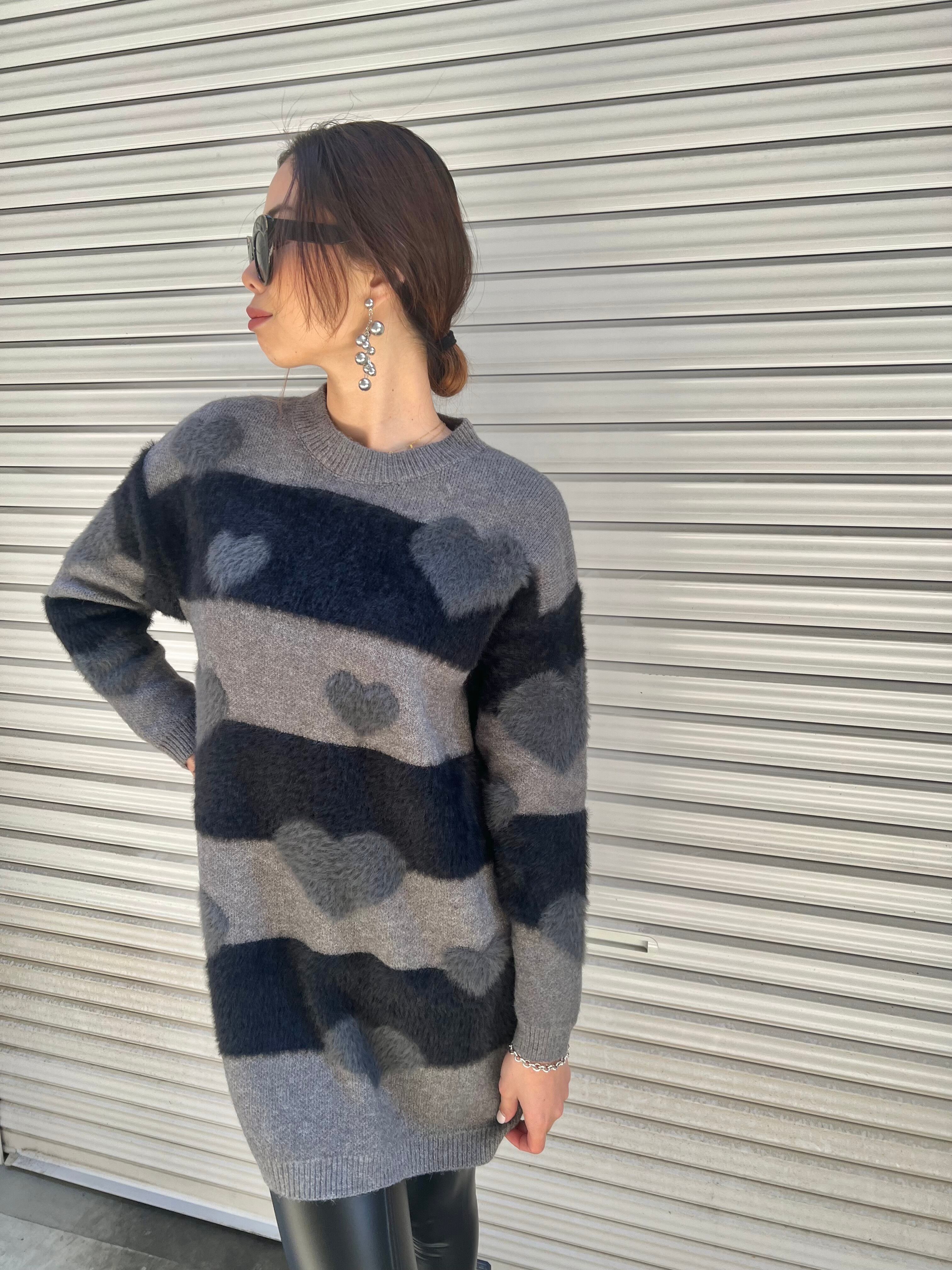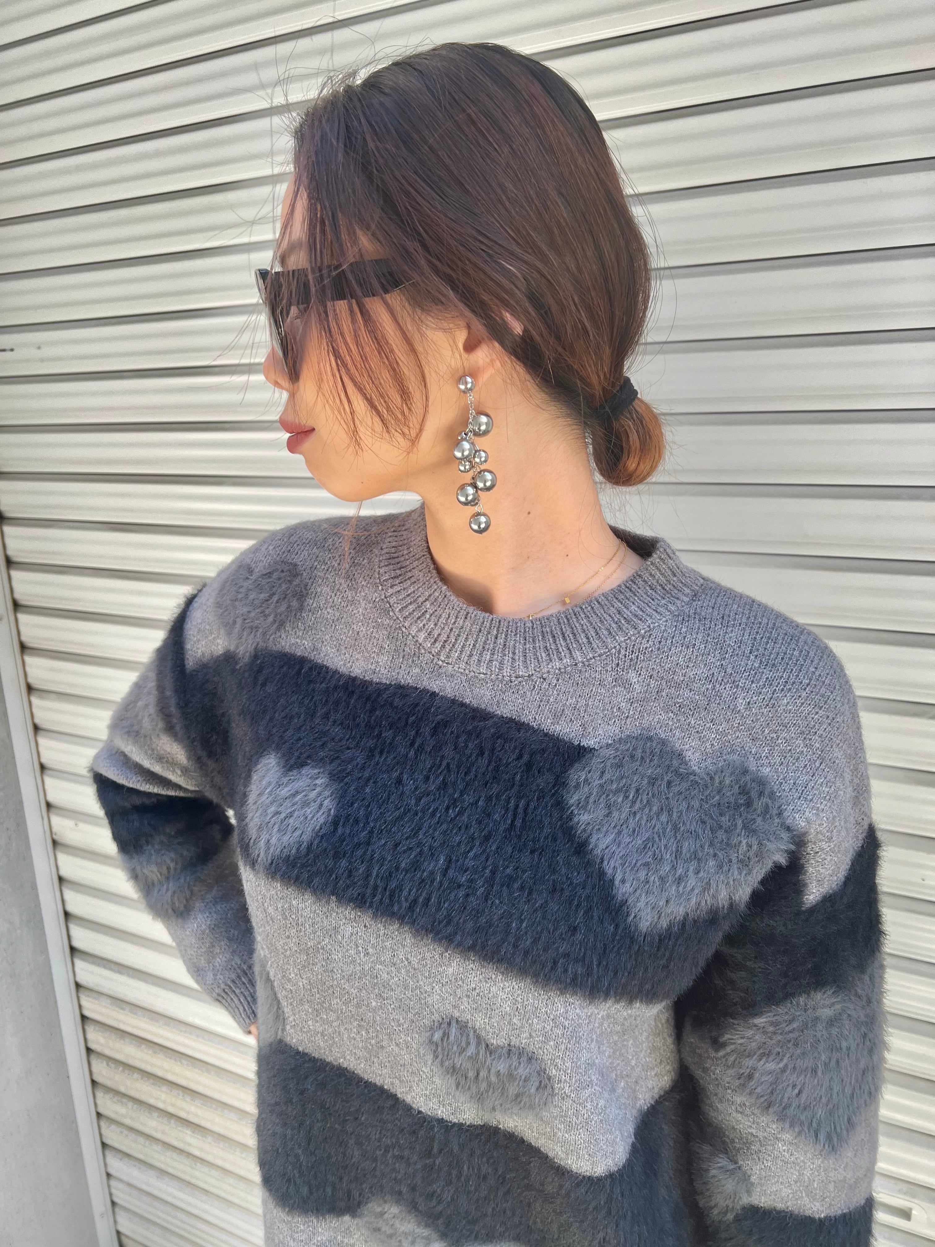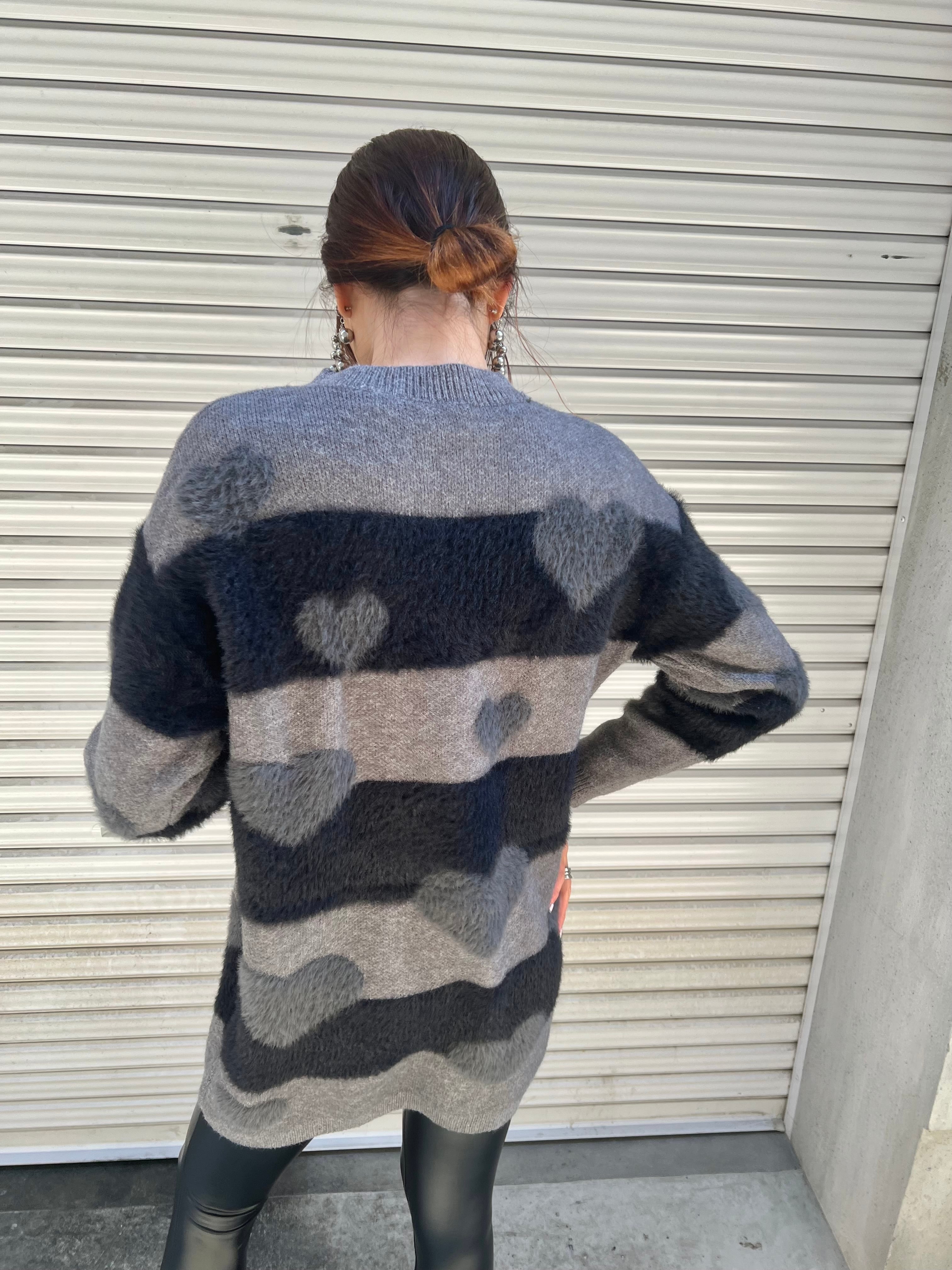 heart × boarder shaggy knit ニット シャギー ボーダー ハート ロング丈