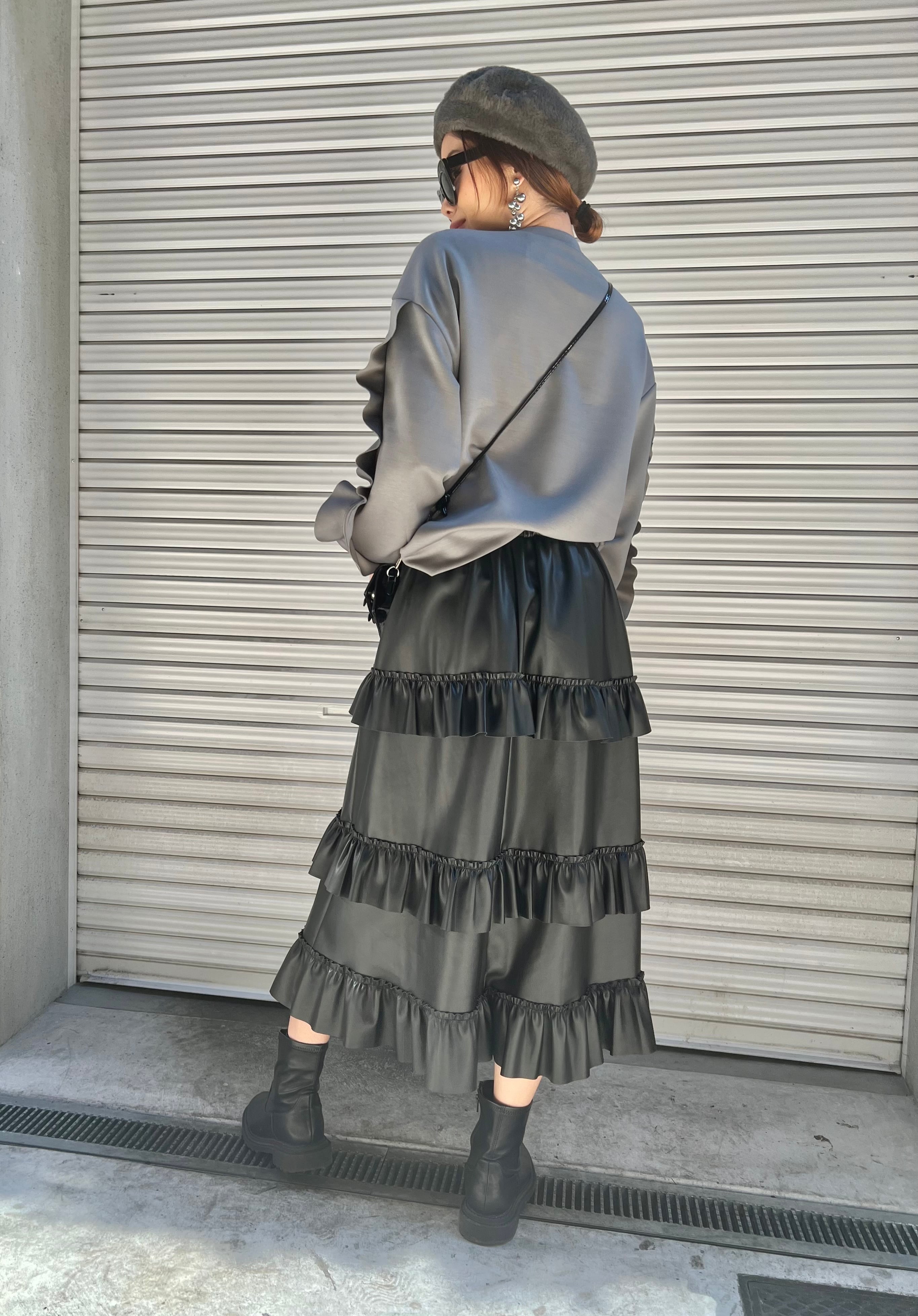 ゴージャスなティアードフリルが魅力のエコレザースカートです。