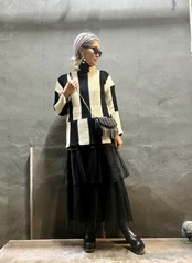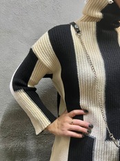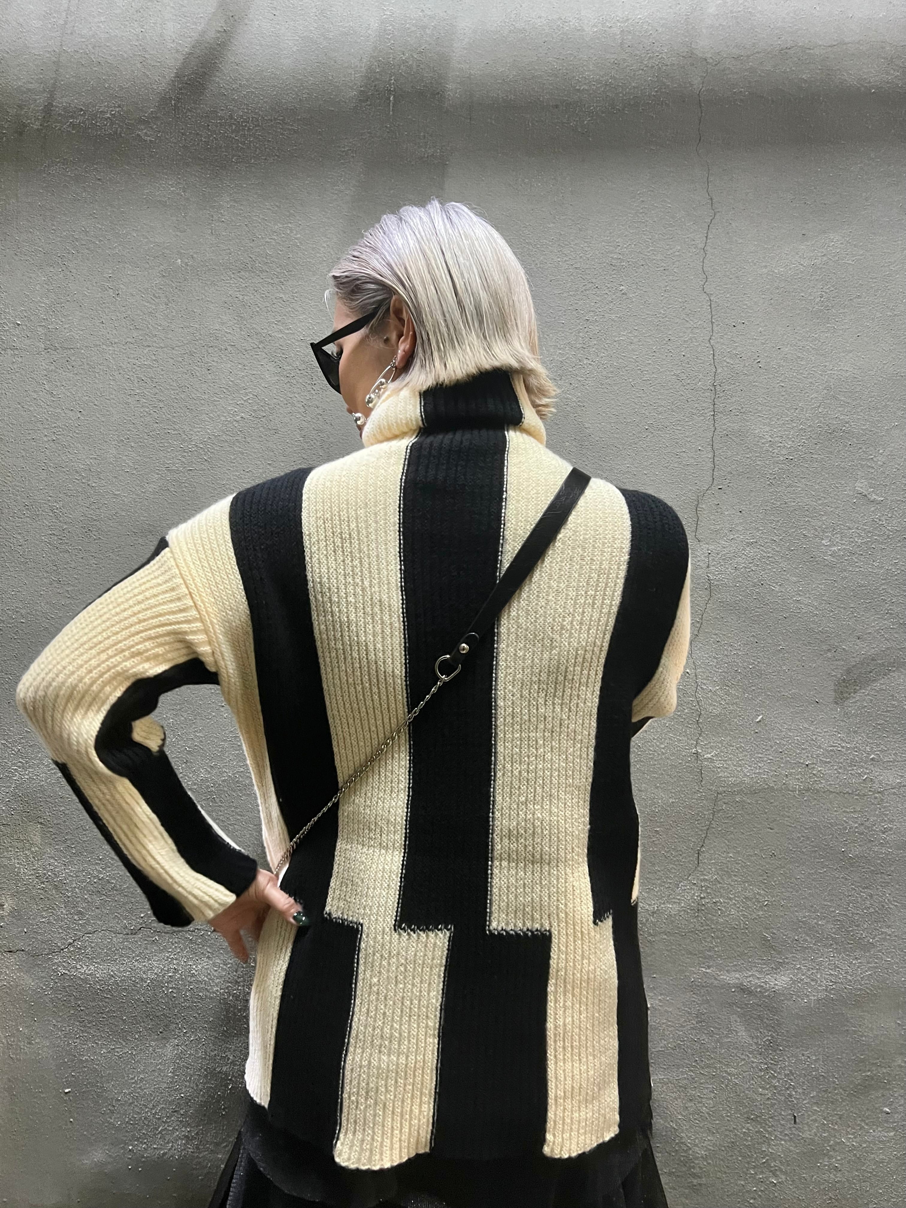 stripe bi-color design knit tops ニット トップス ストライプ バイカラー ハイネック