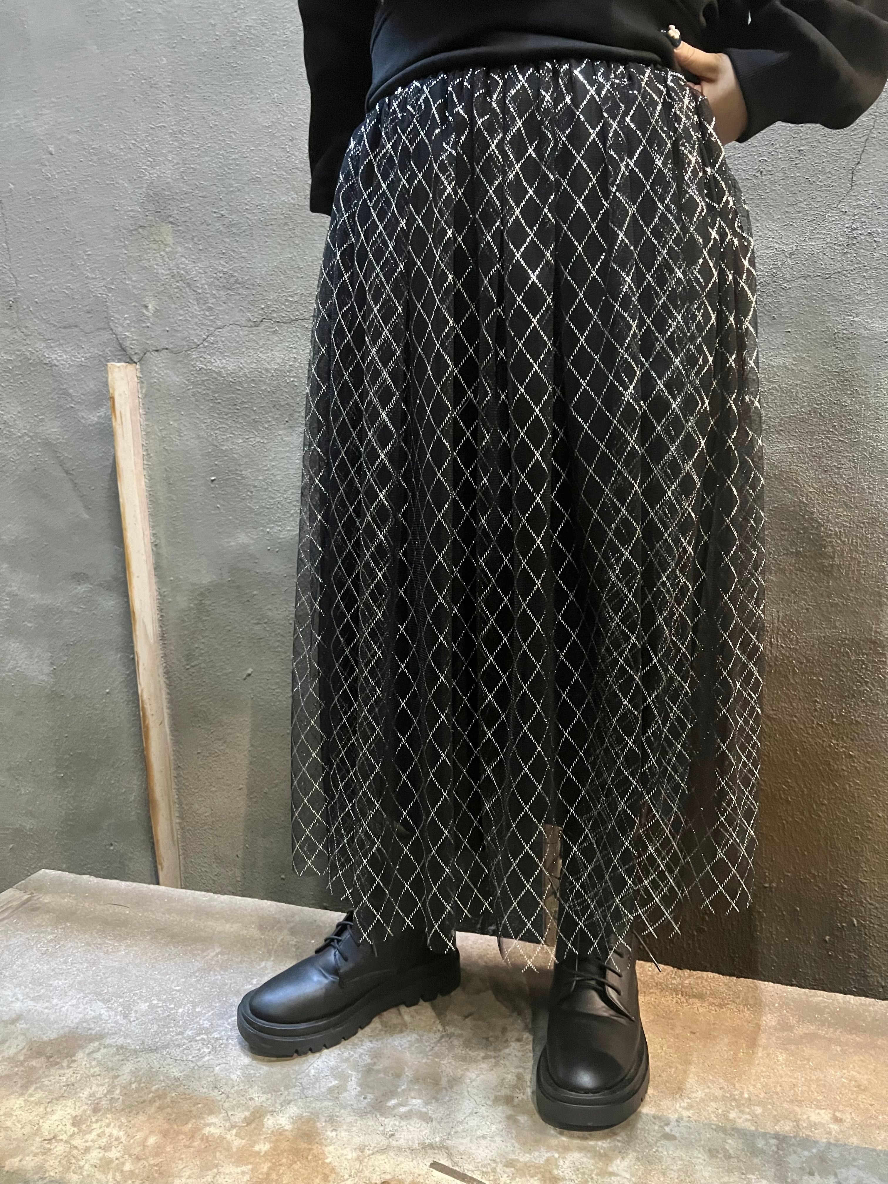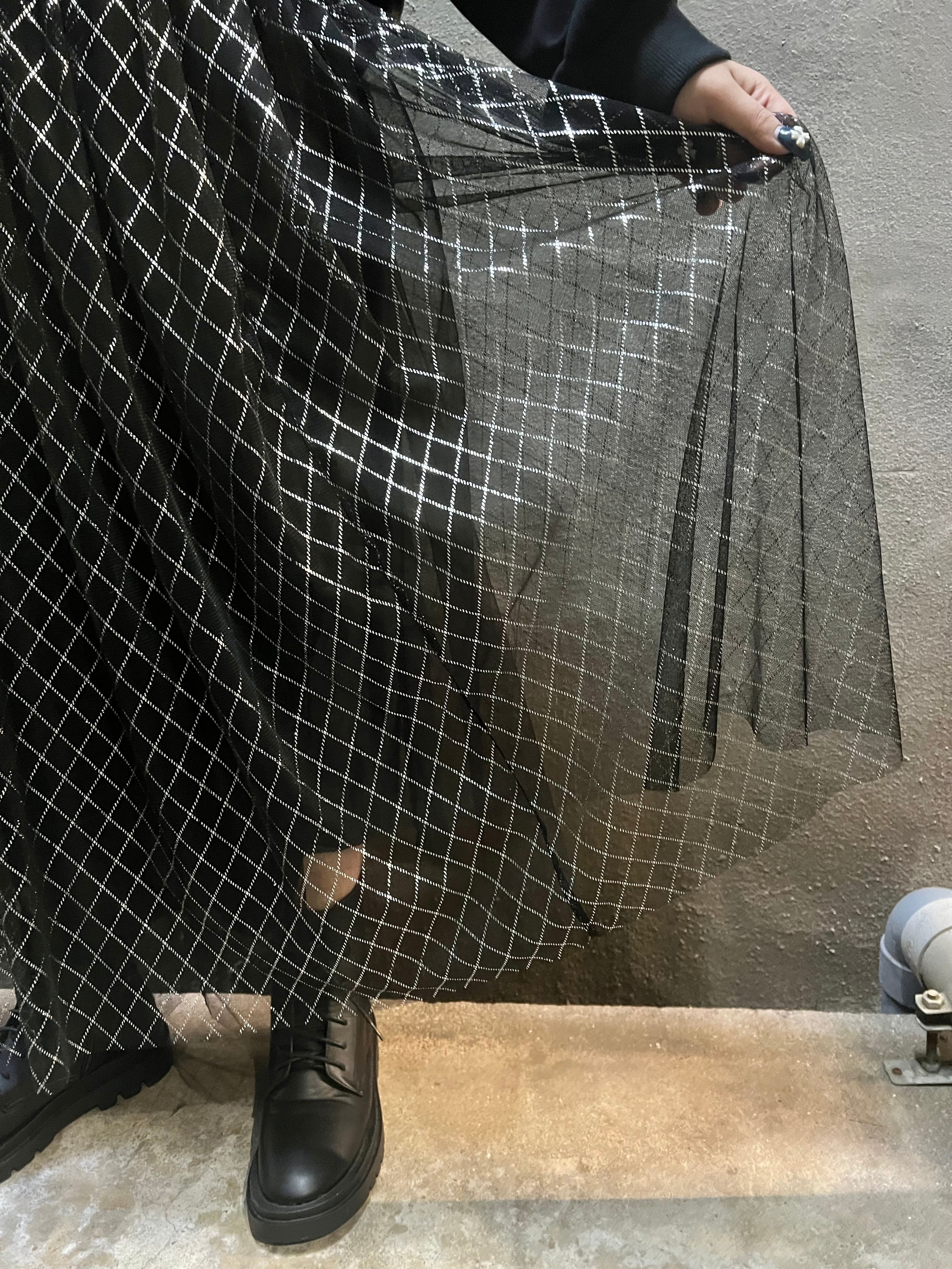 tulle mesh design skirt スカート チュール メッシュ シルバー キラキラ ゴムウエスト