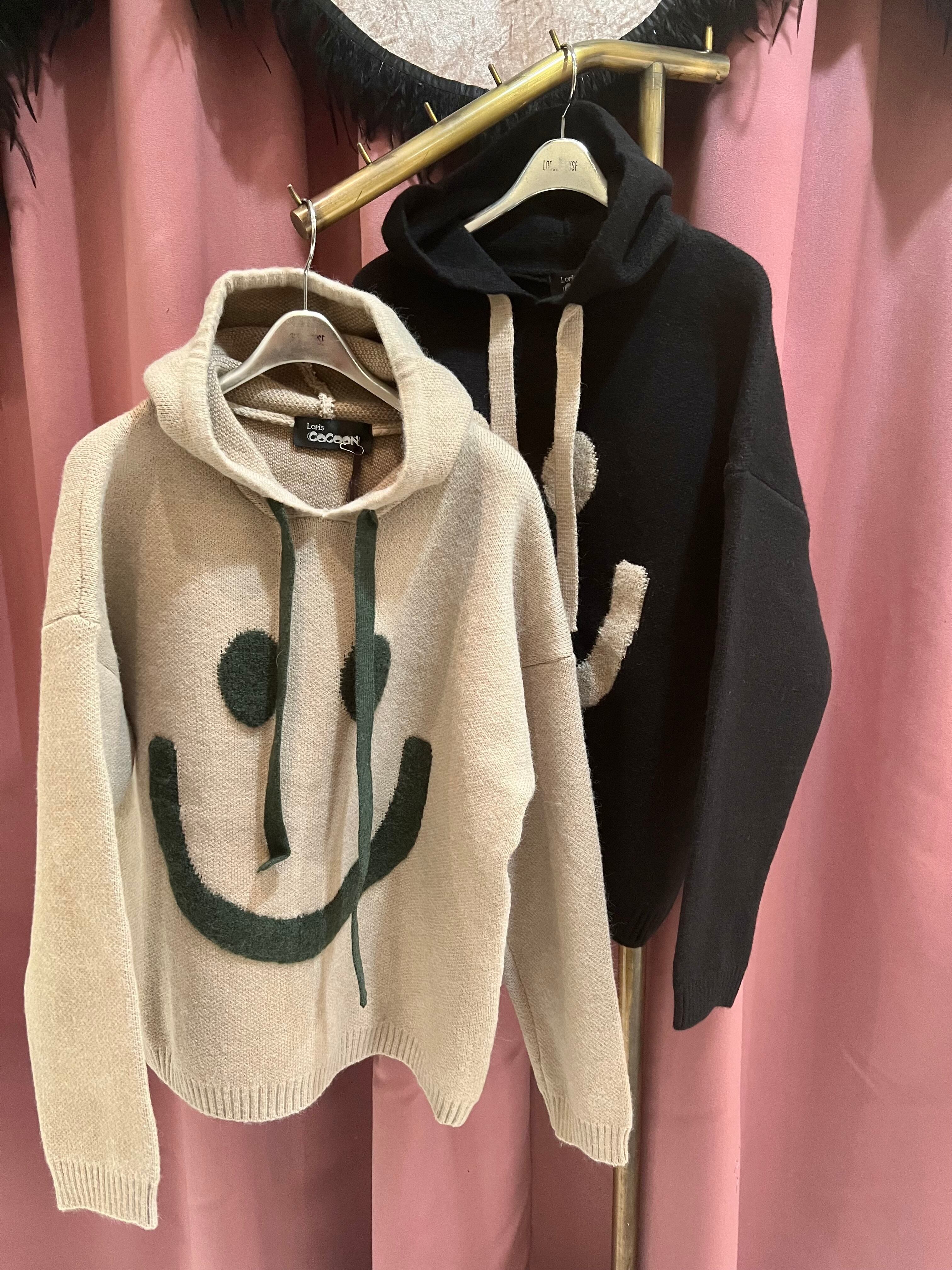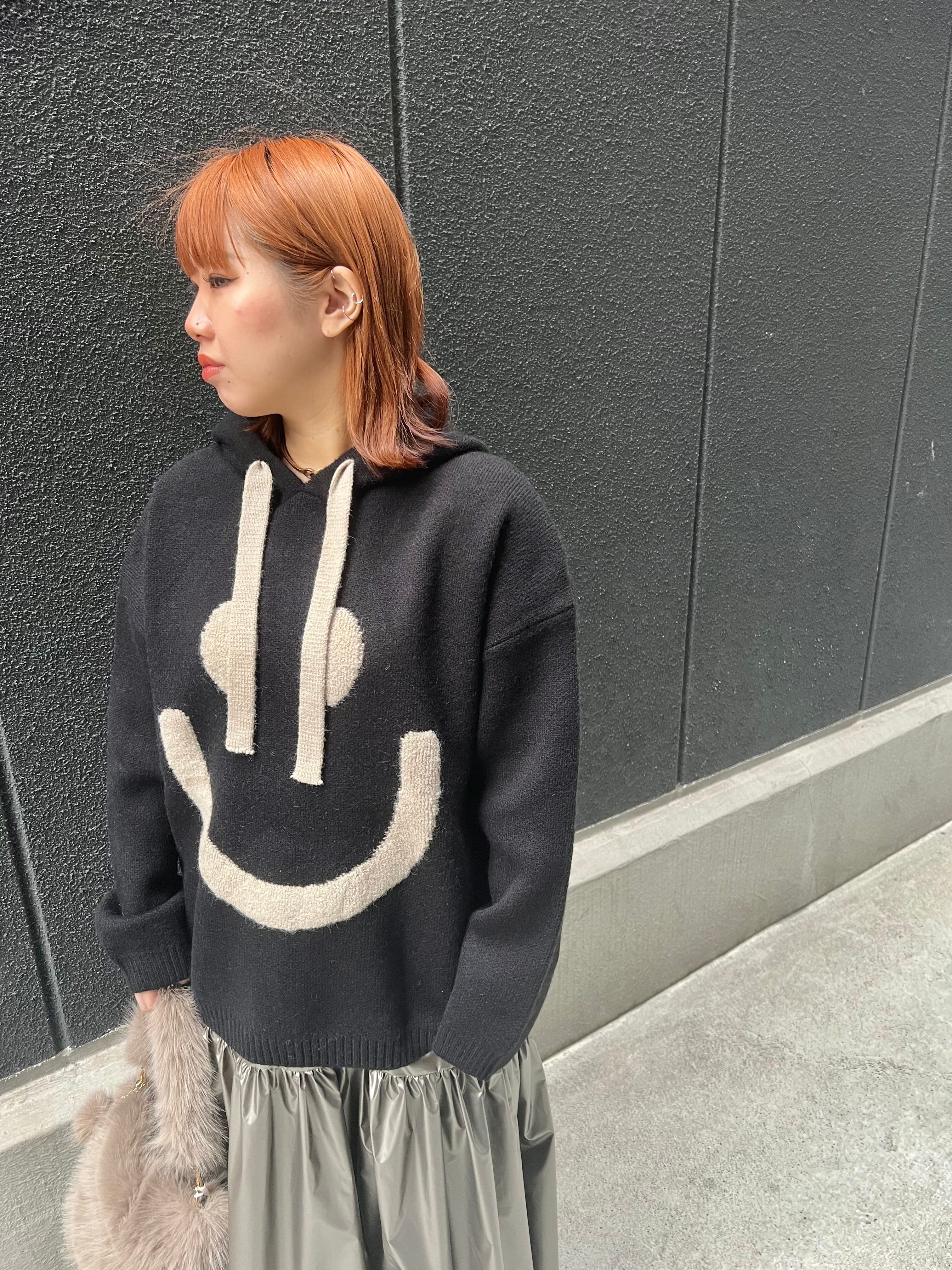 smiley hoodie jacquard knit tops トップス ニット ジャガード フーディー フード スマイリー ニコちゃん