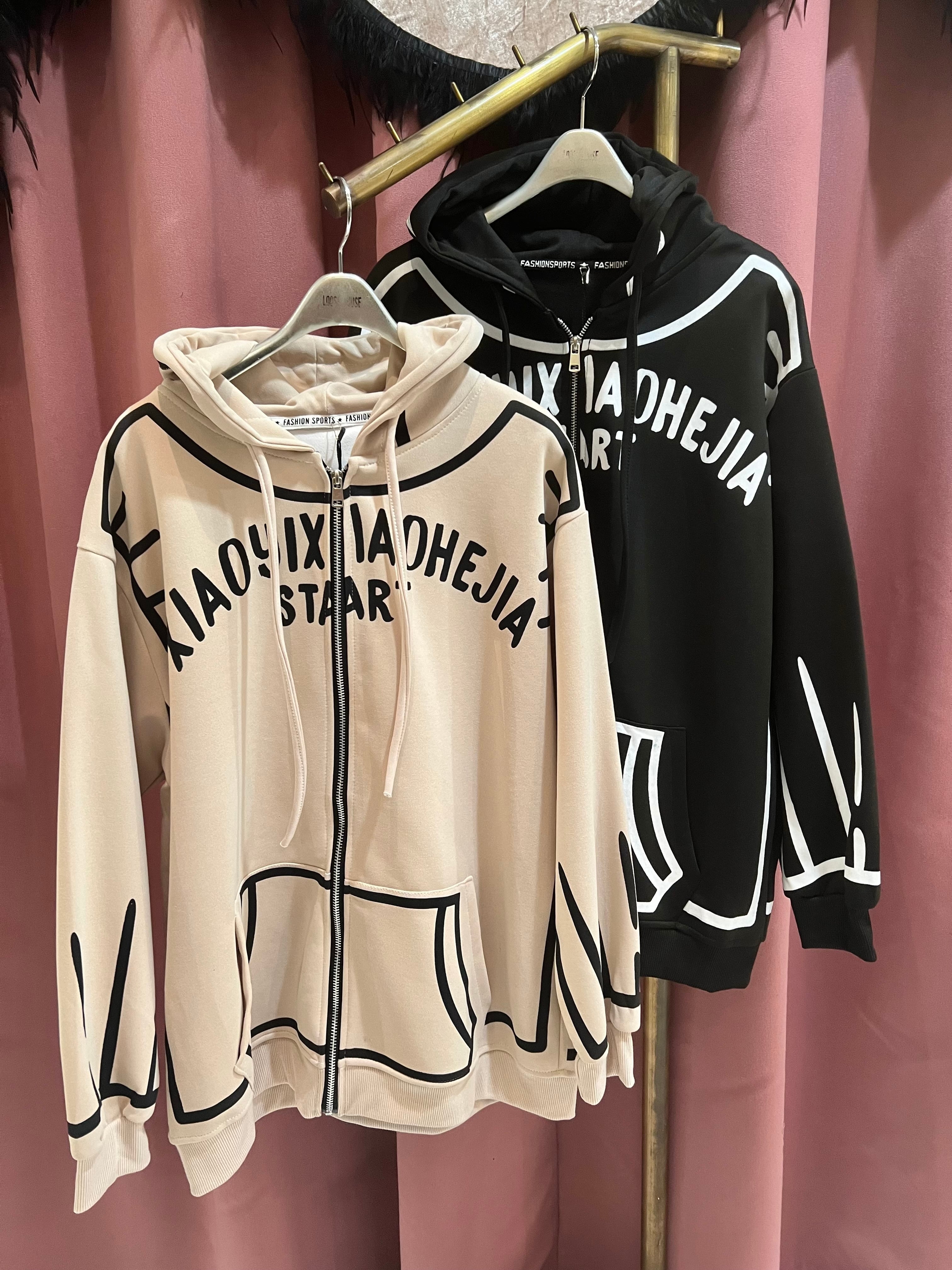 大胆な落書き風のペイントがクールな、フーディージャケット。