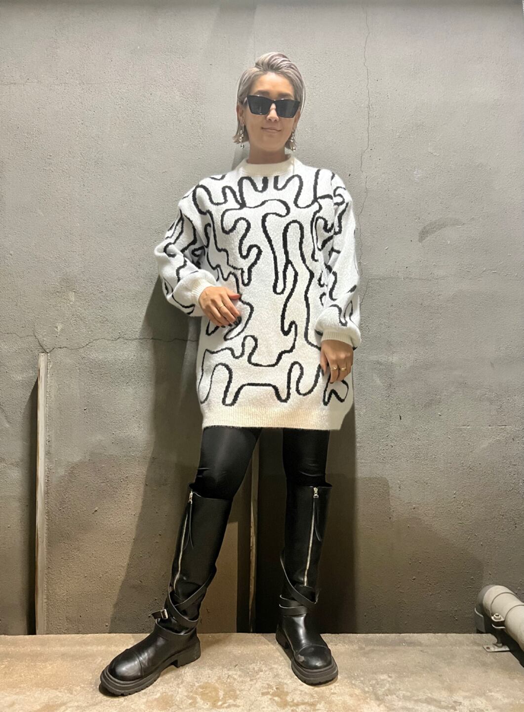 COOLなスタイルを叶える迷路のようなコード柄のニットワンピース♪