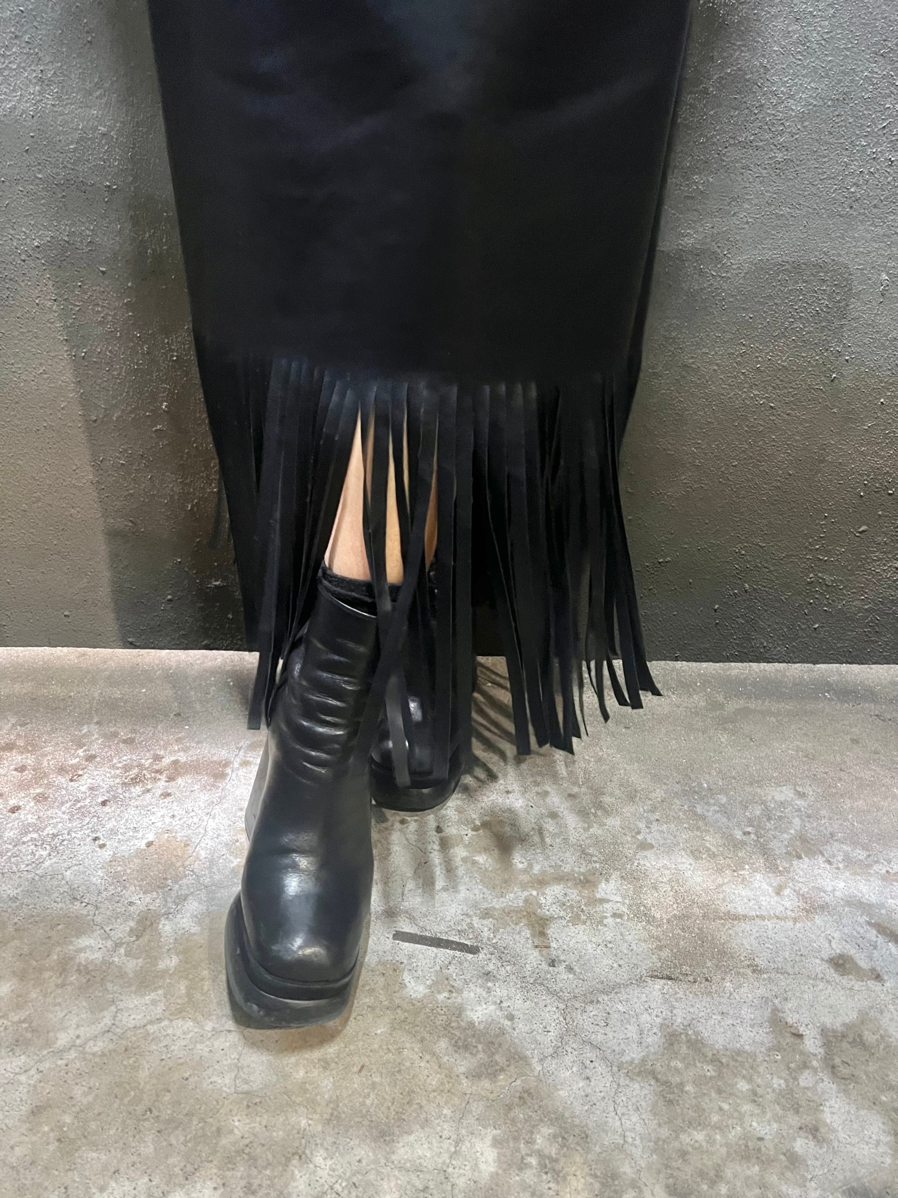 fringe design eco leather skirt スカート エコレザー 合皮 フリンジ ゴムウエスト 黒 ブラック