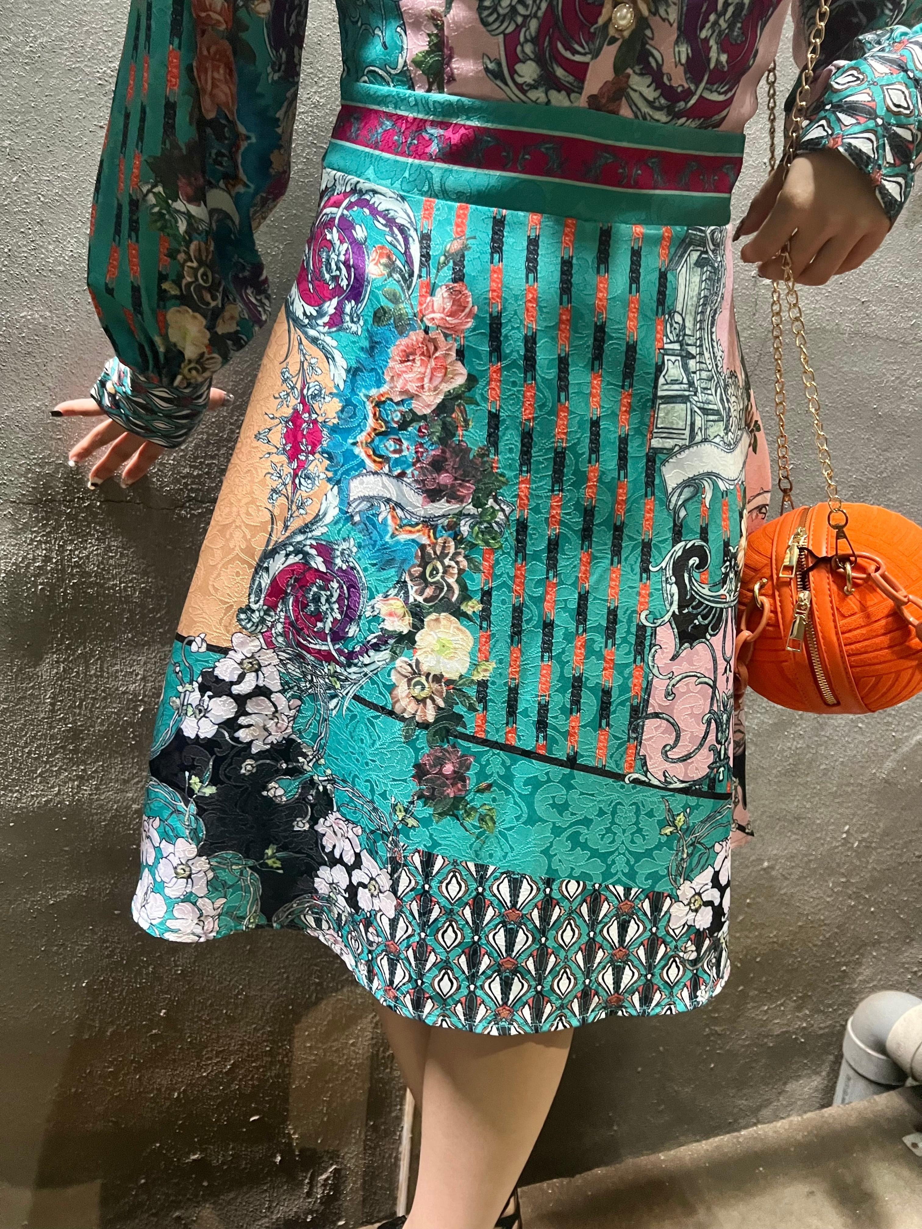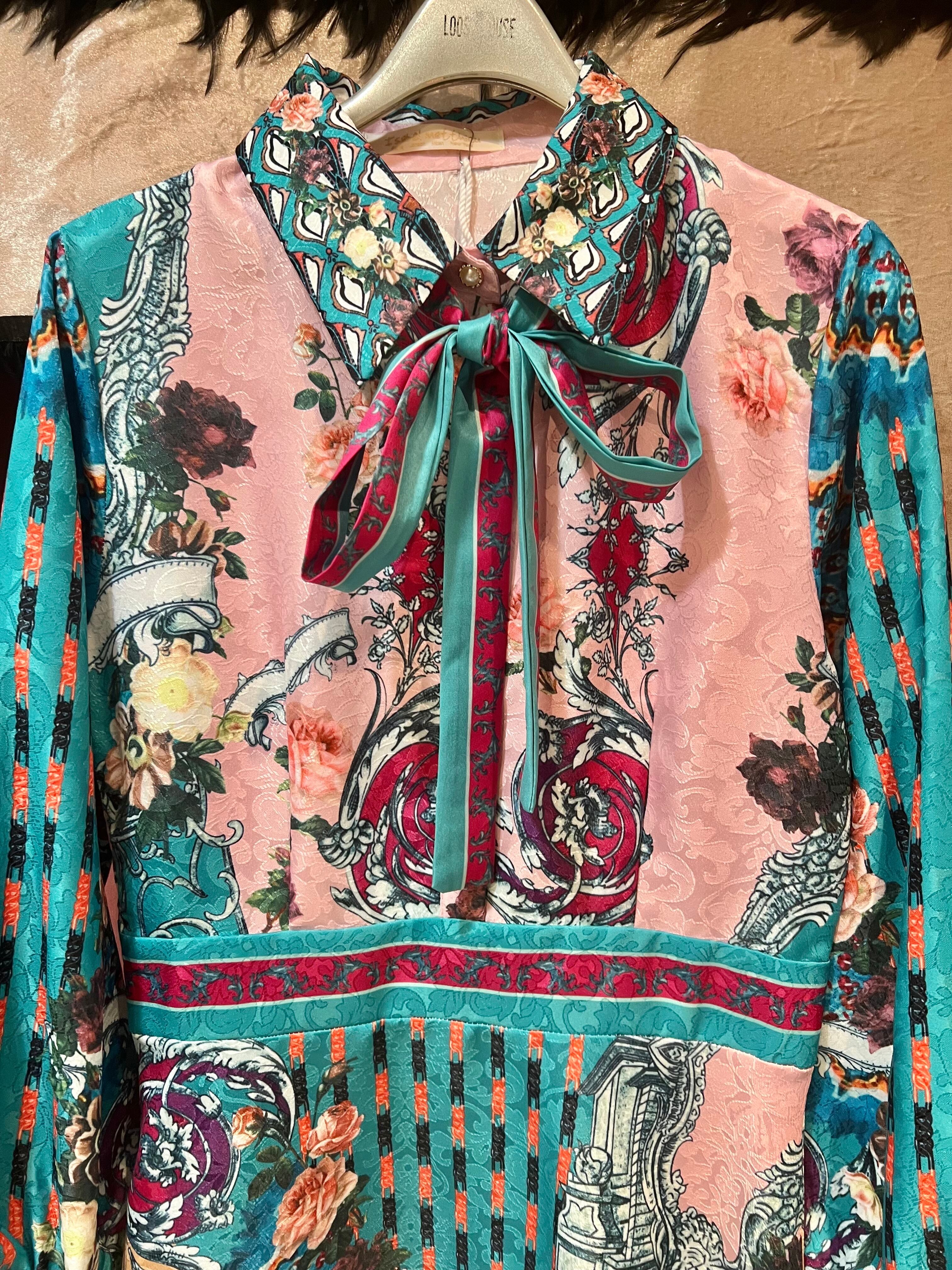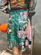 panel print shirt collar design one-piece ワンピース シャツワンピース 柄ワンピ パネルプリント カラフル リボン