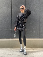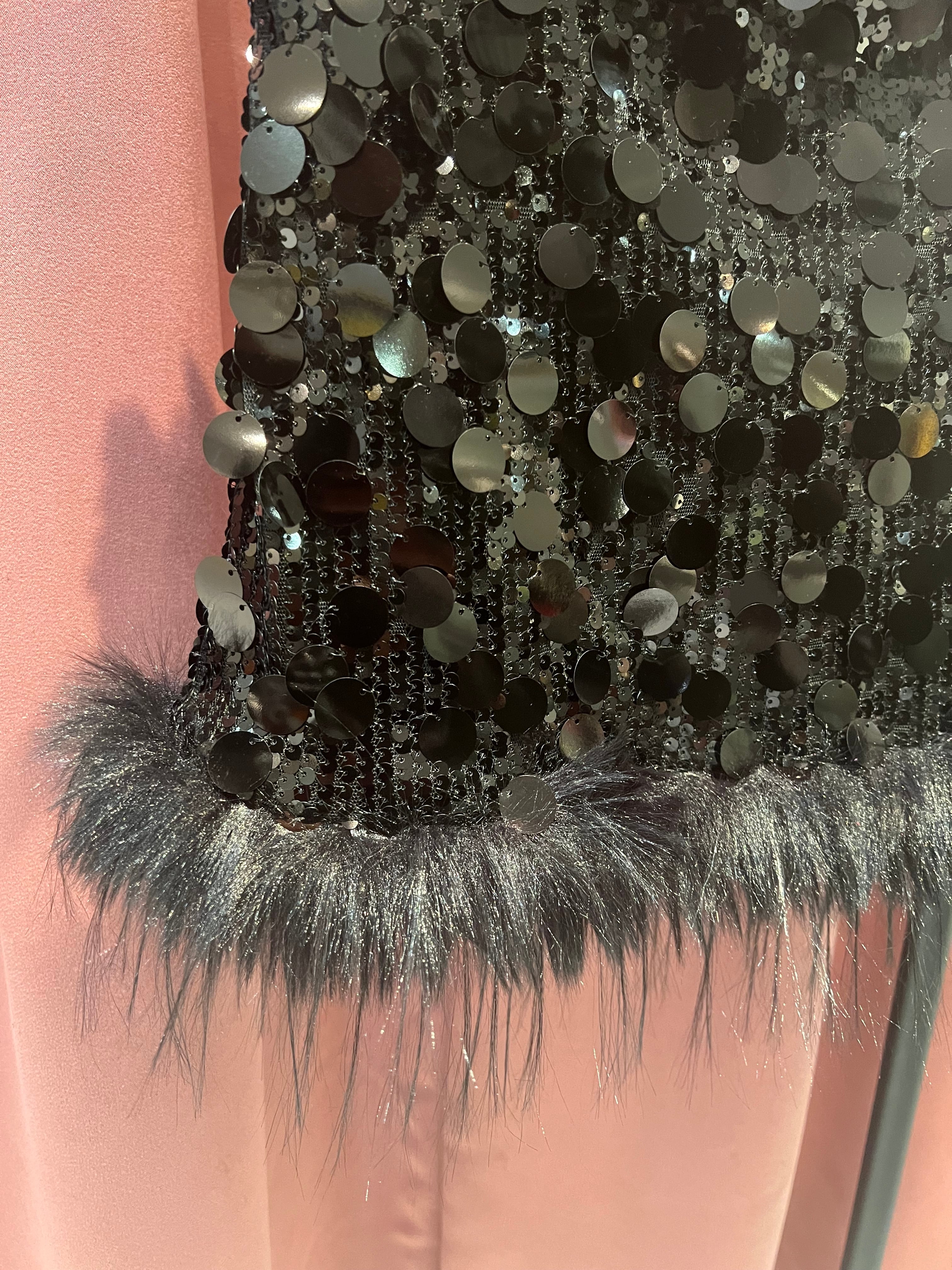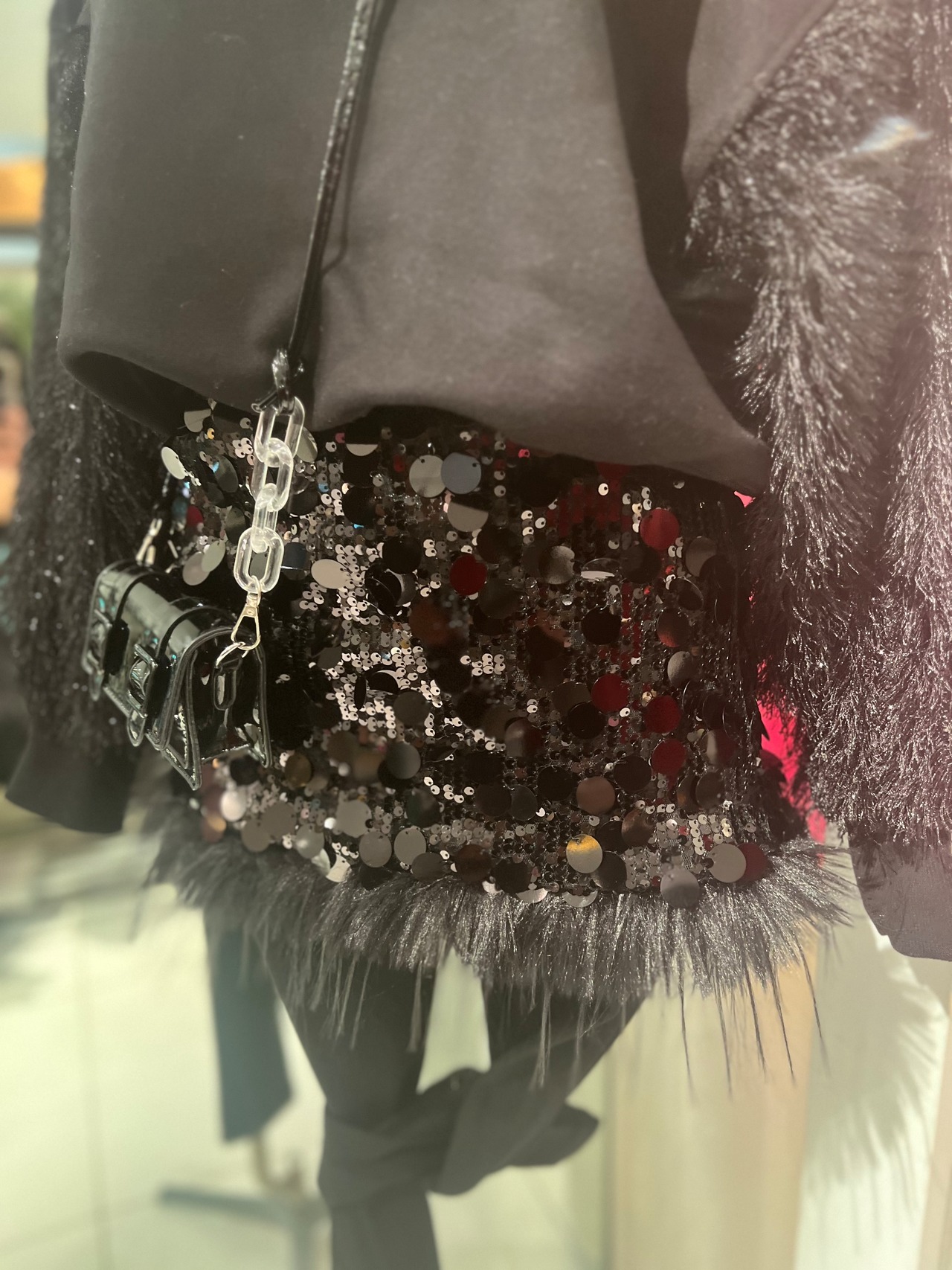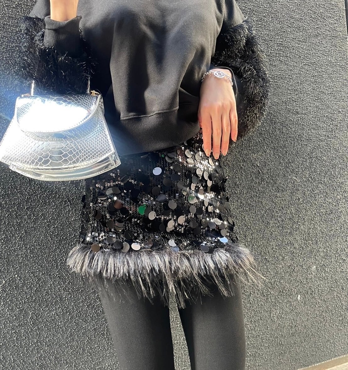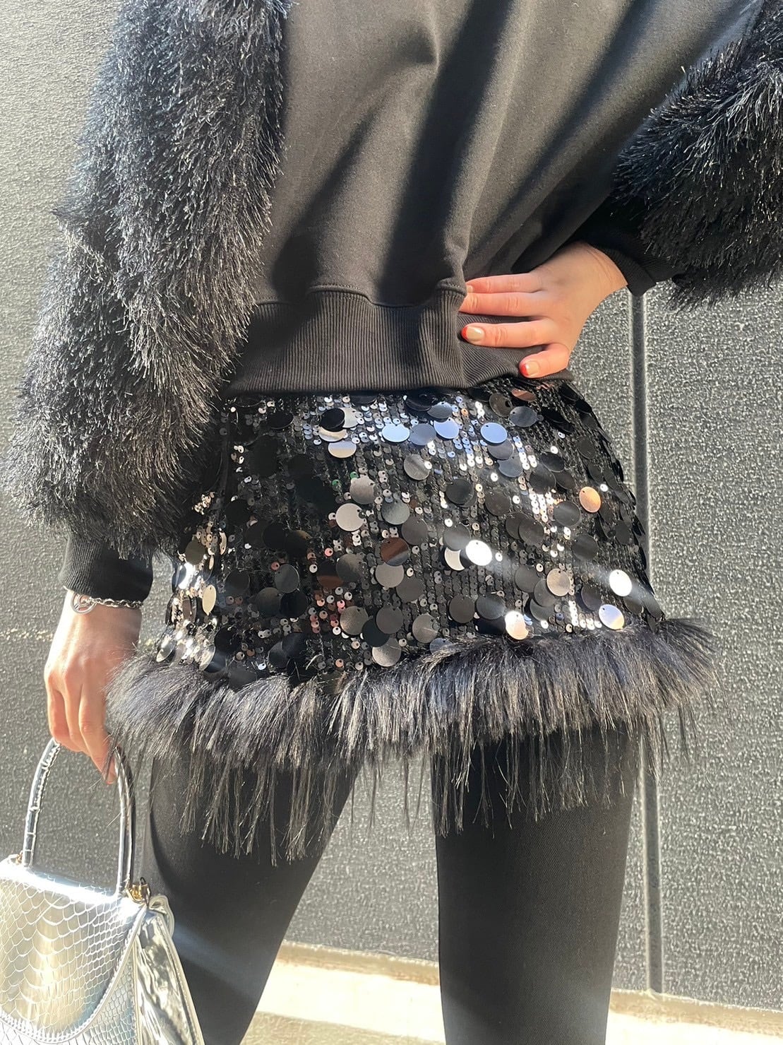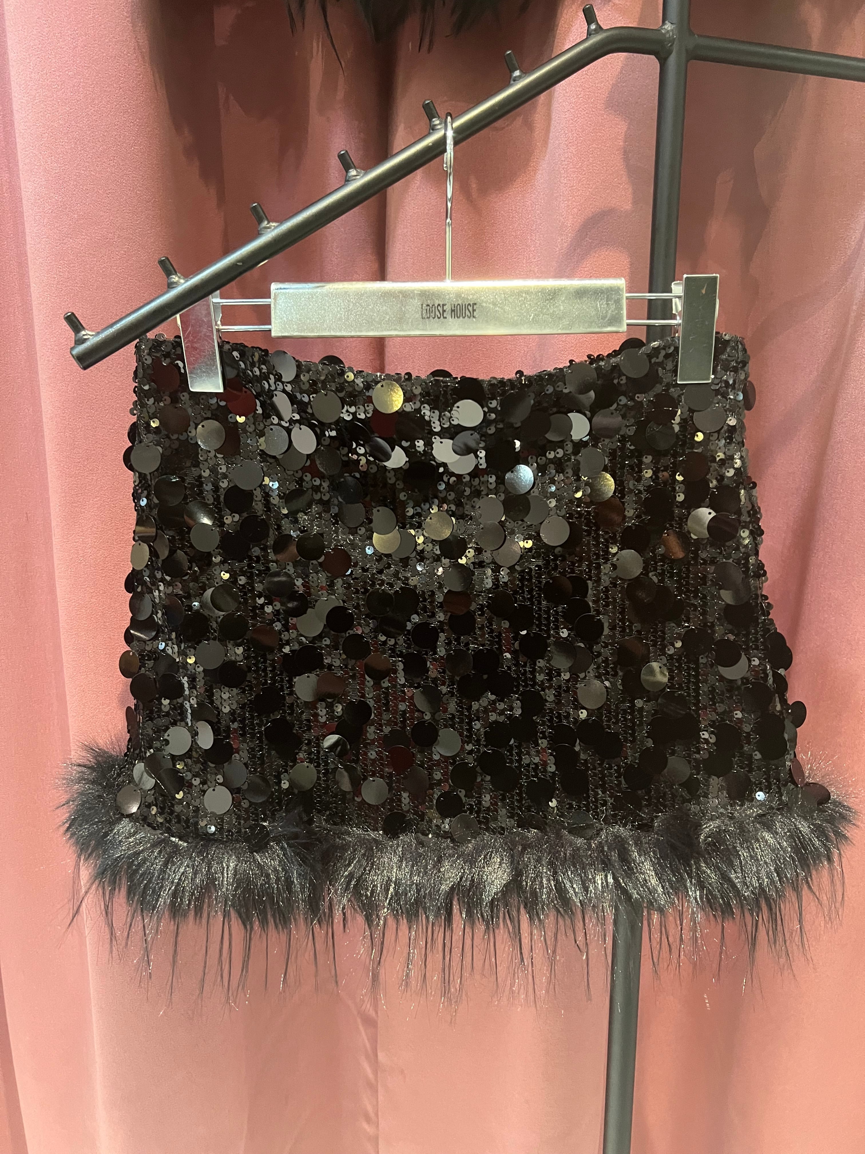 【skirt】big spangle × feather touch fringe design mini skirt スカート ミニスカート スパンコール フェザー ブラック 黒