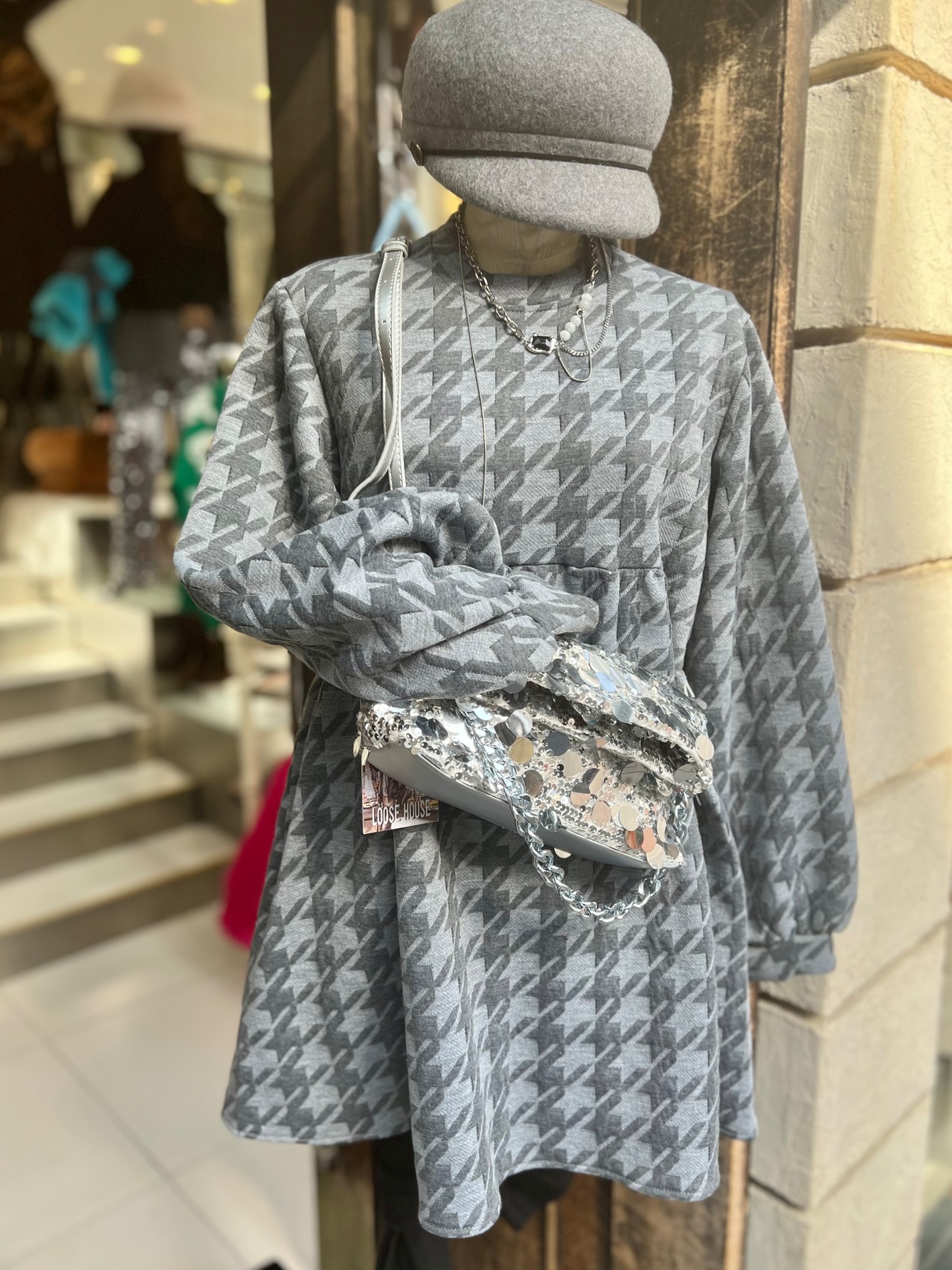 大人可愛い千鳥柄のグレーチュニックが登場!