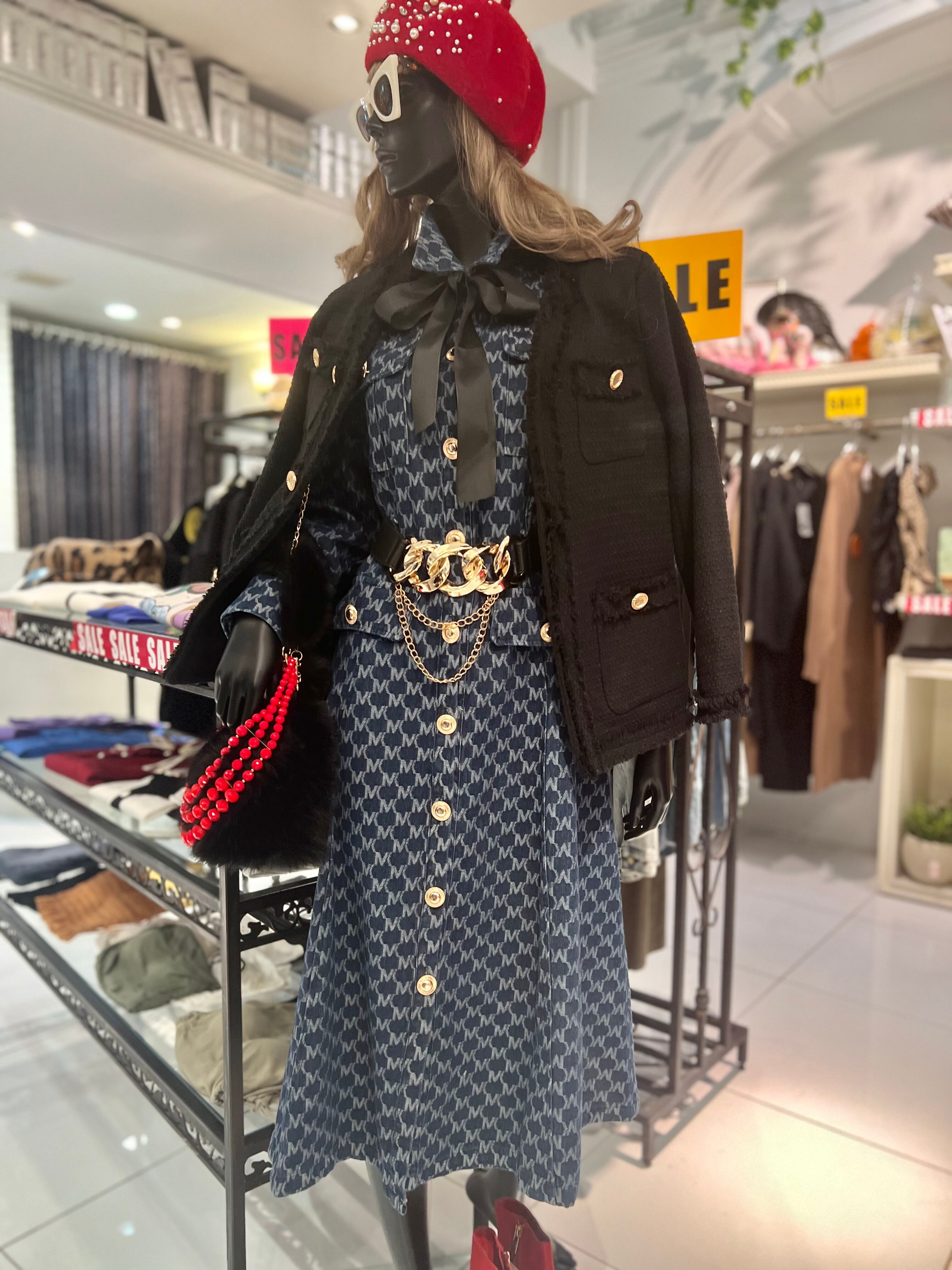 これからのシーズンにぴったりの一枚で、デイリーコーデはもちろん、お出かけやパーティーシーンにもオススメです。洗練されたデニムの柄が、大人の女性にぴったりのスタイリングを叶えます。
