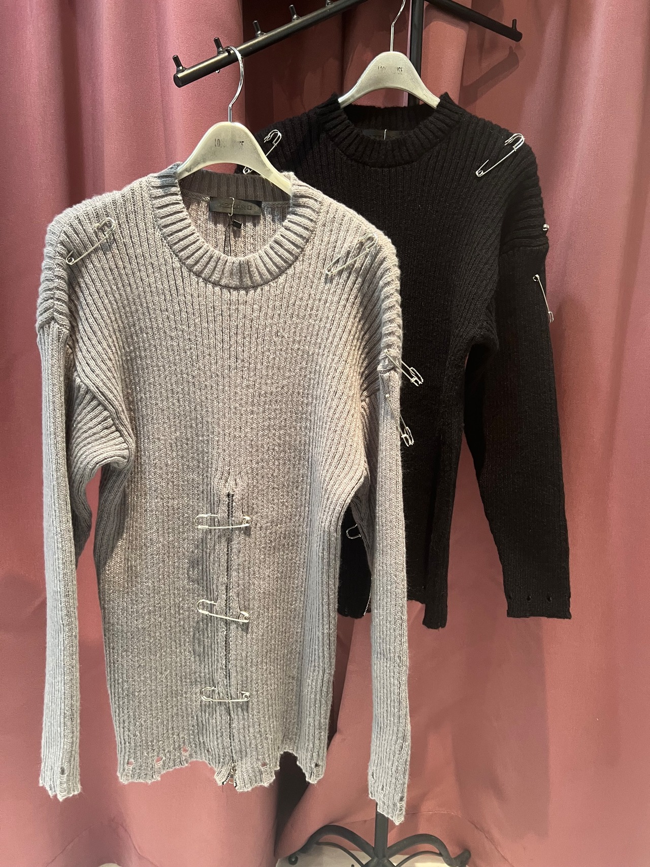 【knit tops】zip × safety pin design rib knit tops トップス ニット リブニット ジップ 安全ピン