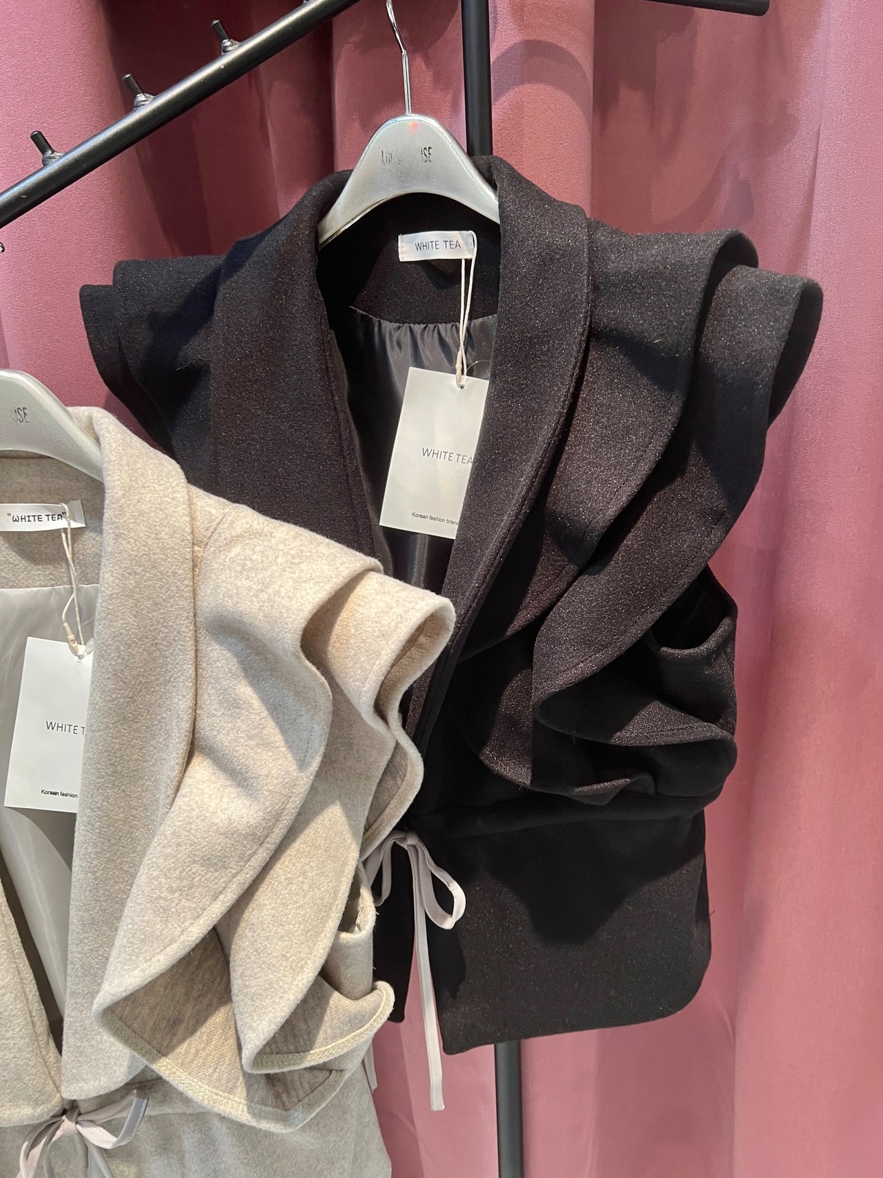 フリルとドレープ、そしてドローコードが特徴的なデザインベストです!!