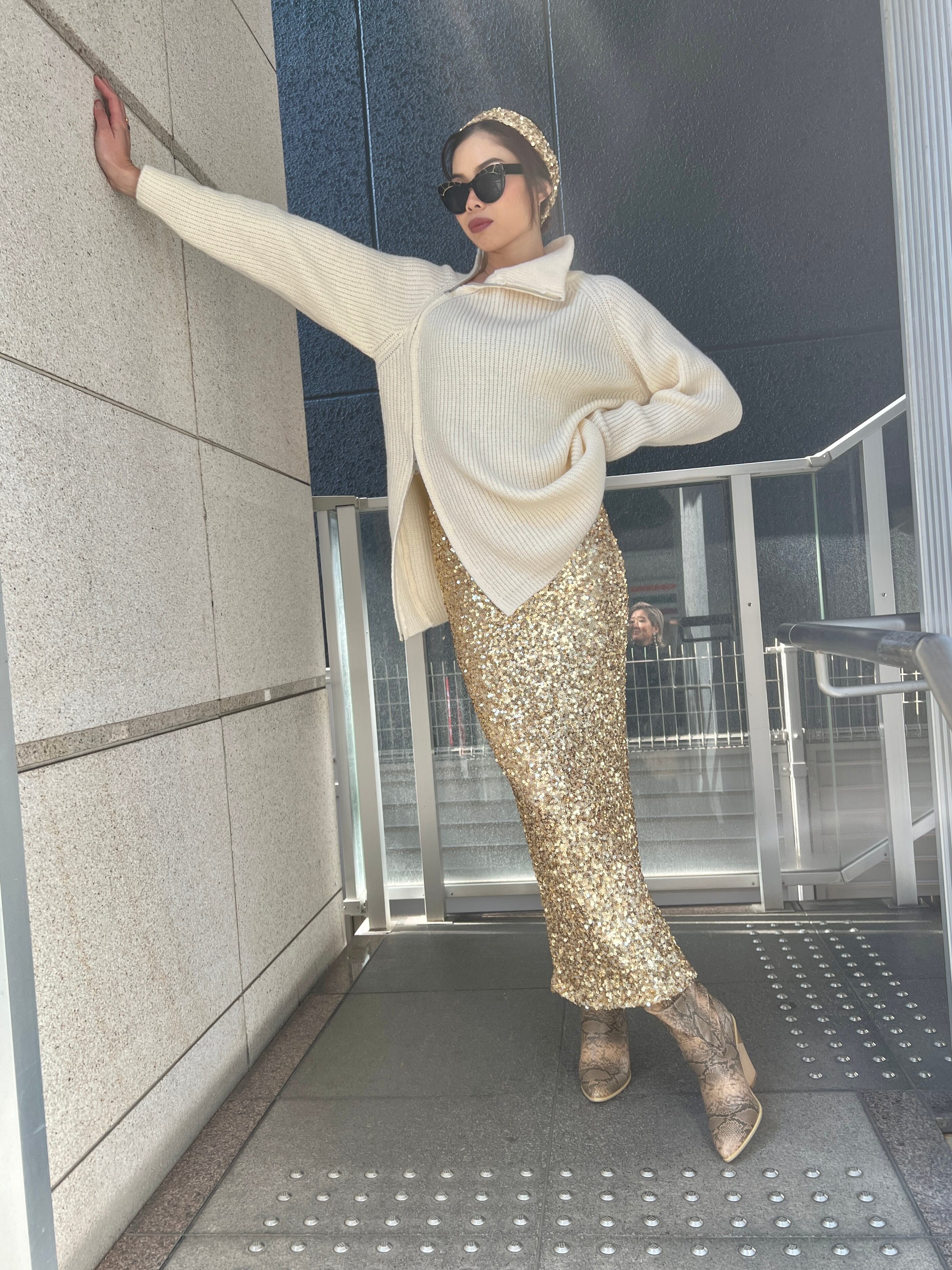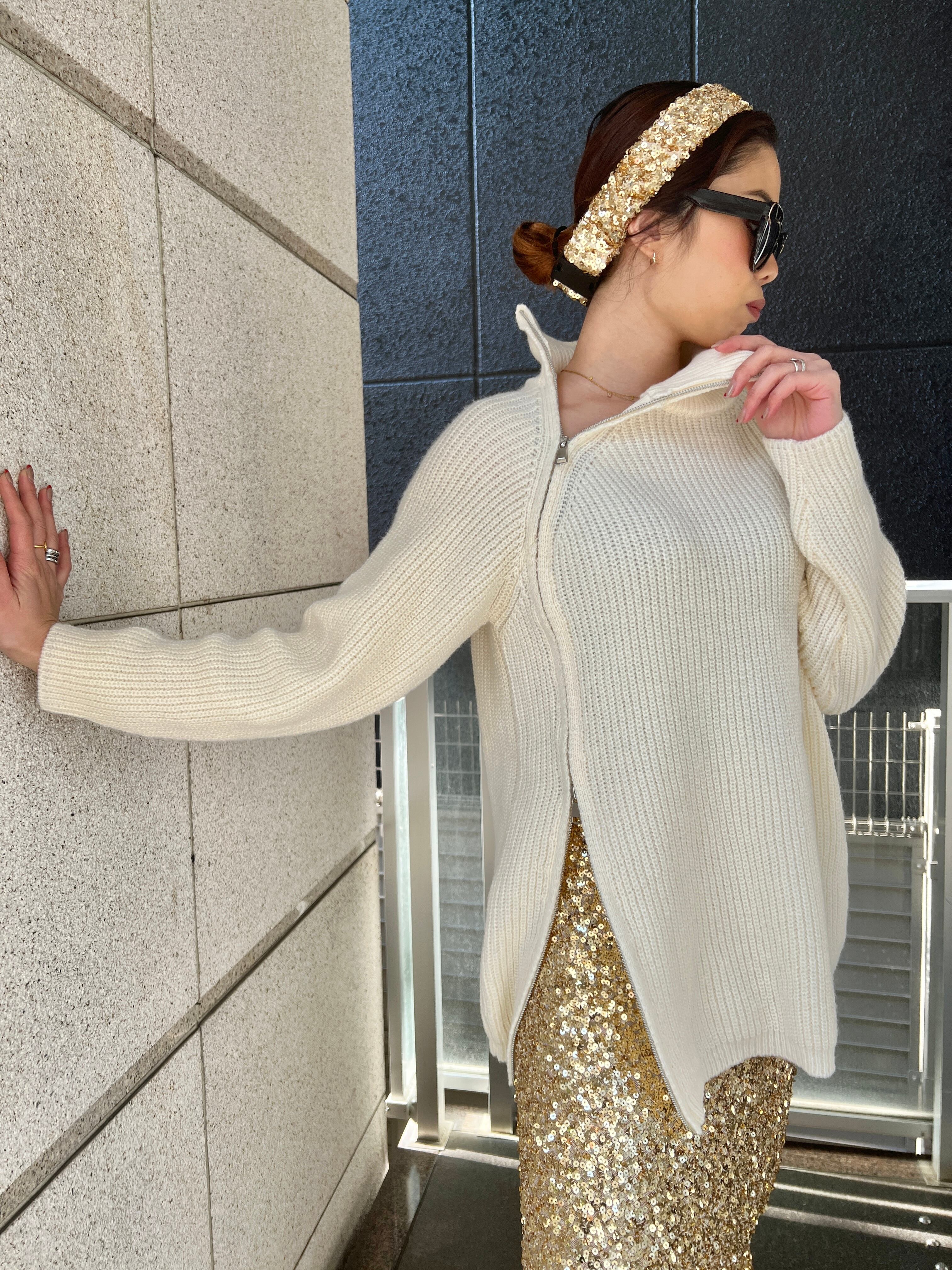 アシンメトリーなジッパーデザインでエッジィなニットトップス♪