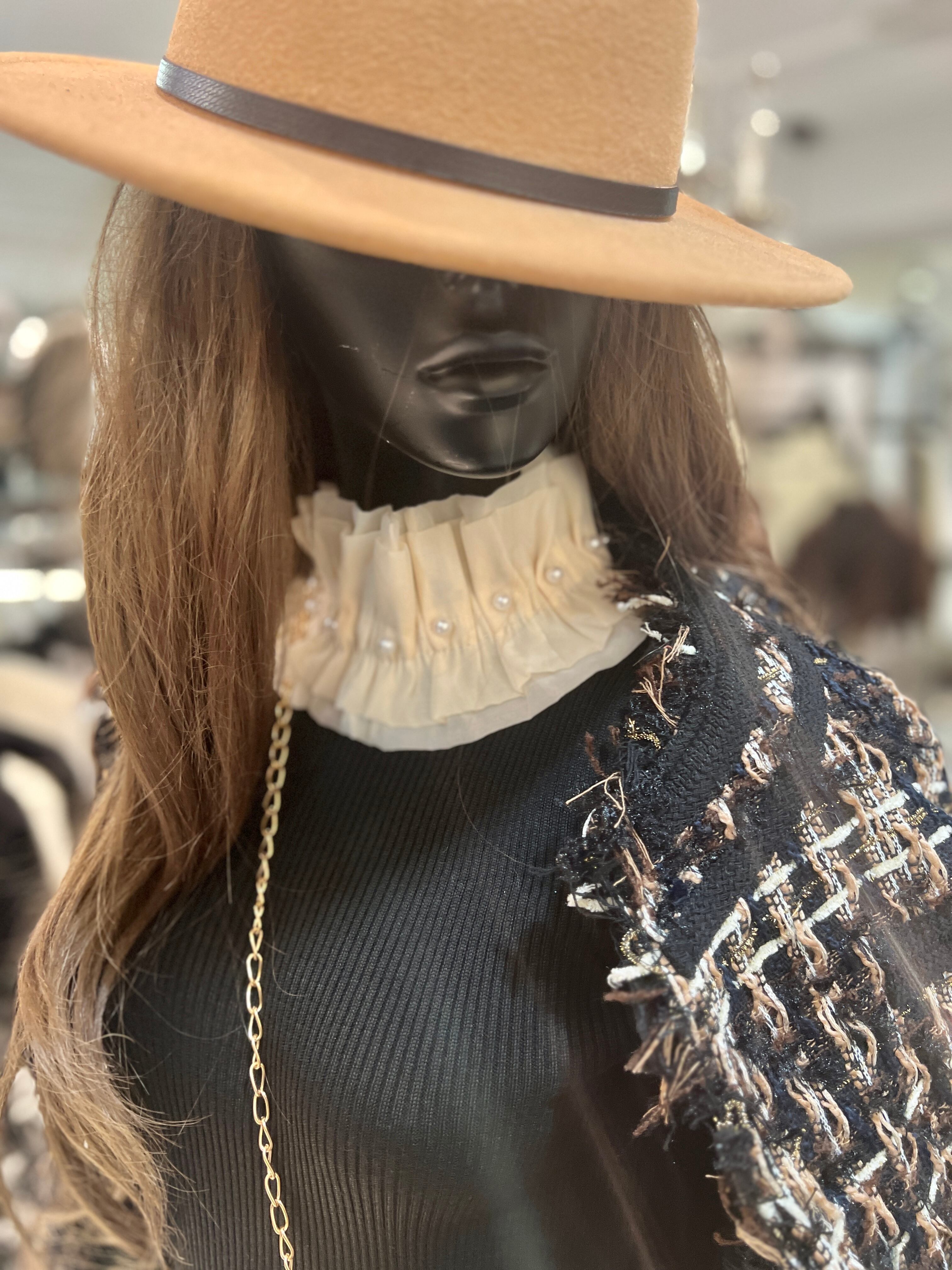 フリルが首元や袖口を飾り、パールがアクセントになっています♪