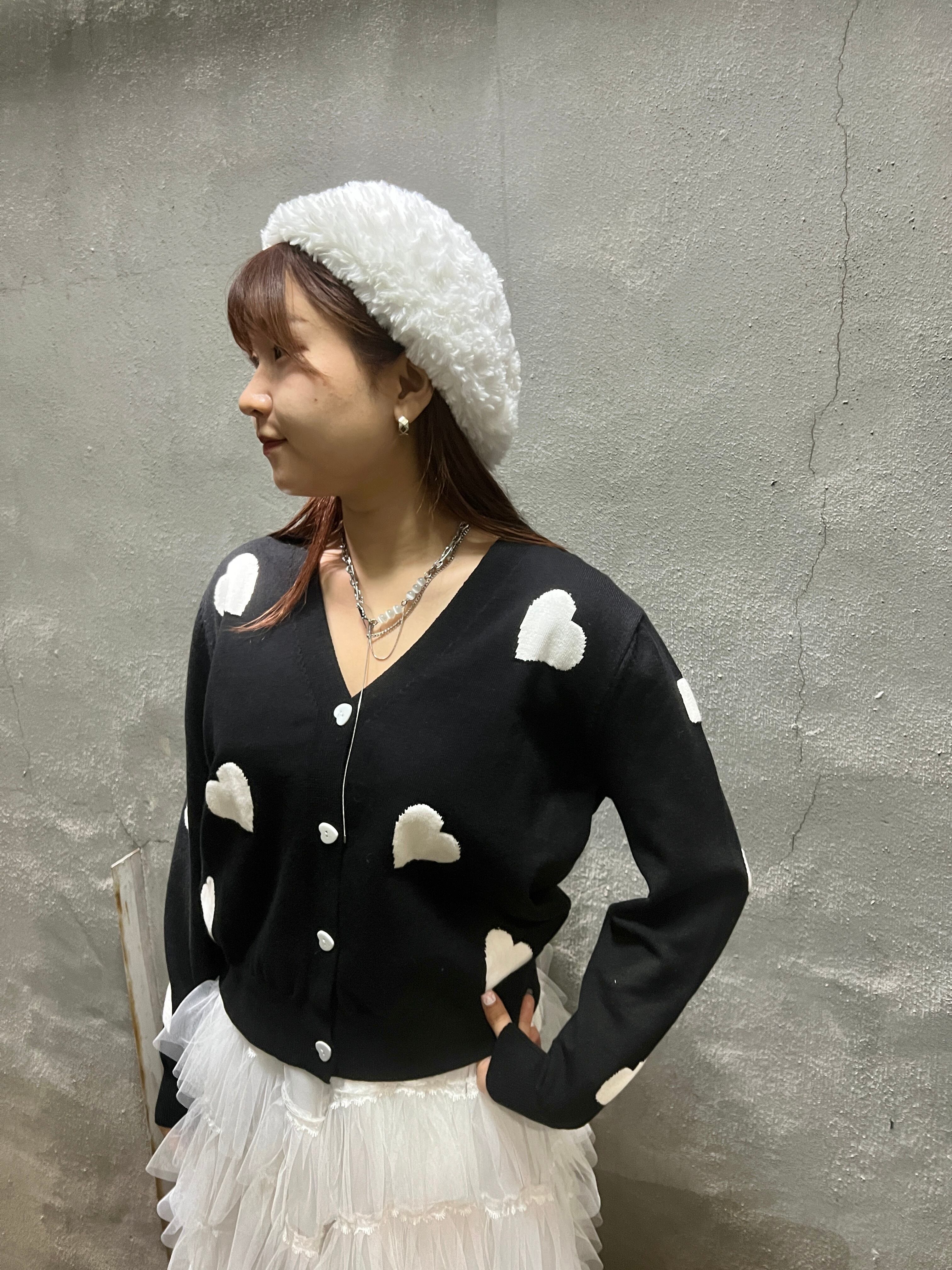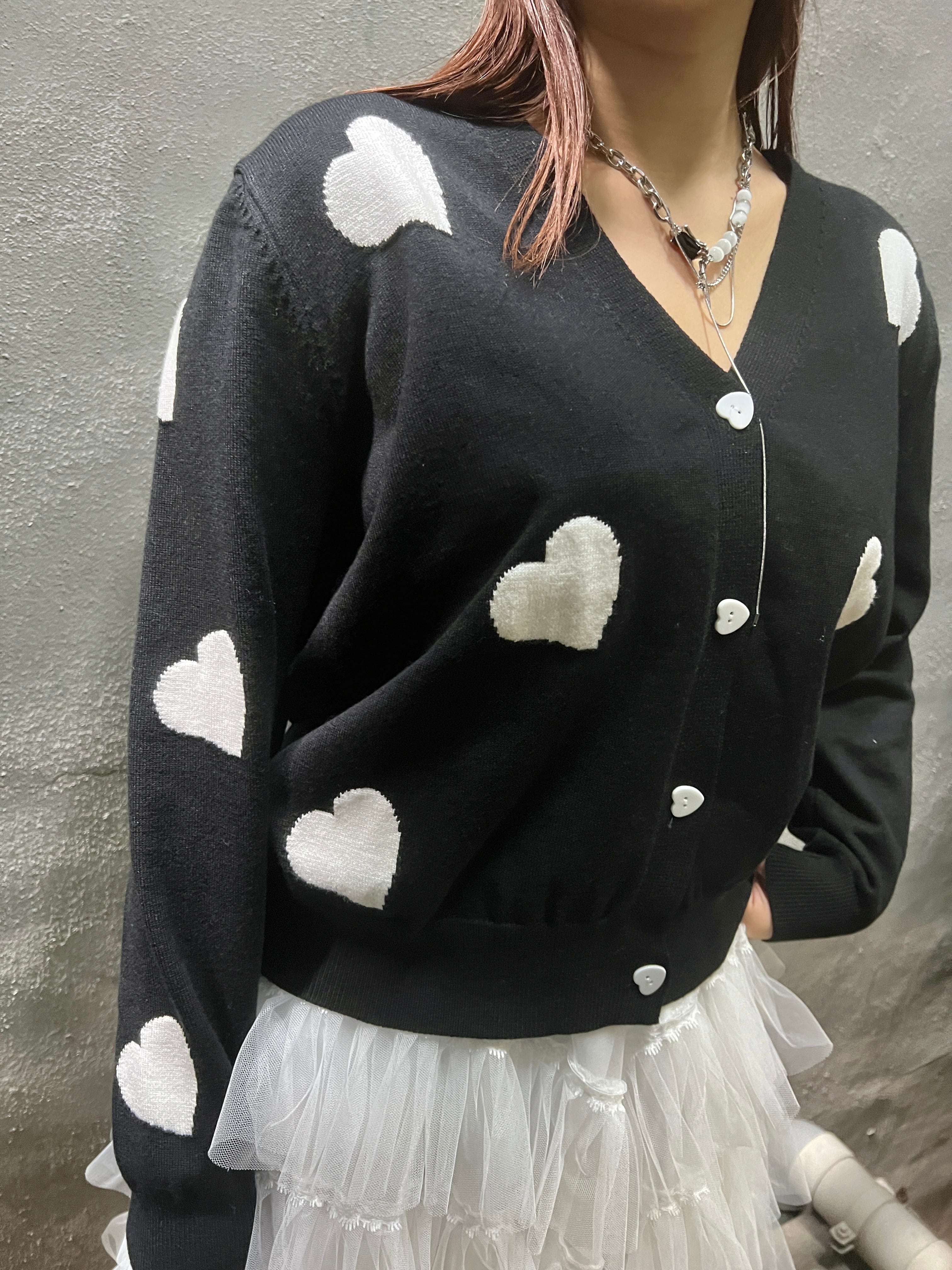 heart V-neck knit cardigan ニット カーディガン Vネック ハート バイカラー