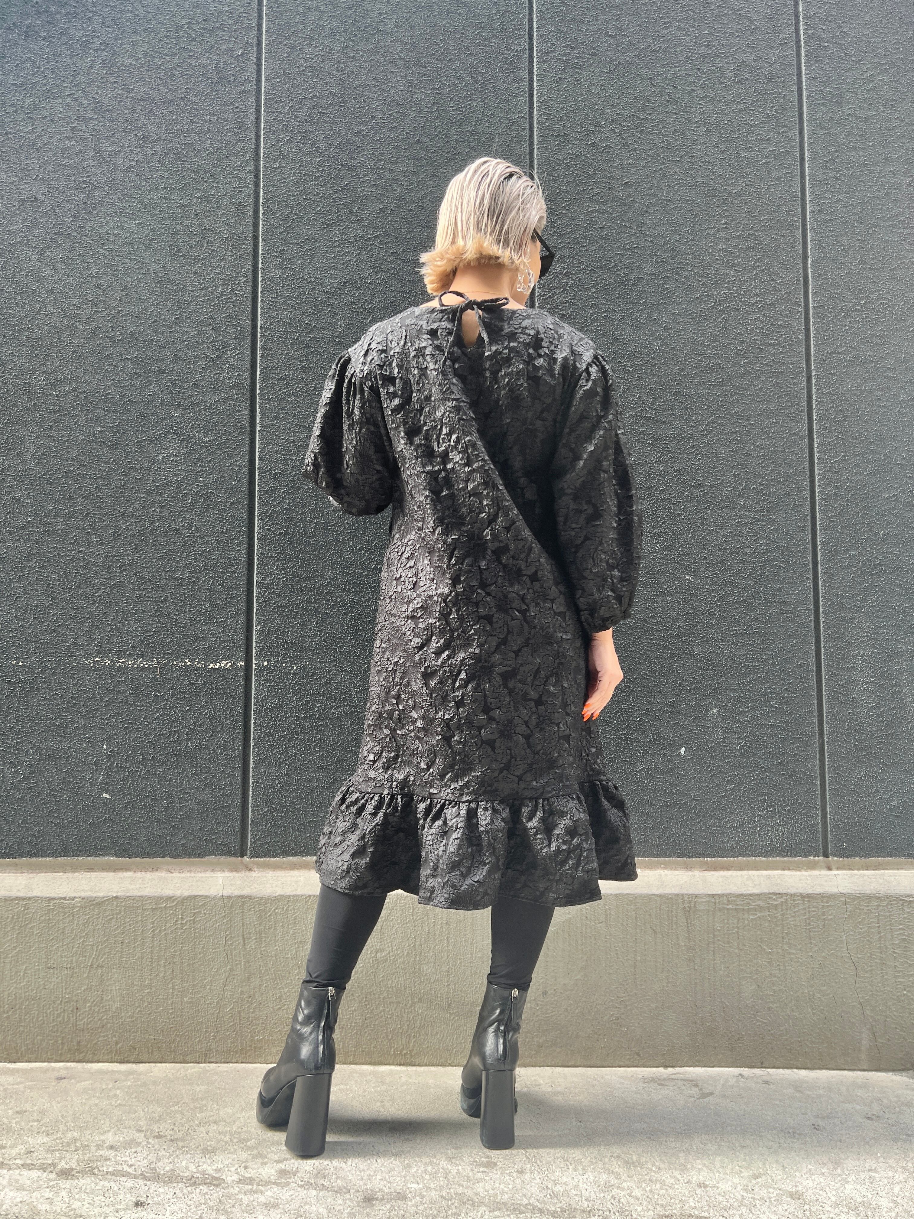 jacquard design one-piece ワンピース ワンピ ジャガード リボンフリル ルースフィット