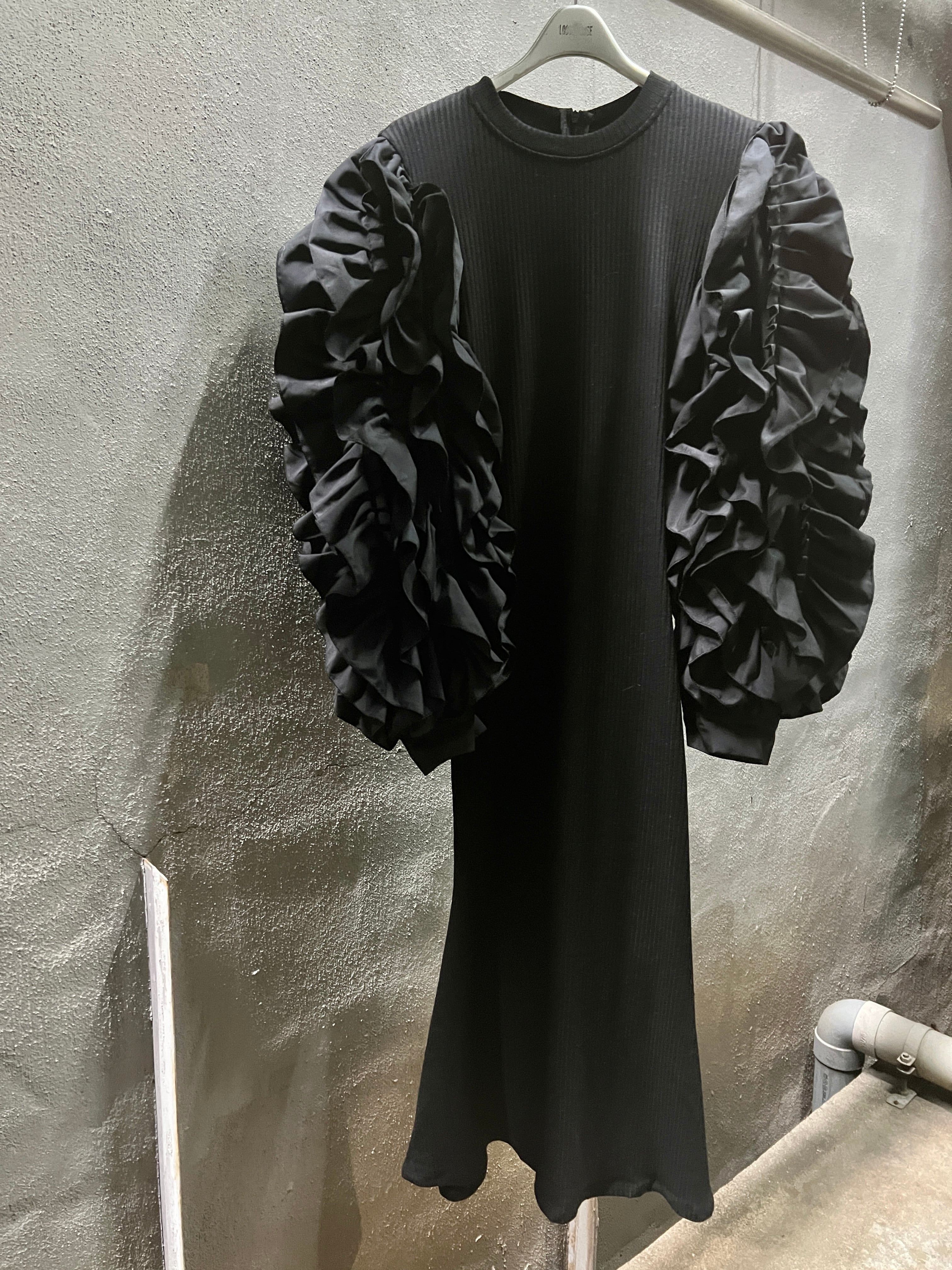 gorgeous frill sleeve mermaid design one-piece ワンピース フリル テレカニット マーメイド ブラック 黒 ベルト付き