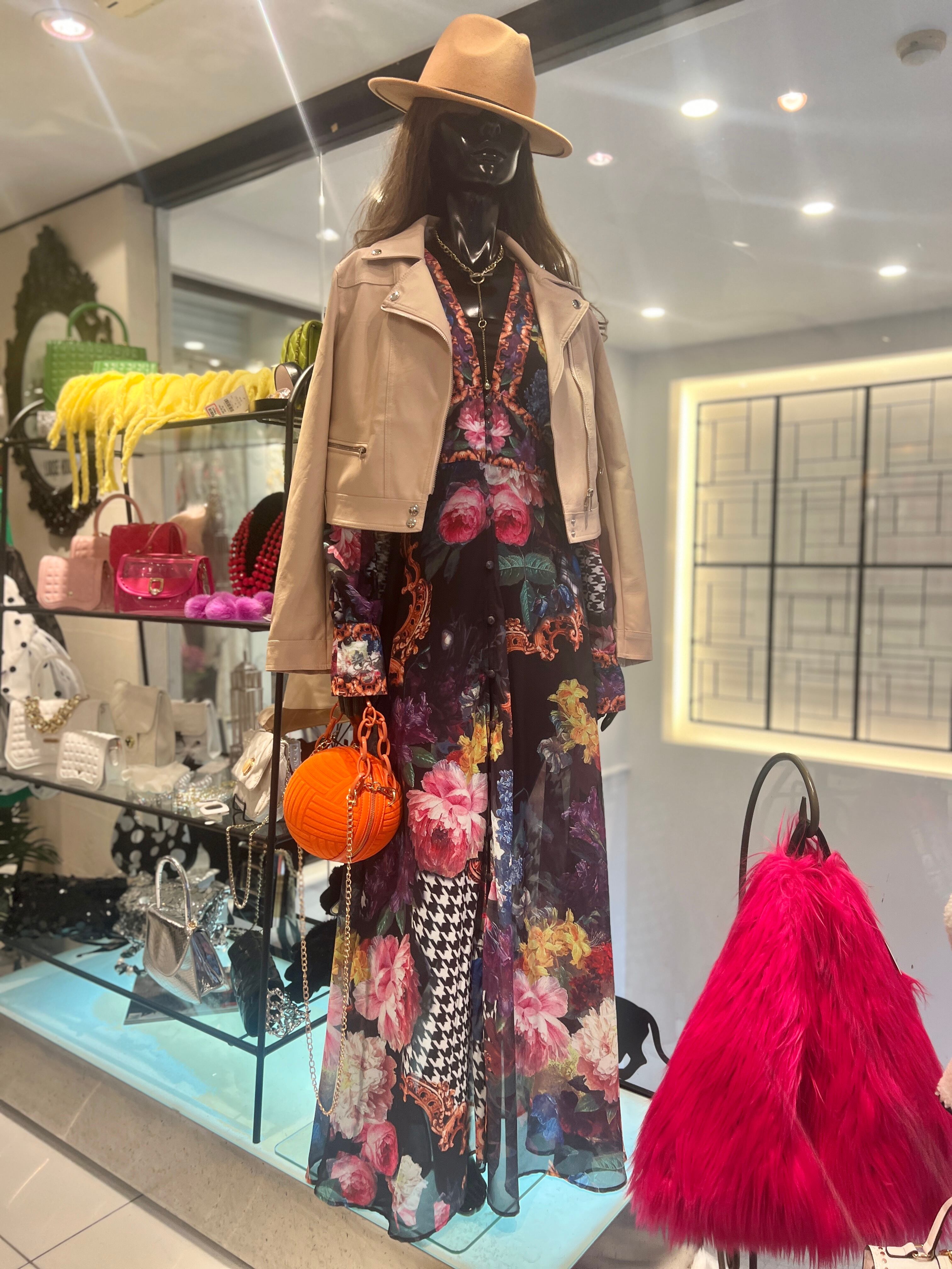 大きなフラワープリントやバロック調な柄、千鳥柄などいろんな柄のMIXで