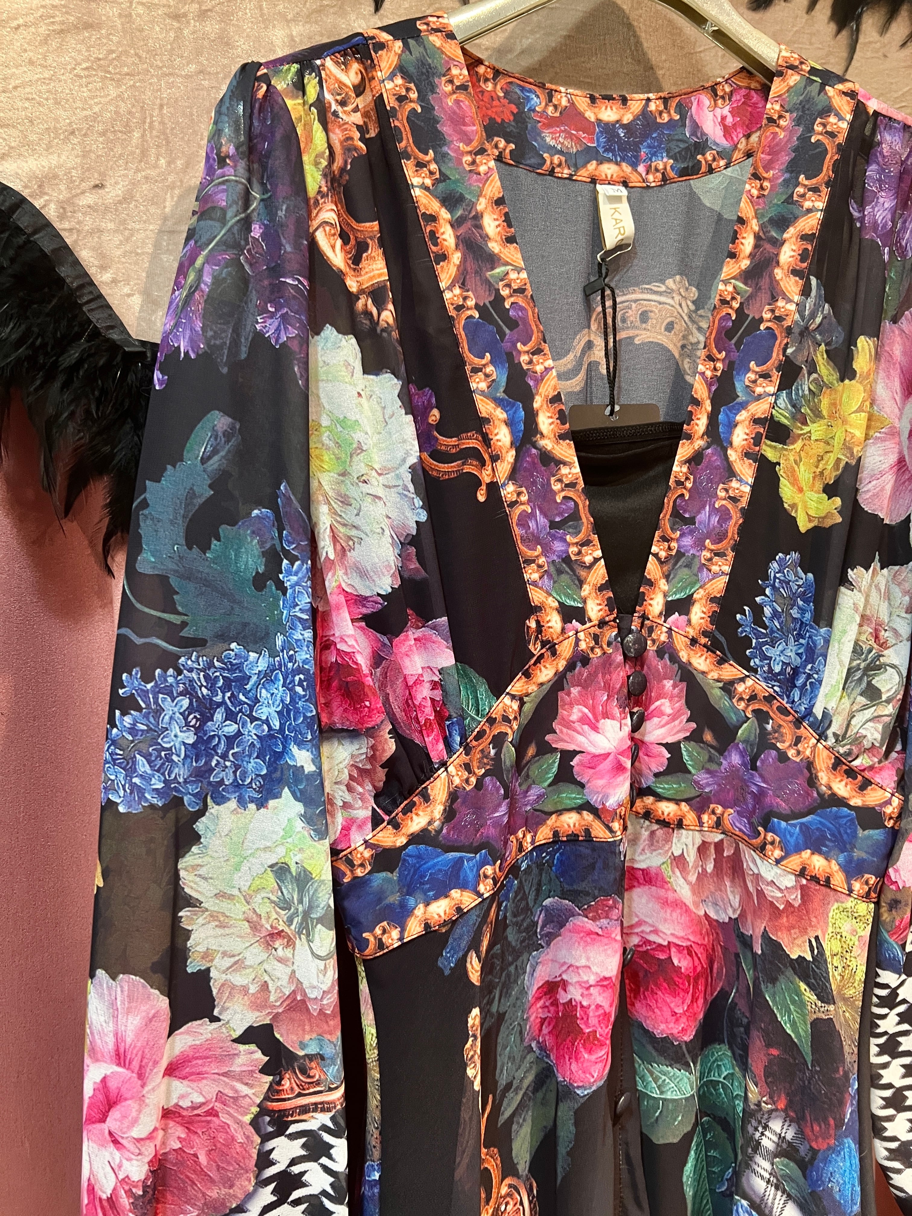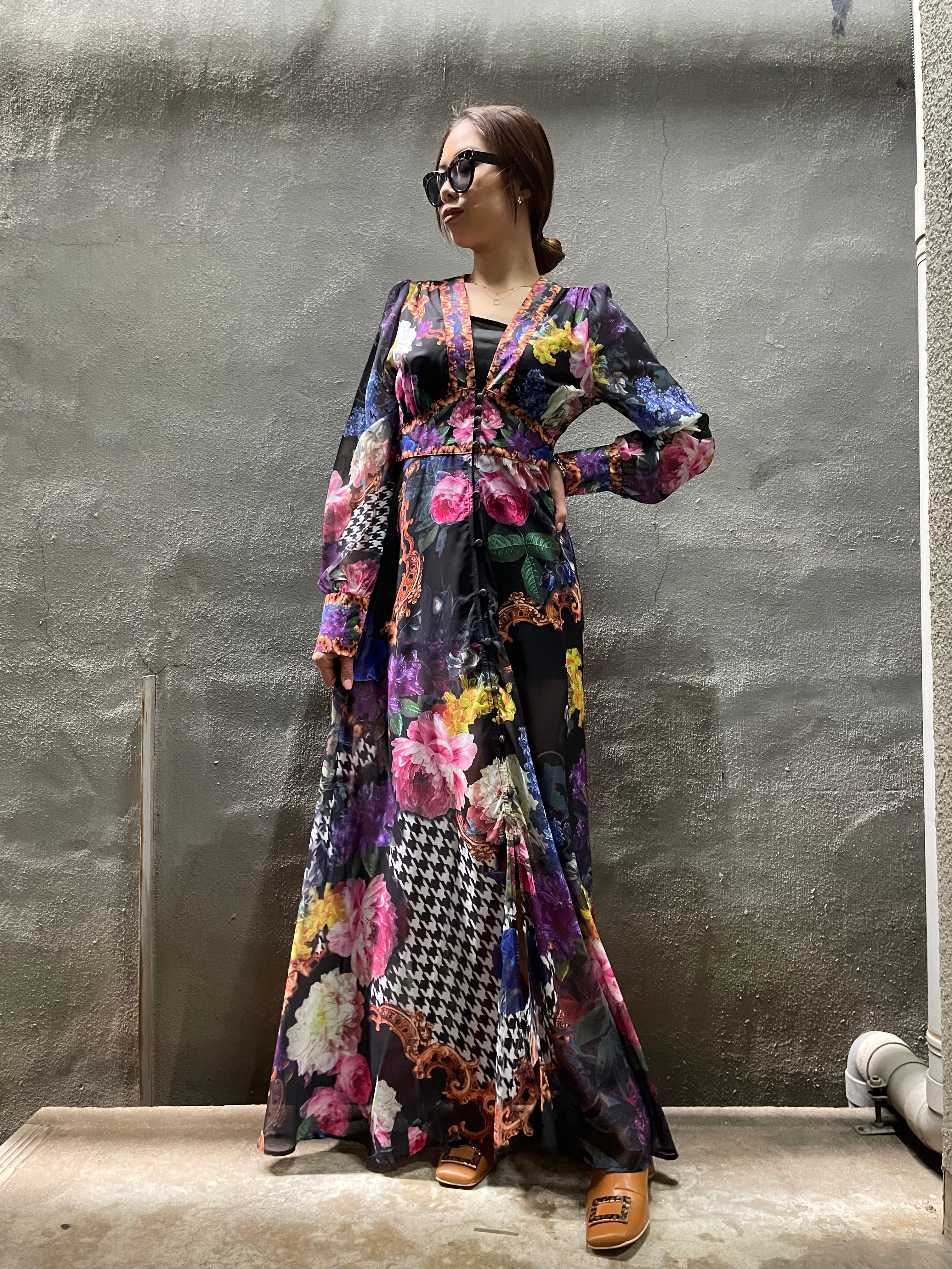 ゴージャスなMIX柄のロング丈ワンピースです。