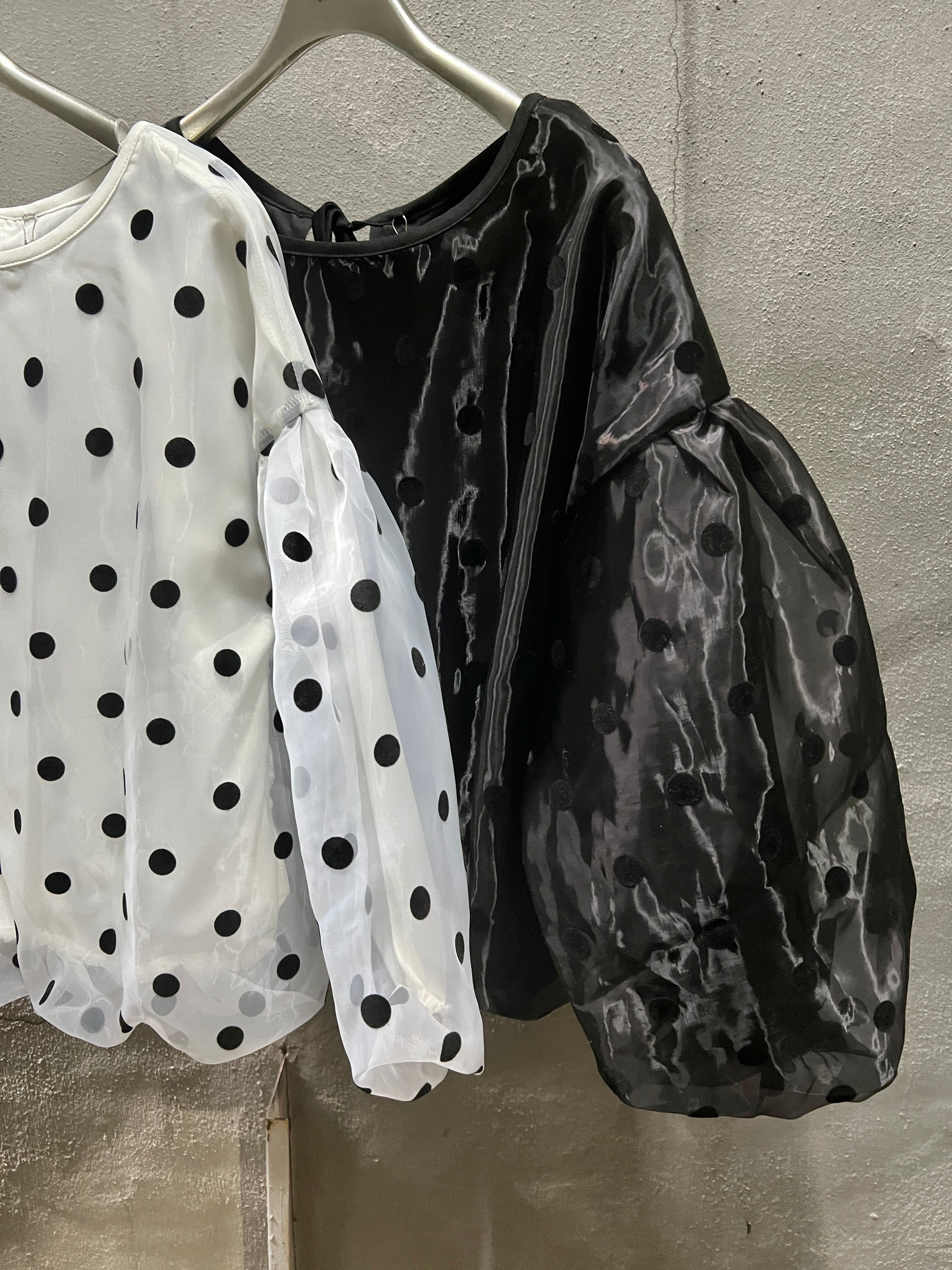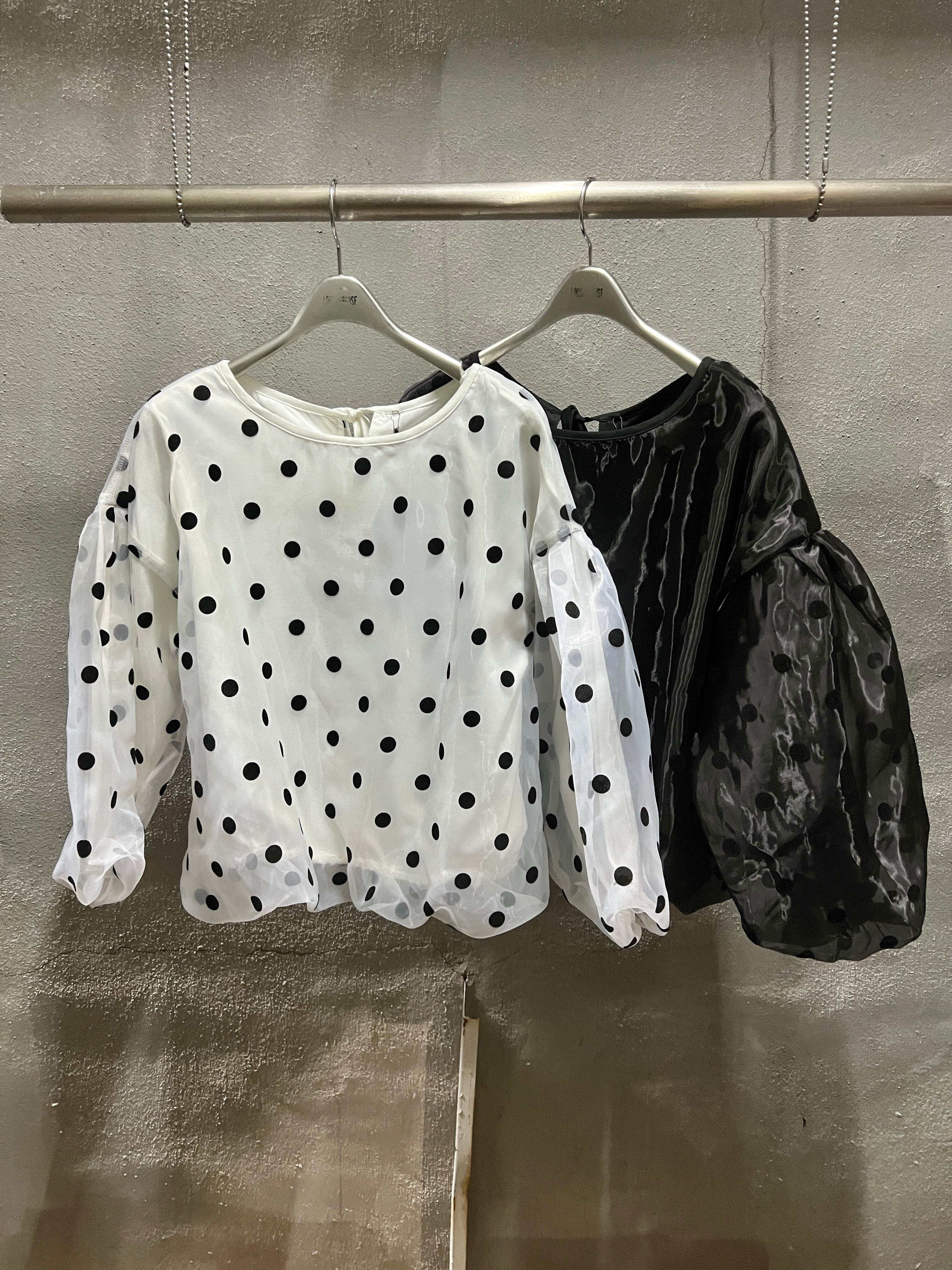 dot frocky balloon design tops トップス ドット 水玉 デザインスリーブ フロッキー